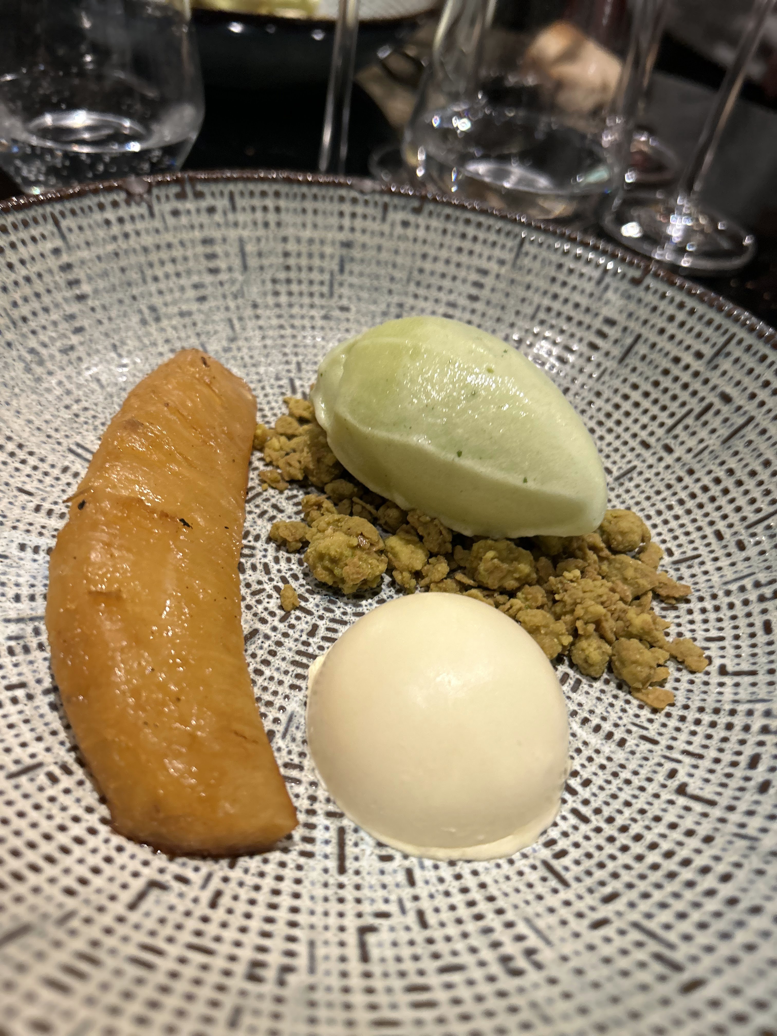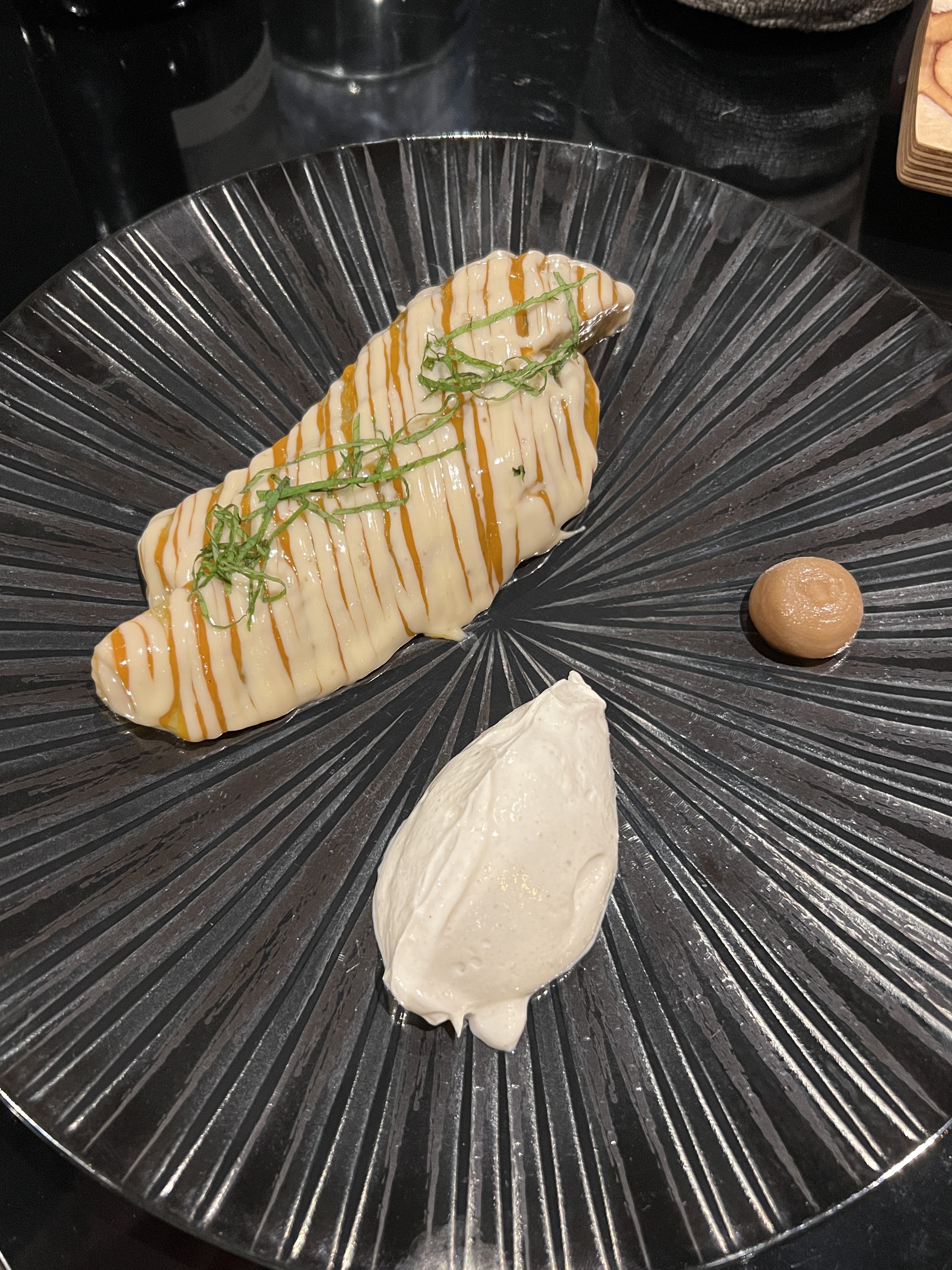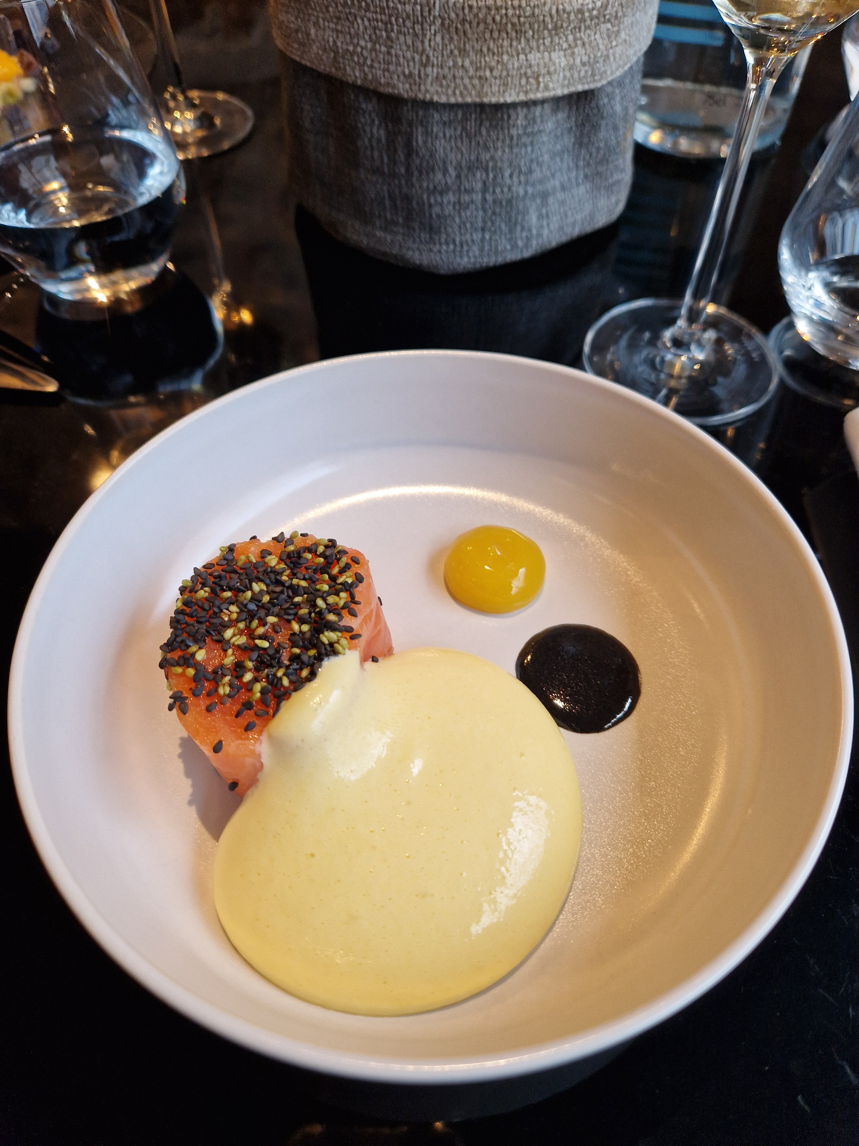 Rien à dire. La nourriture est incroyable, service agréable et souriant. Une mention spéciale pour la glace sésame noir et le sorbet lait tonka. Une carte des vins choisit à la perfection. Nous reviendrons. Merci à toute l’équipe