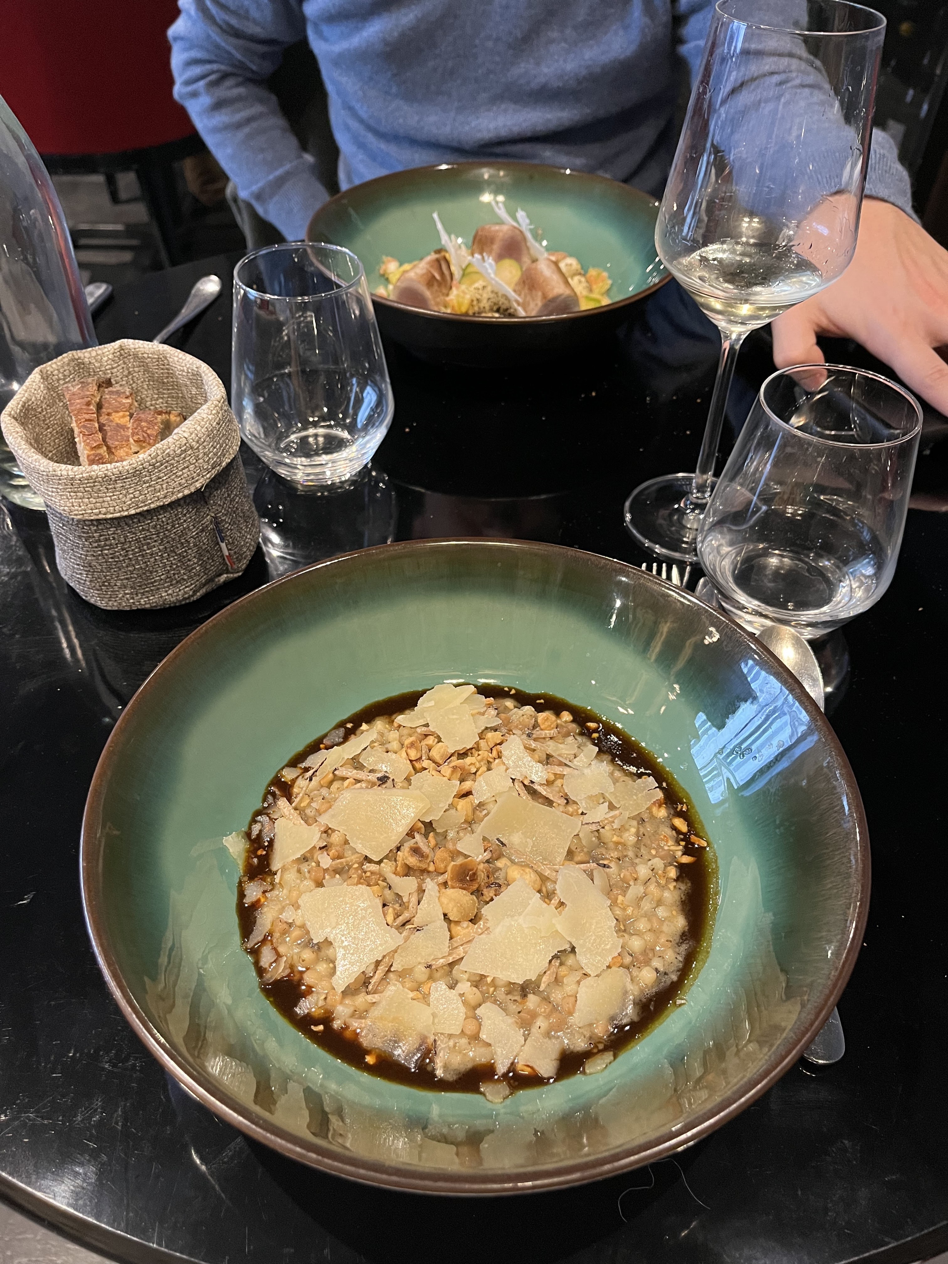 Nous étions dans un hôtel à environ un pâté de maisons et avons demandé une recommandation au personnel pour quelque chose à proximité, nous ne nous attendions donc pas à grand-chose. Nous avons opté pour le menu dégustation et les accords mets et vins et avons été époustouflés par la perfection de chaque plat. Le personnel était très arrangeant, échangeant un plat de poisson contre des pâtes aux truffes noires et aux noisettes car l'un de nous n'aime pas les fruits de mer. Nous avons tous décidé que le plat de pâtes était l’un des meilleurs de la soirée. Le dessert voulait quelque chose que j’aurais choisi moi-même, mais c’était la fin parfaite de notre repas. Je recommanderais certainement ce restaurant à tous ceux qui recherchent une expérience formidable.