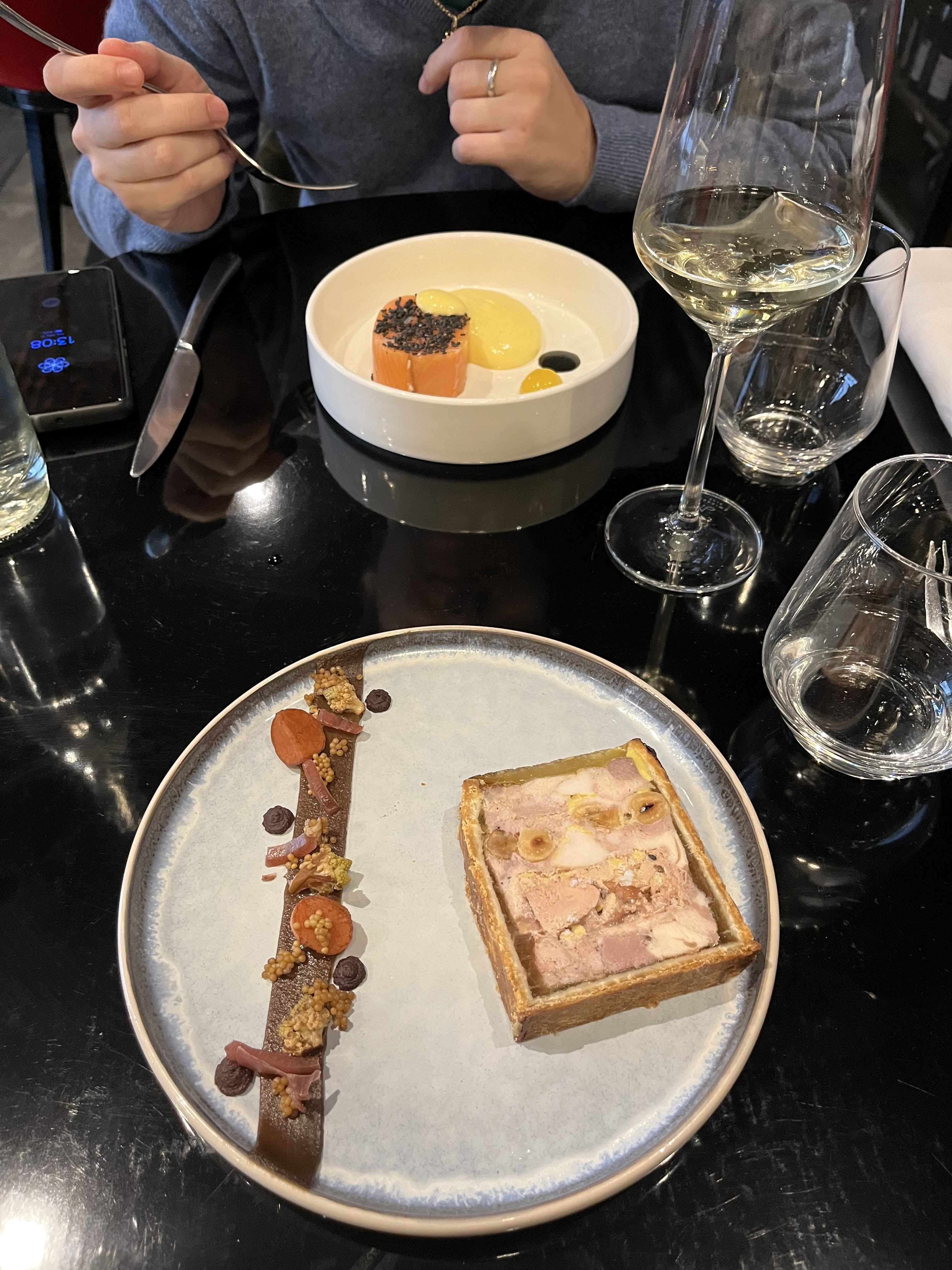 Tout était excellent, particulièrement le saumon en entrée et l’œuf de poule en plat.