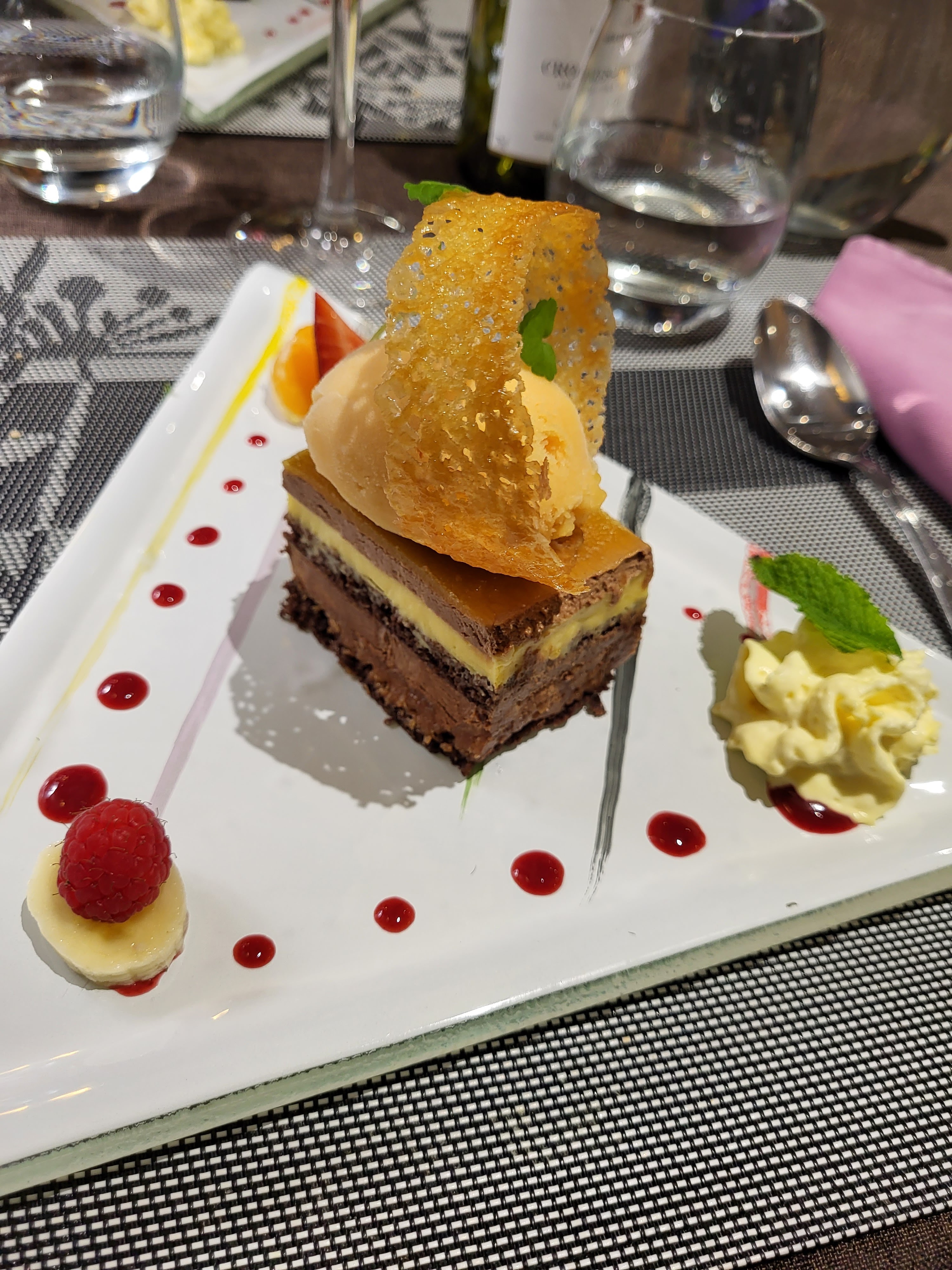 Tout était délicieux de la mise en bouche au dessert. Personnel aux petits soins et très sympathiques.