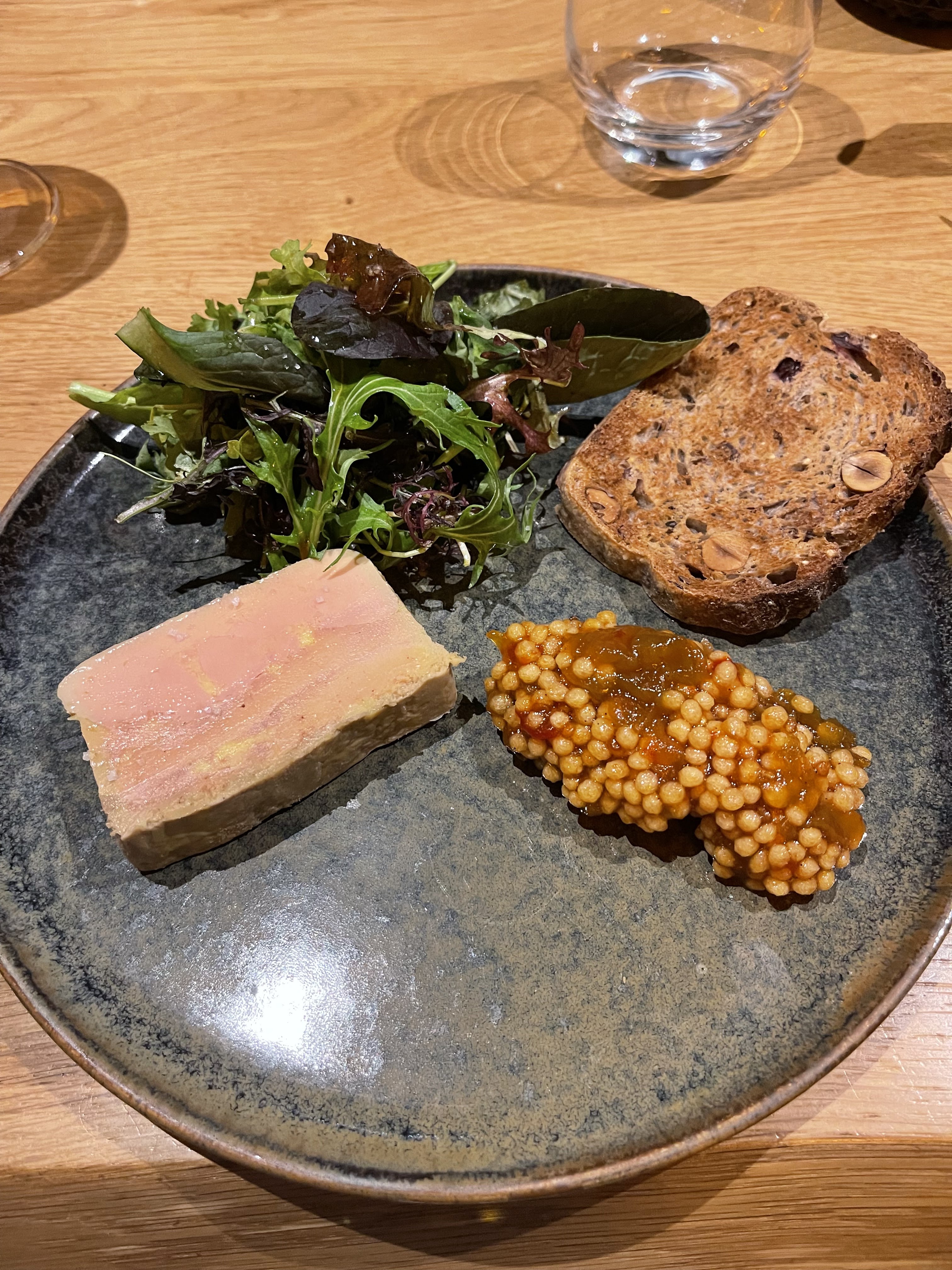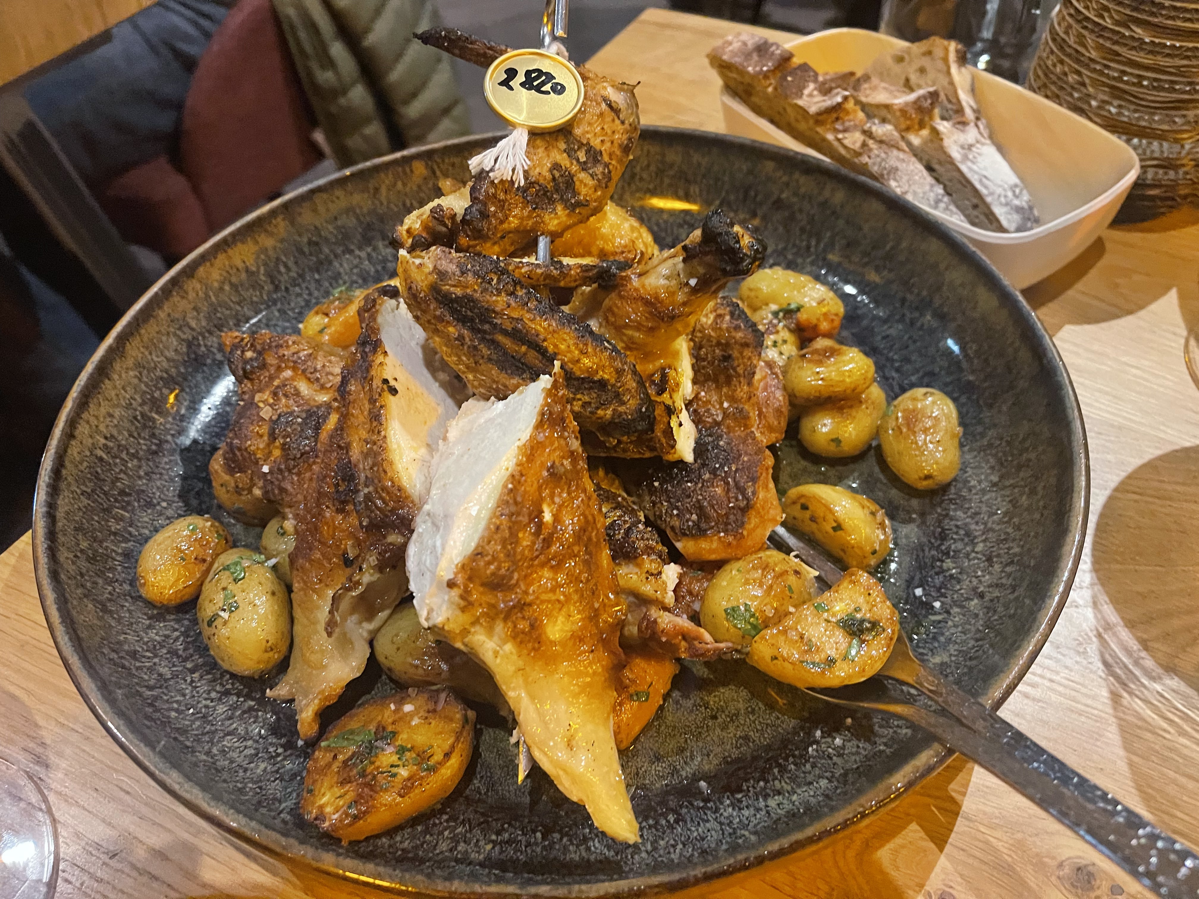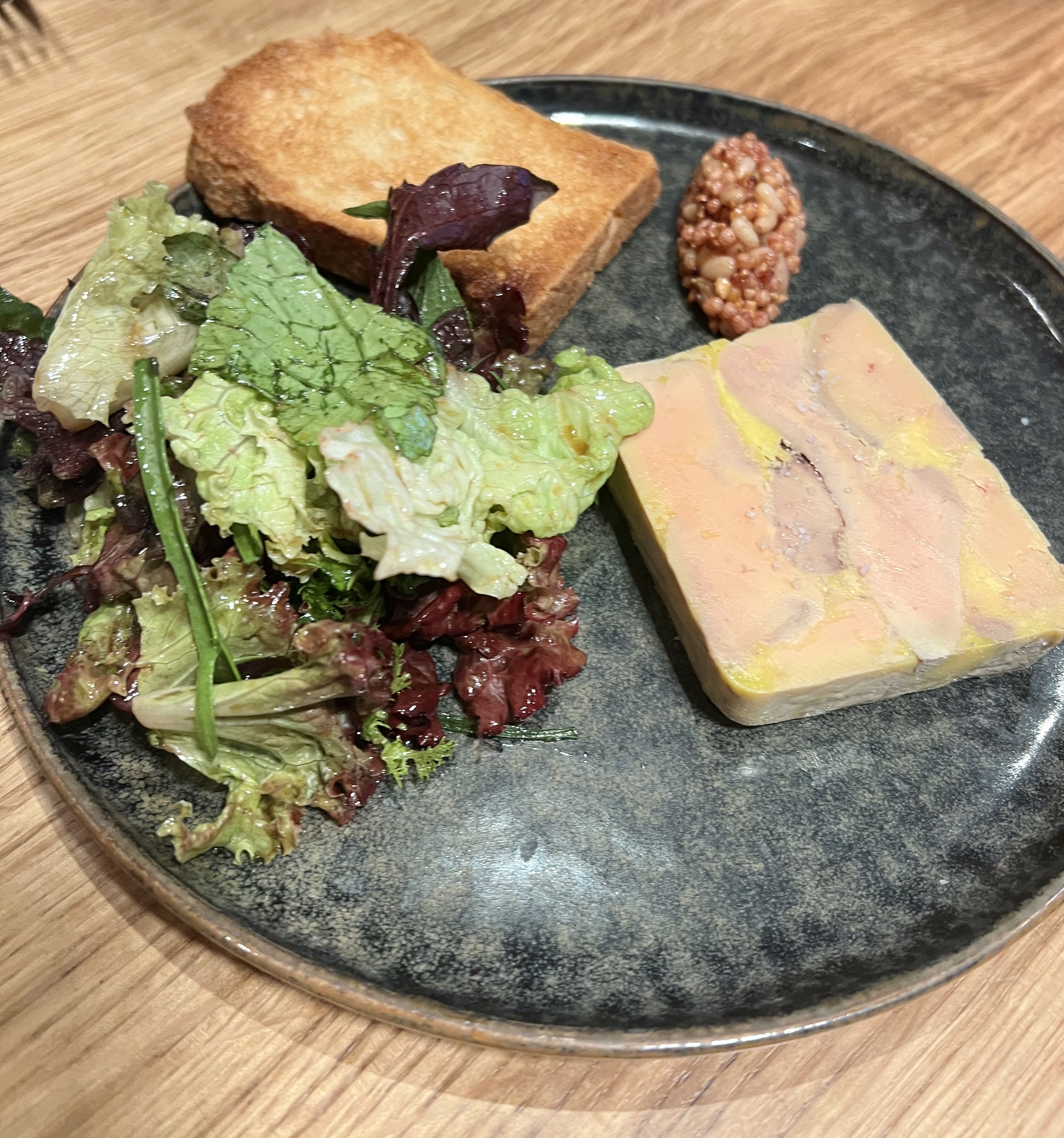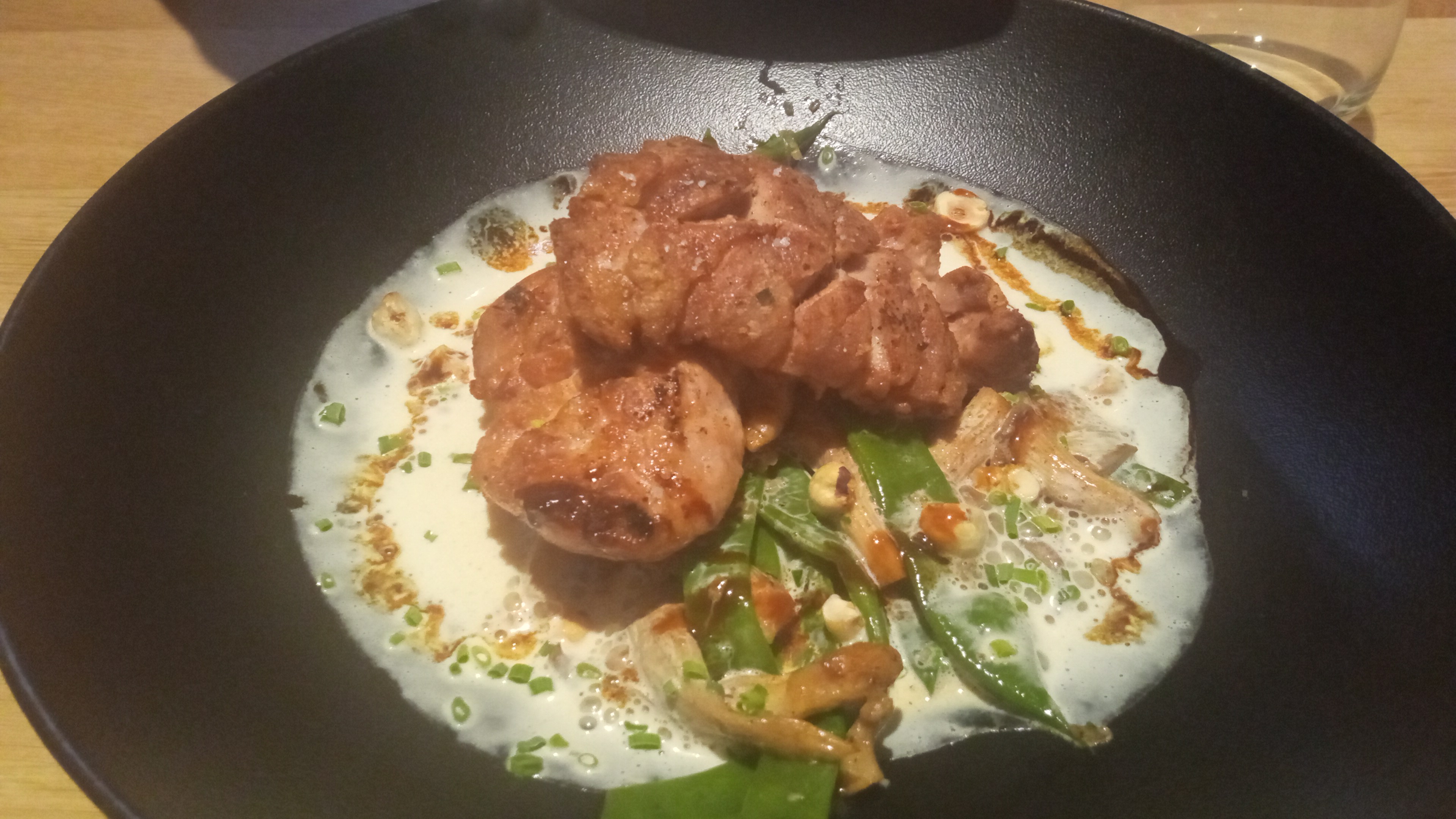Nous avons dû commander le poulet de Bresse ici, mais nous avons été légèrement confus par la difficulté de couper et de mordre certaines parties de la peau. Sinon, toute l'expérience aurait été parfaite. La viande du poulet était tendre et juteuse, le foie gras fait maison était équilibré et bien assaisonné et le sommelier nous a fait d'excellentes recommandations de vins !
