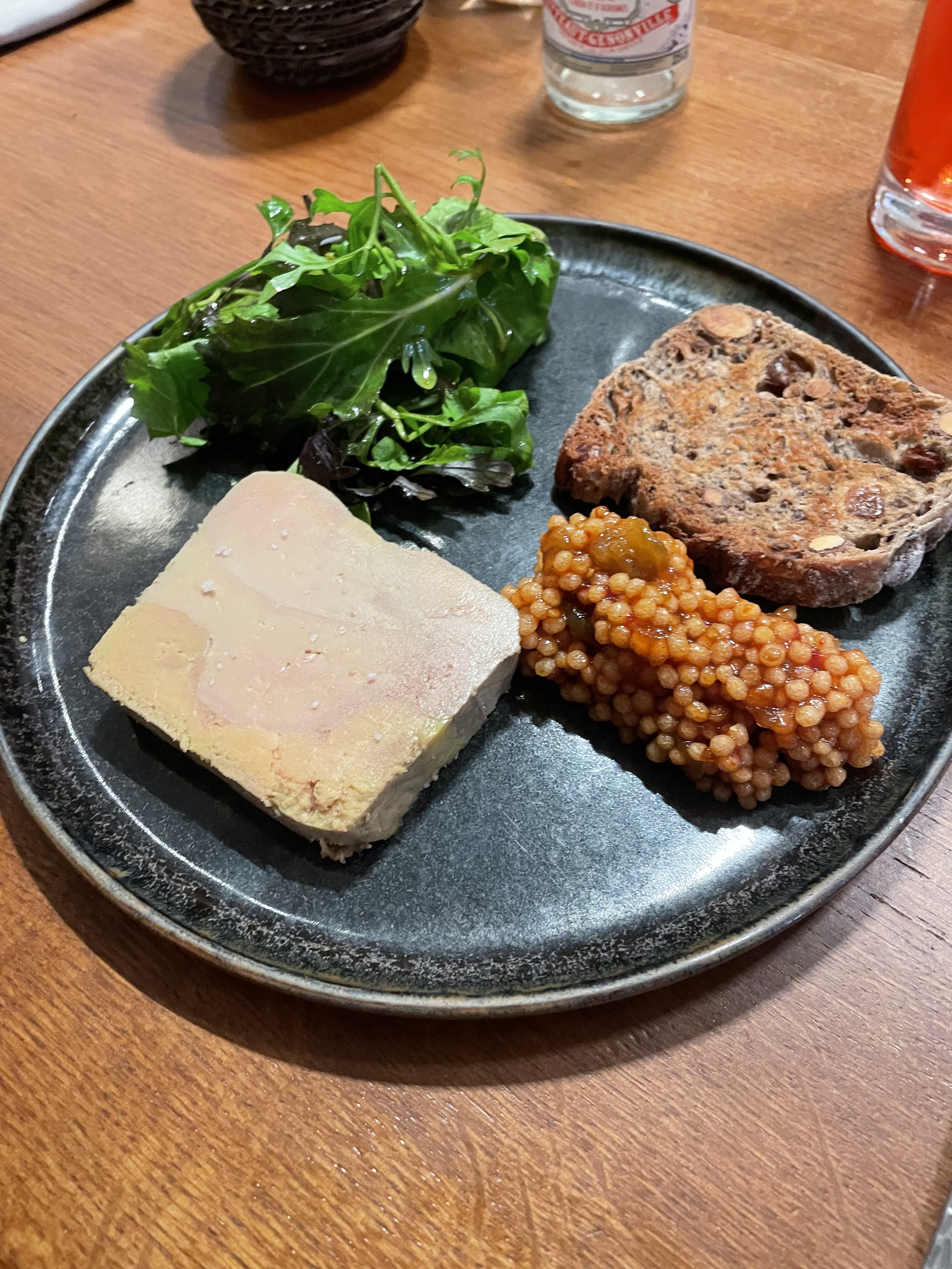 Bon mais surfait et trop cher. Le plateau de poisson que nous avons eu n'avait pas beaucoup de saveur bien qu'il soit plein d'herbes et de fruits. L'apéritif aux lentilles est excellent (j'ai commandé sans fromage ni bacon) mais c'est 25 euros pour une toute petite assiette. Bien trop cher.