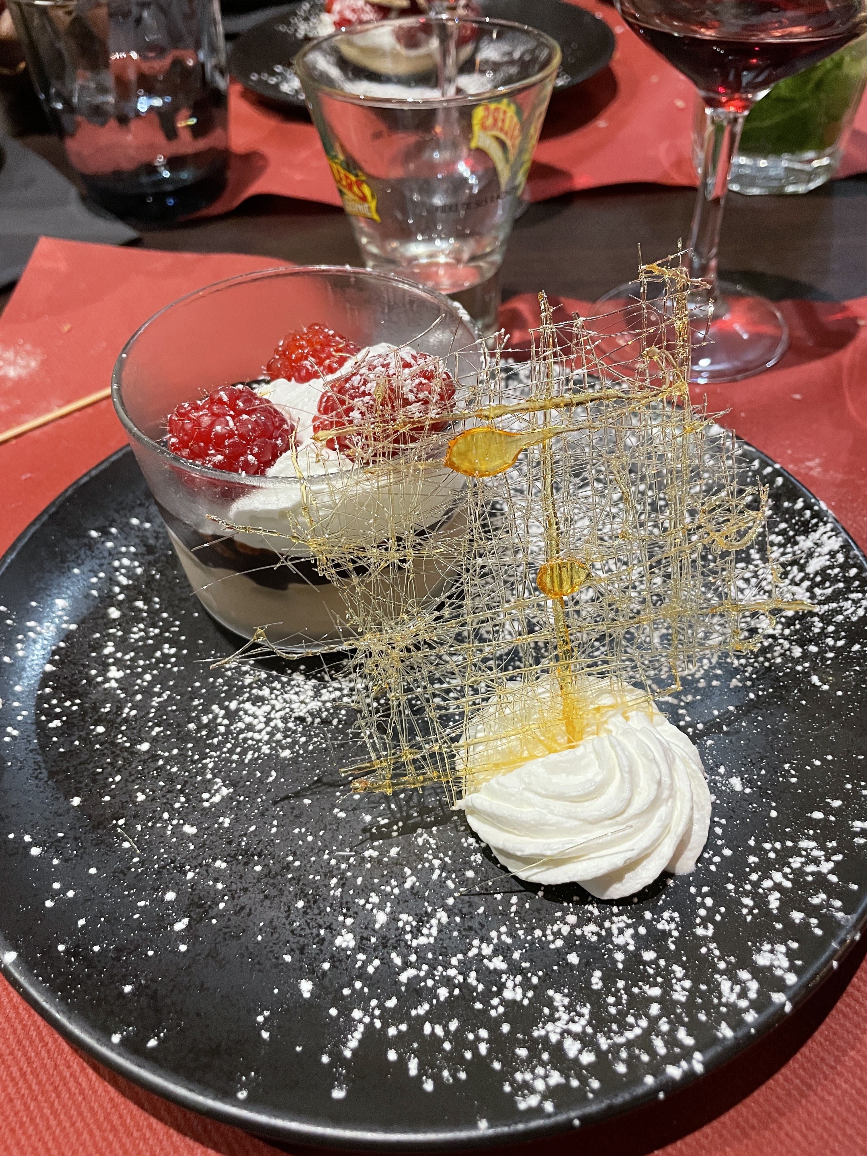 Pas terrible, lasagne de saumon très sec par exemple et avec peu de saumon, le canard noyé sous une sauce,dessert gras ( mousse maison de nougat) , service longgggg
