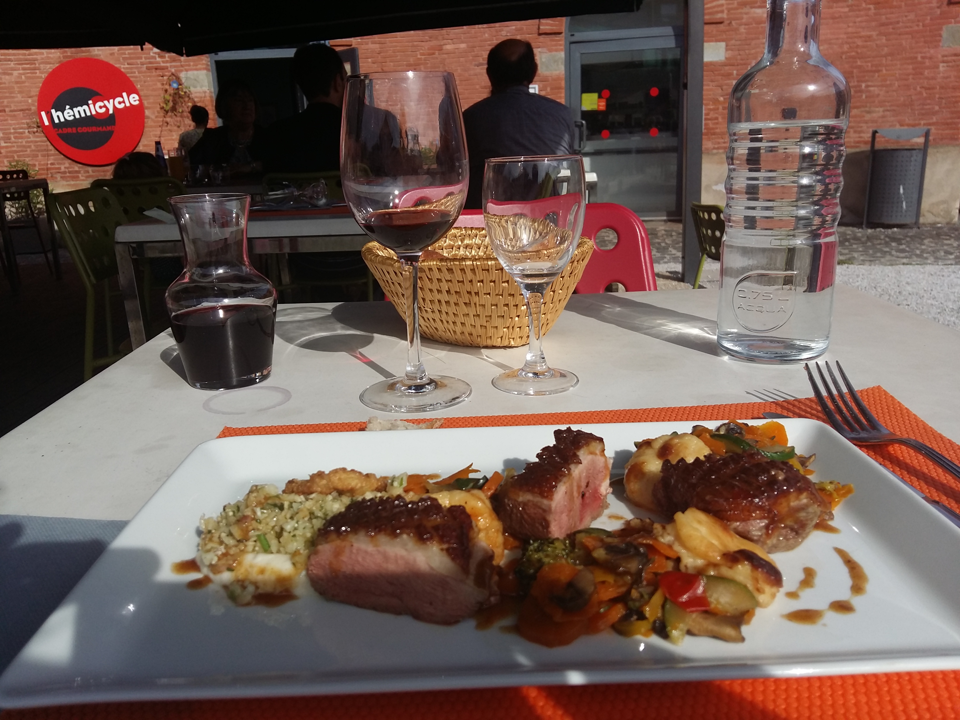 Un restaurant agréable avec deux salles et une terrasse à quelques pas de la Garonne. Service rapide, chaleureux et toujours avec le sourire. Les plats sont simples mais copieux, pour ma part une entrée de tomates et mozzarella bufala, en plat un teriyaki de magrets de canard avec patates douces, et en dessert une pavlova aux fruits rouges. Je vous conseille l’hémicycle pour son service et ses plats copieux.