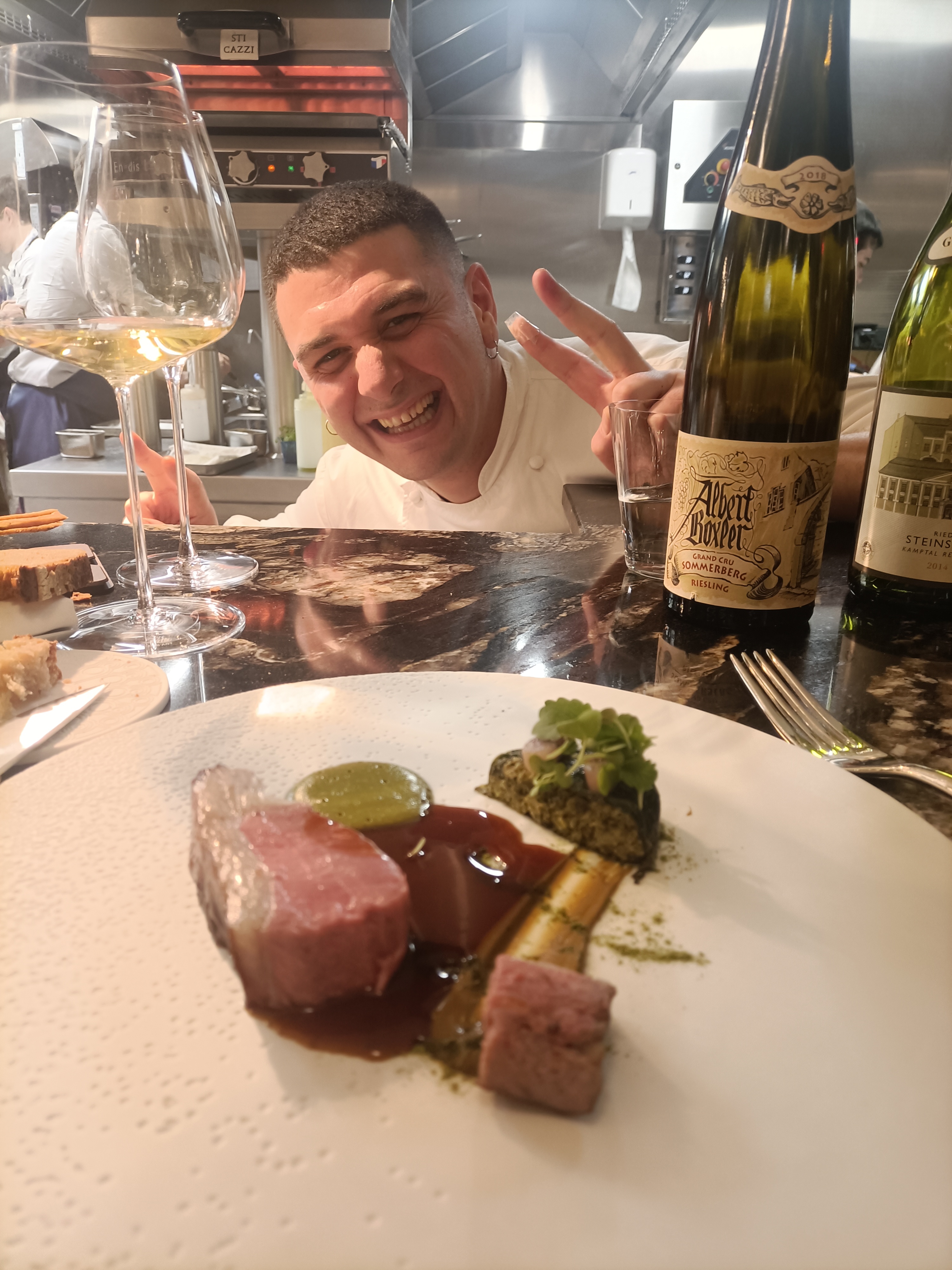 Un merveilleux moment de partage. Un accueil convivial. Assis au bar face aux cuisines, non seulement les plats et les vins étaient exquis mais c'était aussi un vrai spectacle de voir le Chef et sa brigade œuvrer. Une soirée exceptionnelle et j'aimerais bien connaître comment l'agneau est cuit tant la cuisson est parfaite et uniforme.
