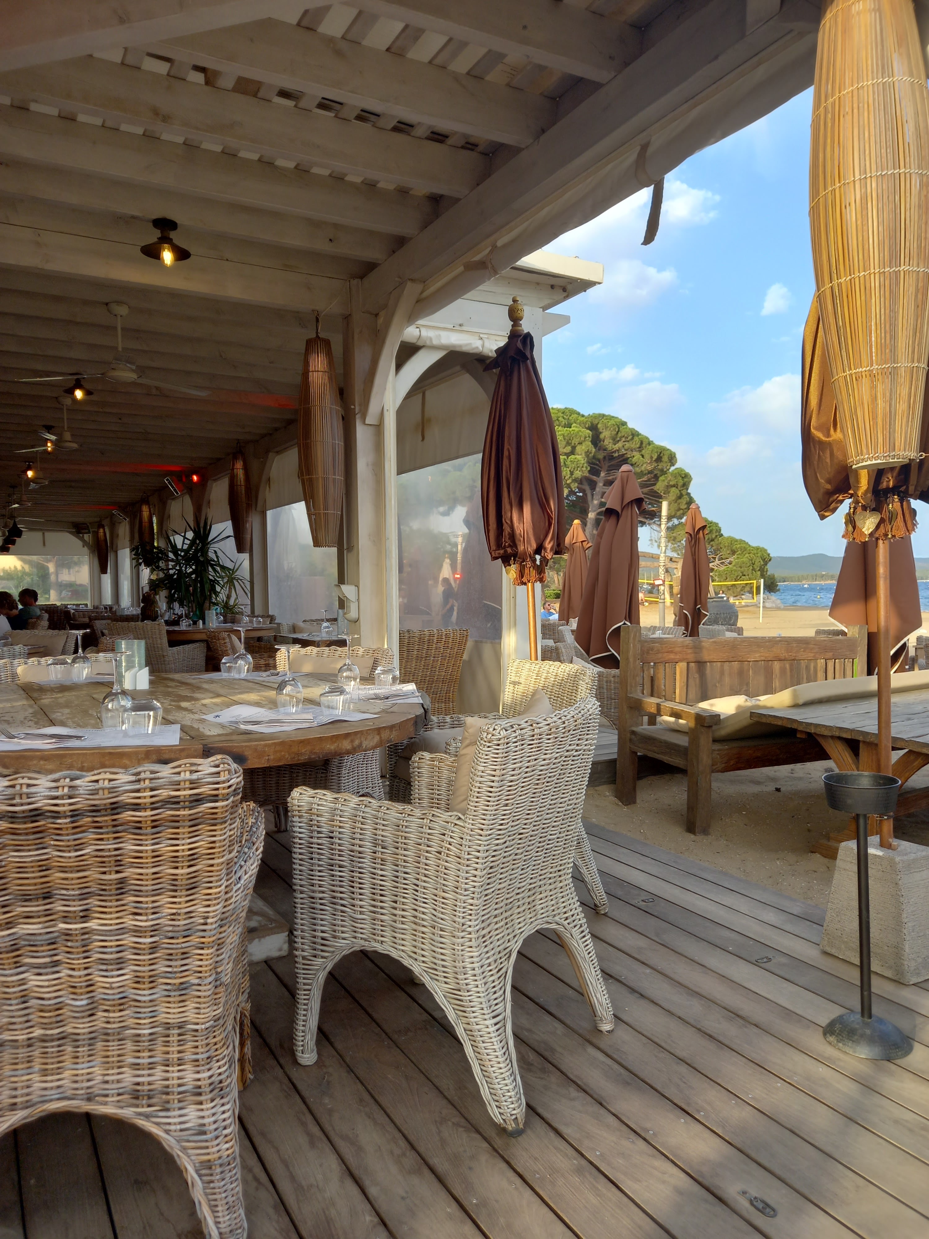 Un restaurant très sympa à quelques mètres de la mer et disposant d une belle plage privée. Le décor mérite le détour et sort de l' ordinaire.