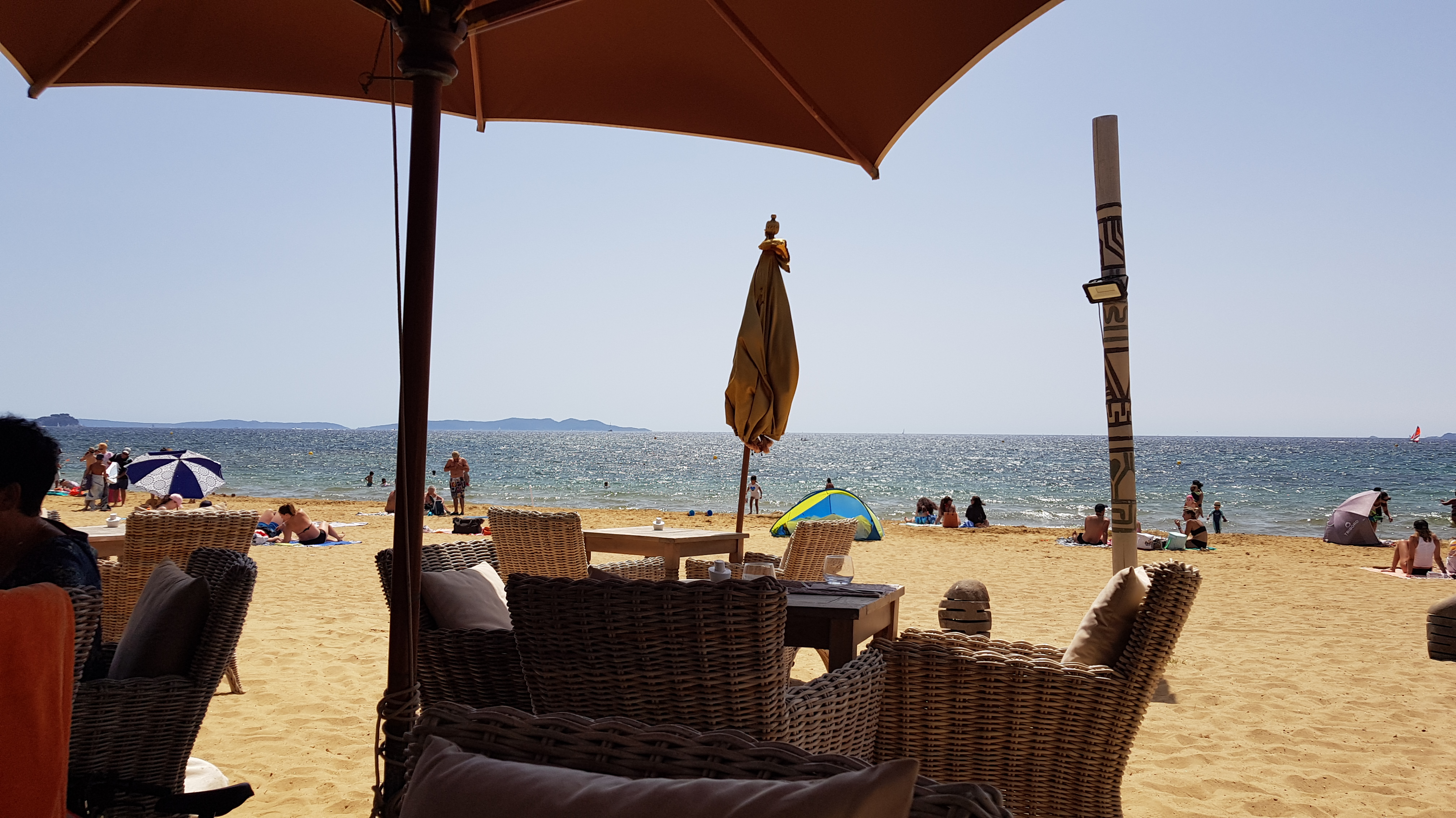 Restaurant très sympathique les pieds dans le sable face à la mer... Très bons plats, un peu cher mais le cadre magnifique face aux îles de Porqueroles et Port Cros ça se paye.
