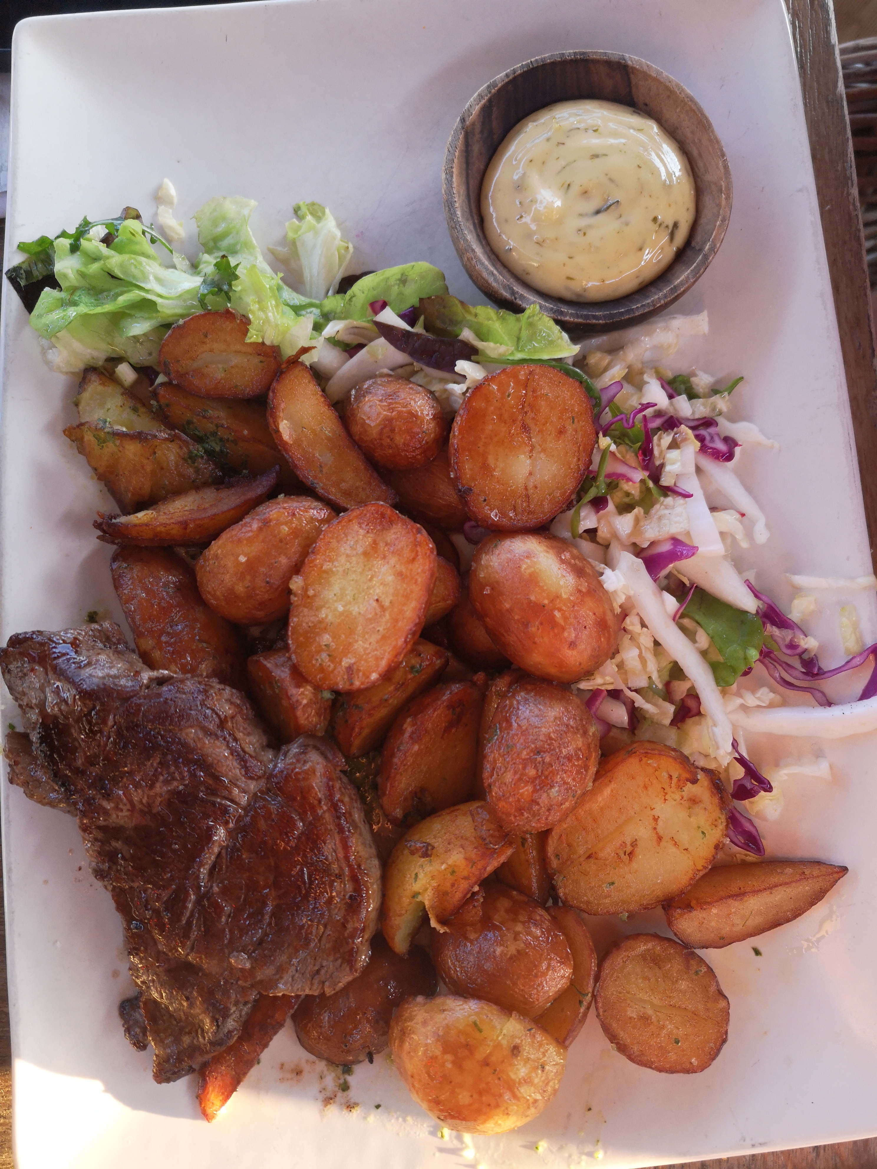 Cadre sympa. Plats bon, dommage que ça soit servit dans des assiettes ébréchées. Personnel relativement agréable.