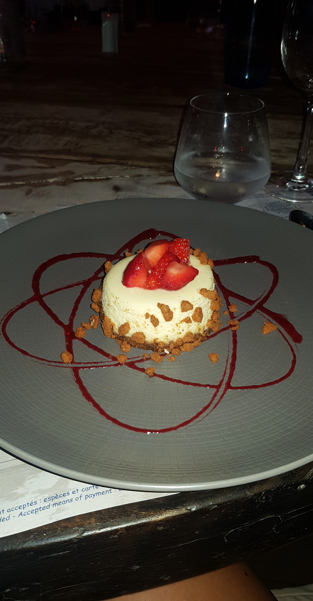 Repas très agréable, les pieds dans le sable Je suis partagé entre le côté reposant du repas à la bougie et le fait de ne pas profiter de ces belles assiettes qui méritent d'être mises en valeur. Repas copieux et bon Bien accueillis et servis par une équipe disponible et souriante A faire donc :-)