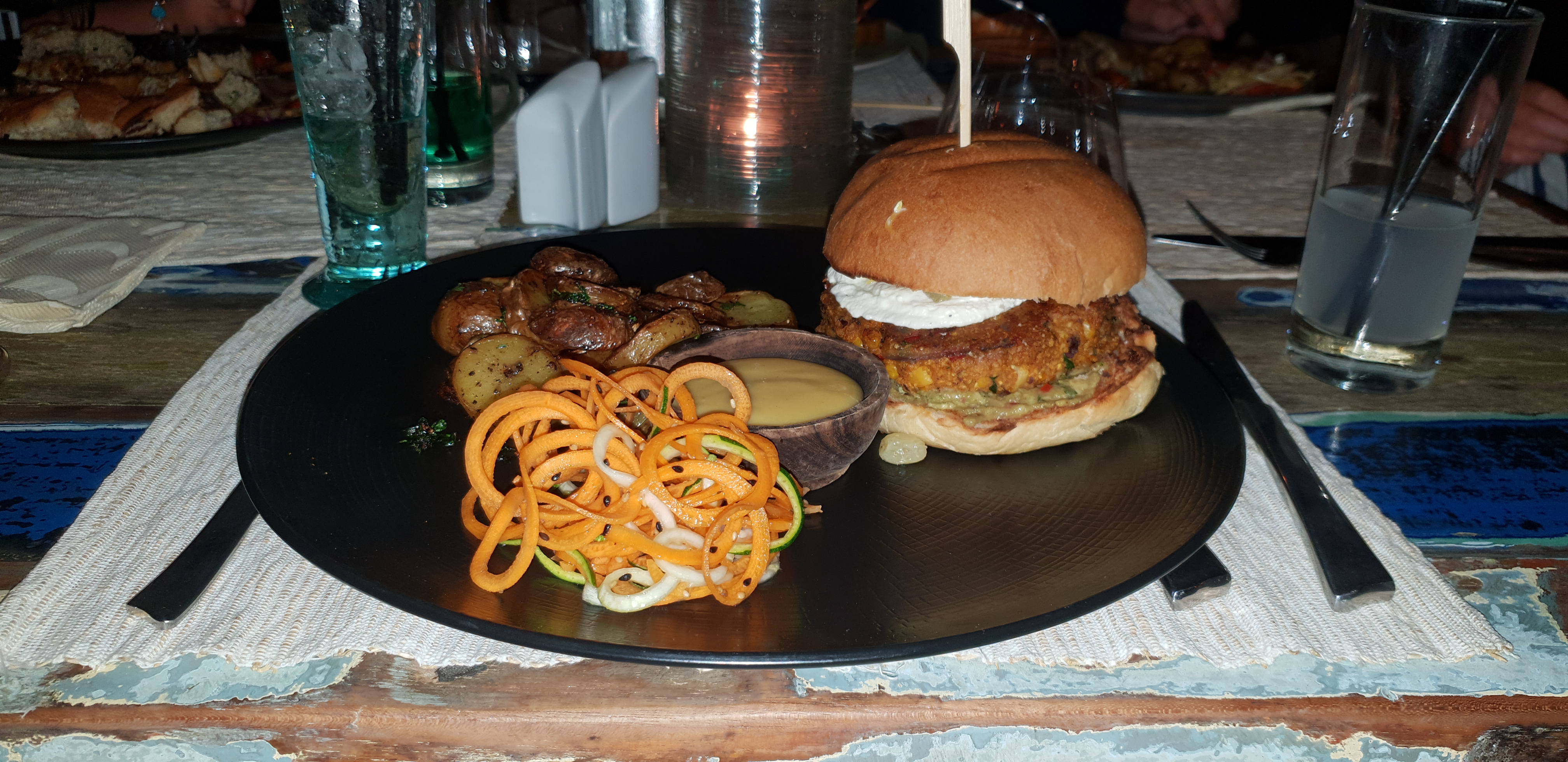 Franchement j'ai adoré cette ambiance au bord de la mer tout en dînant et en plus de ça c'est très luxueux, par contre moi qui aime les pâtes, dans ce resto il n'y a que ça (photo que j'ai posté) et en plus de cela c'est du végétarien 😕bref ce fut quand même bon 😋...