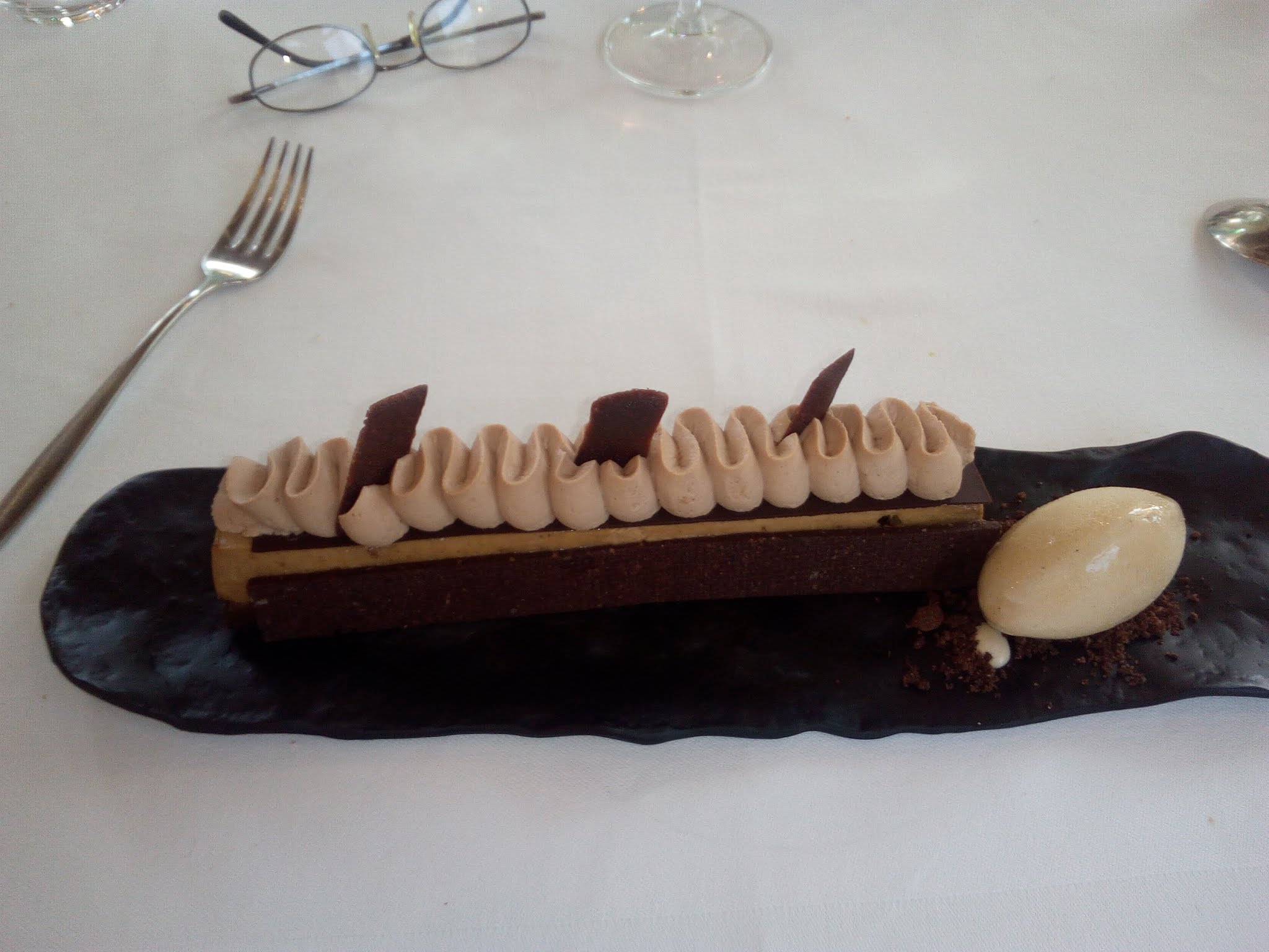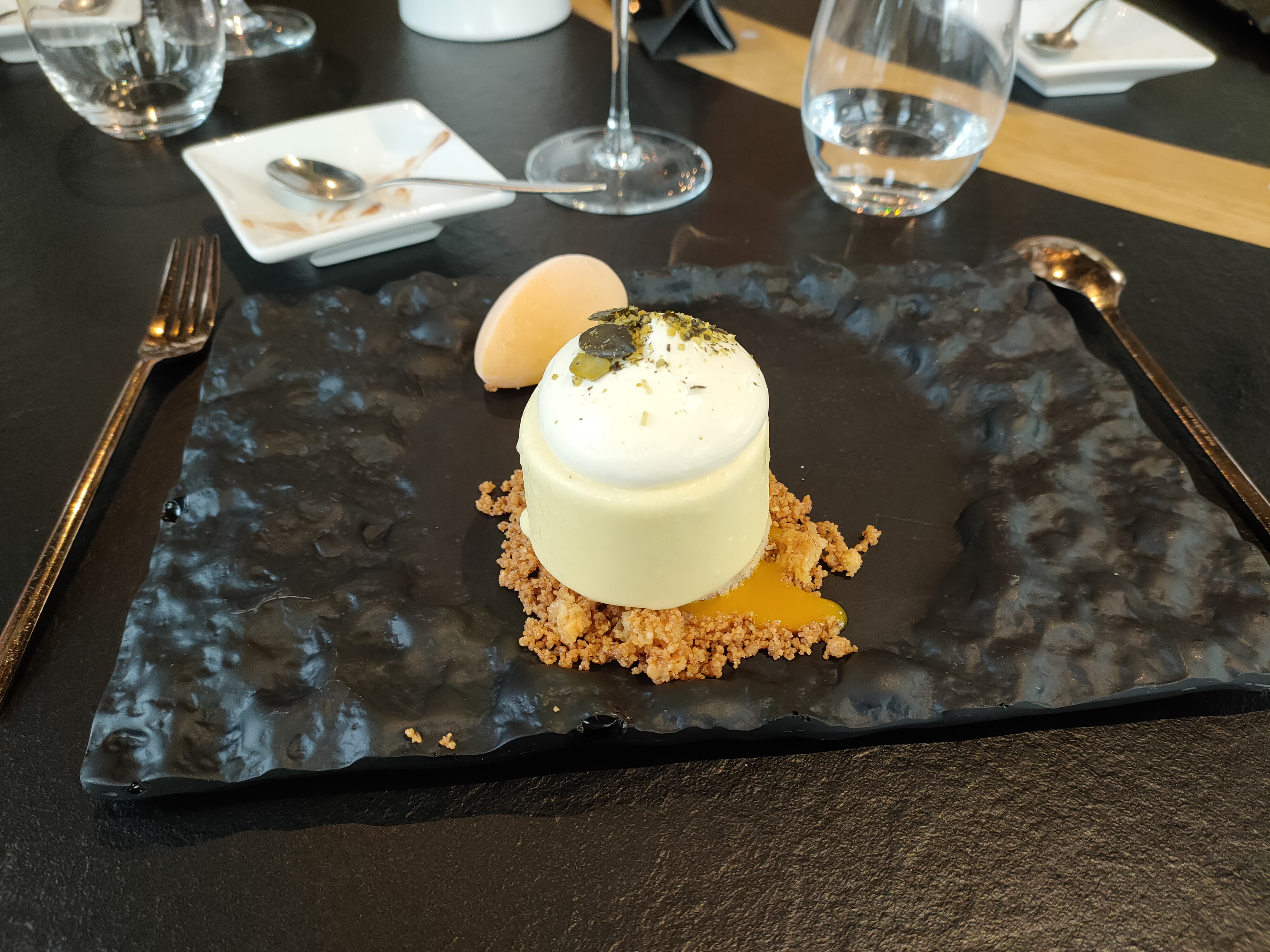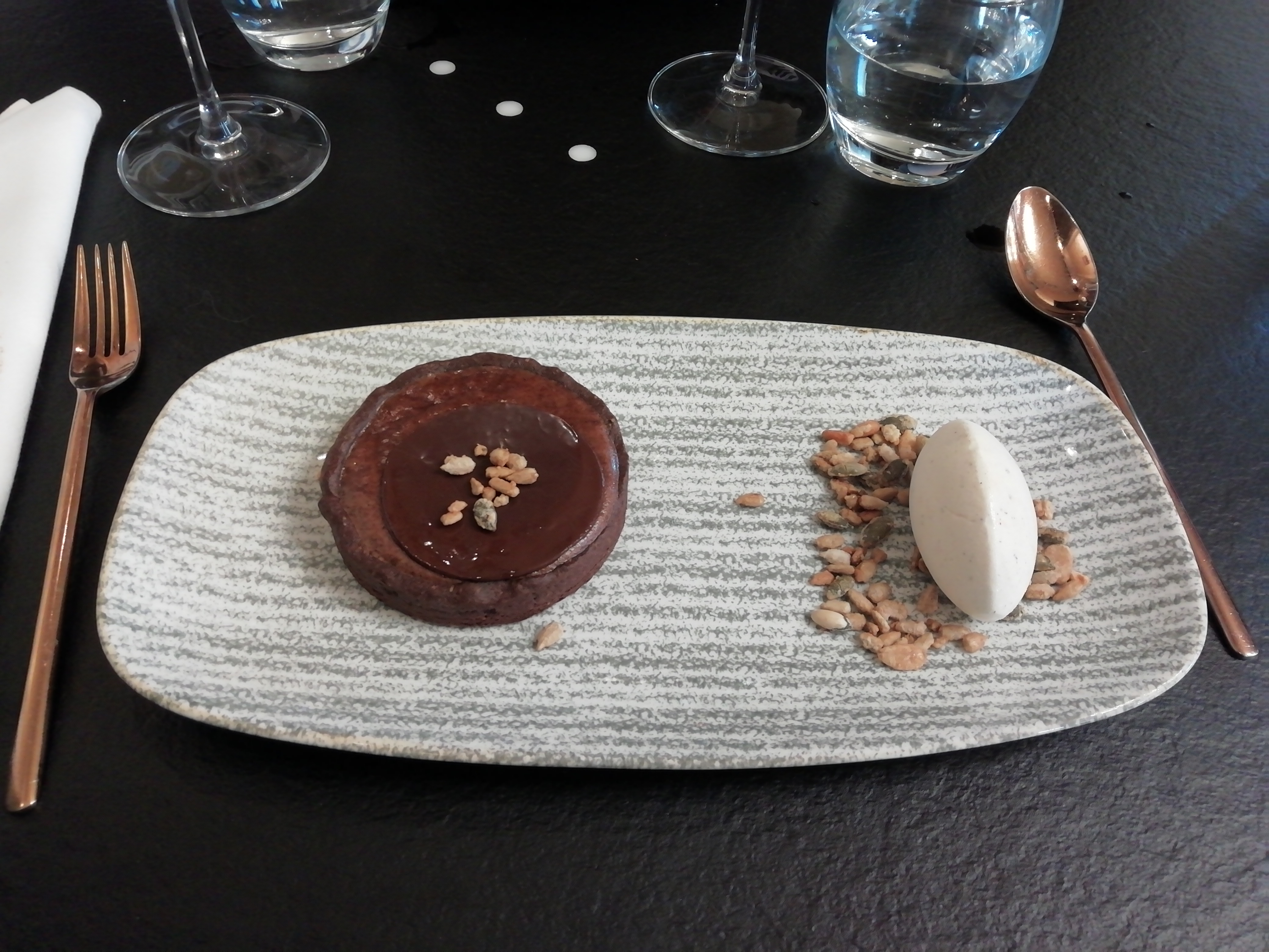 Des mets raffinés avec une présentation parfaite ! Seul bémol : le dôme au chocolat passion un peu trop sucré à mon goût et et surtout : la température de la pièce un peu juste ! 20 ° Un 20/20 pour le Savenniere au verre : excellent !