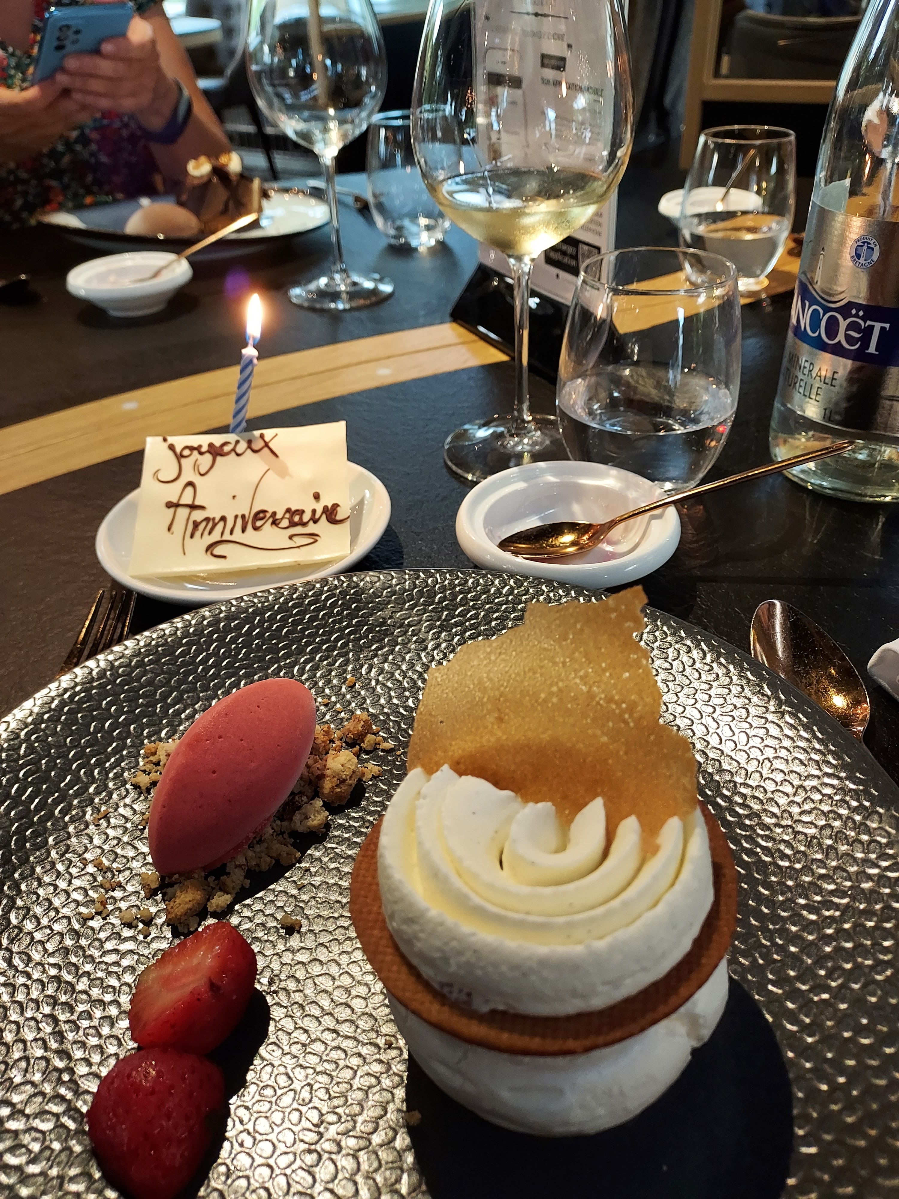 Je remercie mes beaux-parents de nous avoir invité dans ce bel endroit. je connaissait le restaurant avant la COVID et suis revenu avec plaisir. J'ai été très surpris agréablement par le niveau de cuisine qui a progressé. Un service aussi soigné et discret. Bravo à toutes vos équipes et au chef. merci encore pour ce beau moment. nous avons fêté une réunion de famille pour cette occasion. j'ai trouvé que le niveau de cuisine avait progressé fortement avec des plats de très bon niveau et des découverte au niveau des vins très surprenant. merci à toutes les équipes du restaurant pour ce très grand moment.