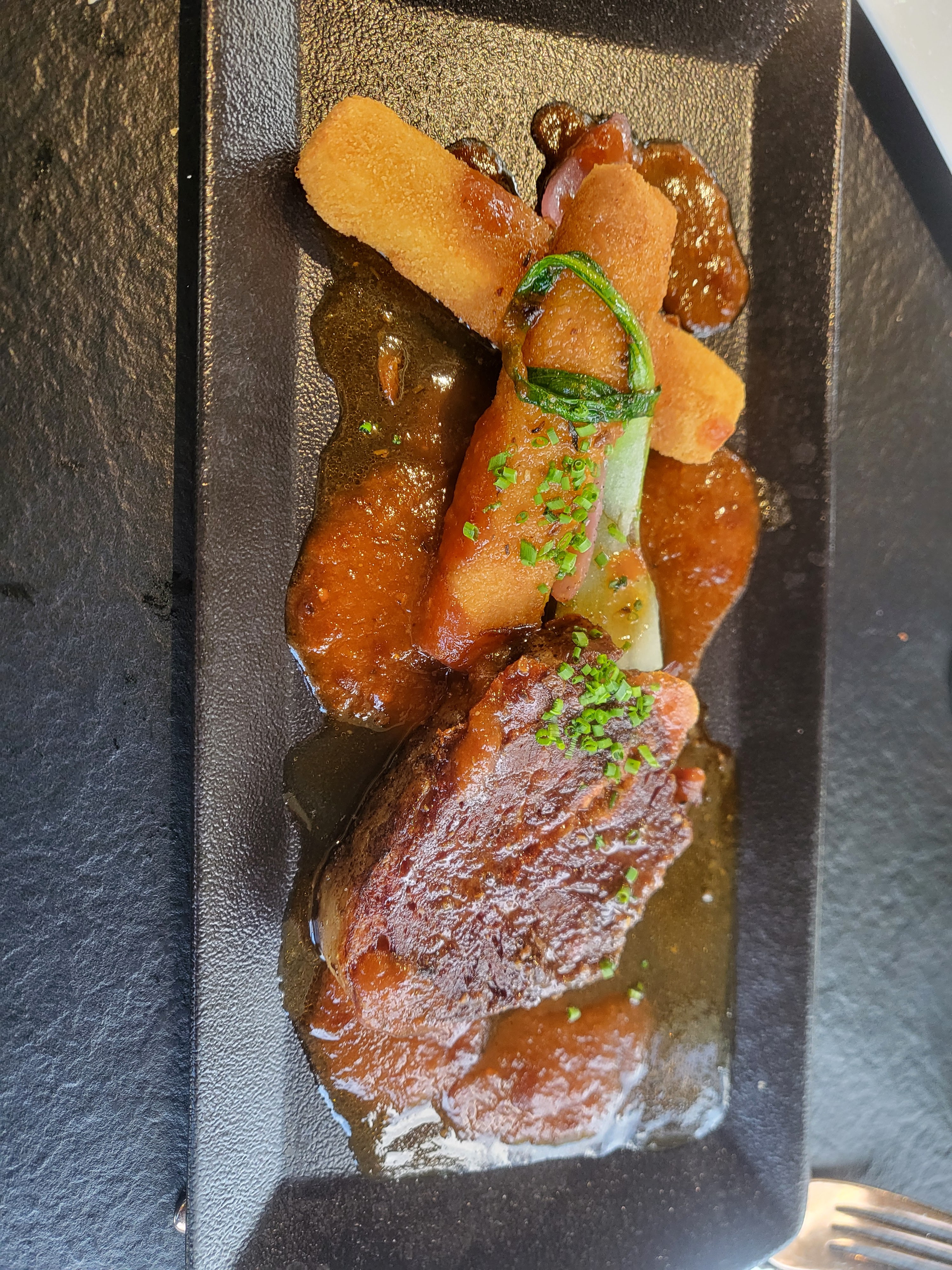 Nous avons mangé un repas excellent, le boeuf comme les st jacques etaient divin. De bons conseils sur les vins. Les prix sont un peu élevés mais ça valait vraiment le coût et on reviendra avec grand plaisir. L'accueil était parfait et l'ambiance intérieure calme et chaleureux. Je recommande +++