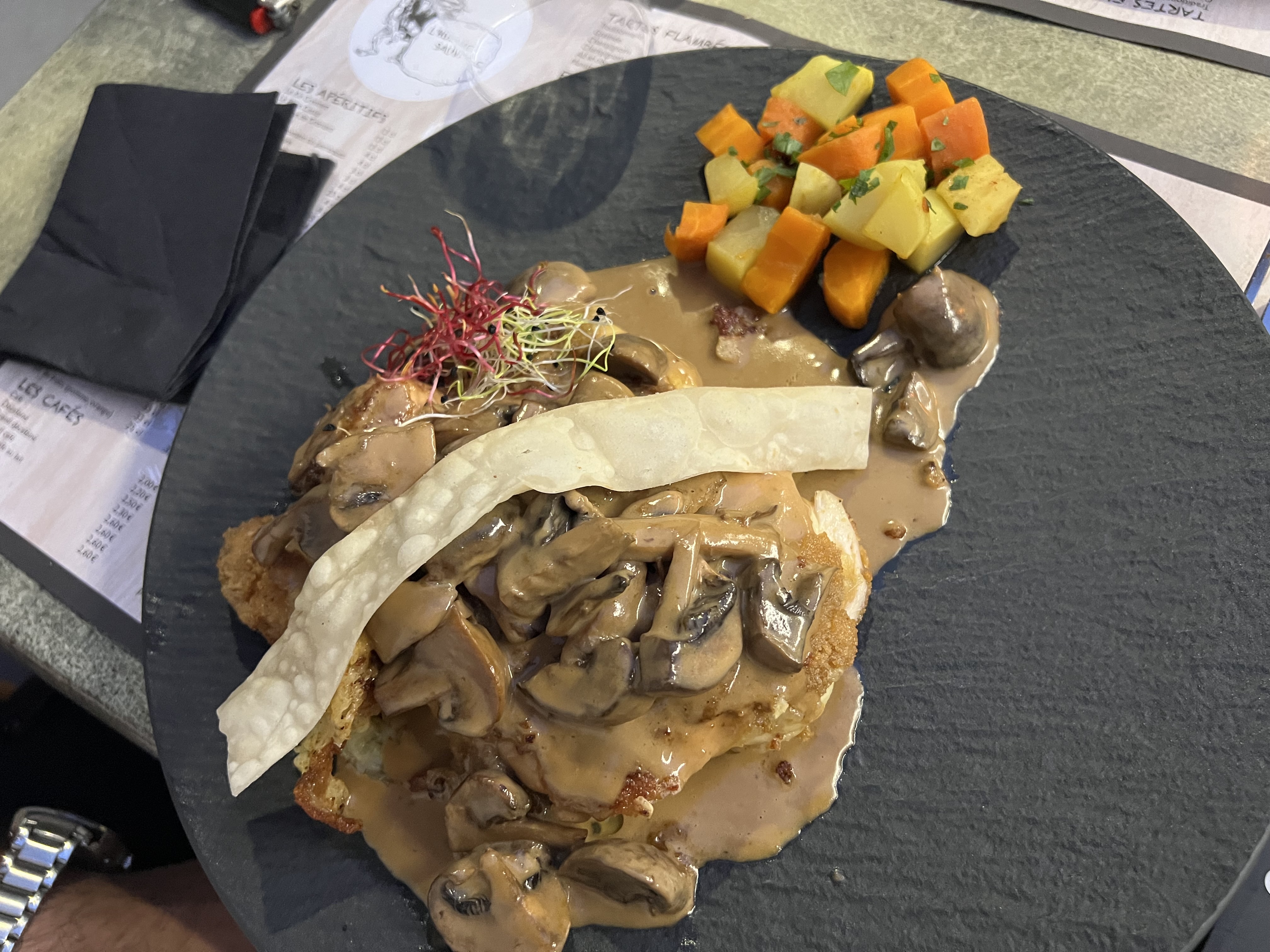 Cordon bleu excellent (et très copieux) ! Idem pour les spatzle en accompagnement. Petite pépite pour tous les amateurs de cuisine alsacienne réconfortante 👌🏼