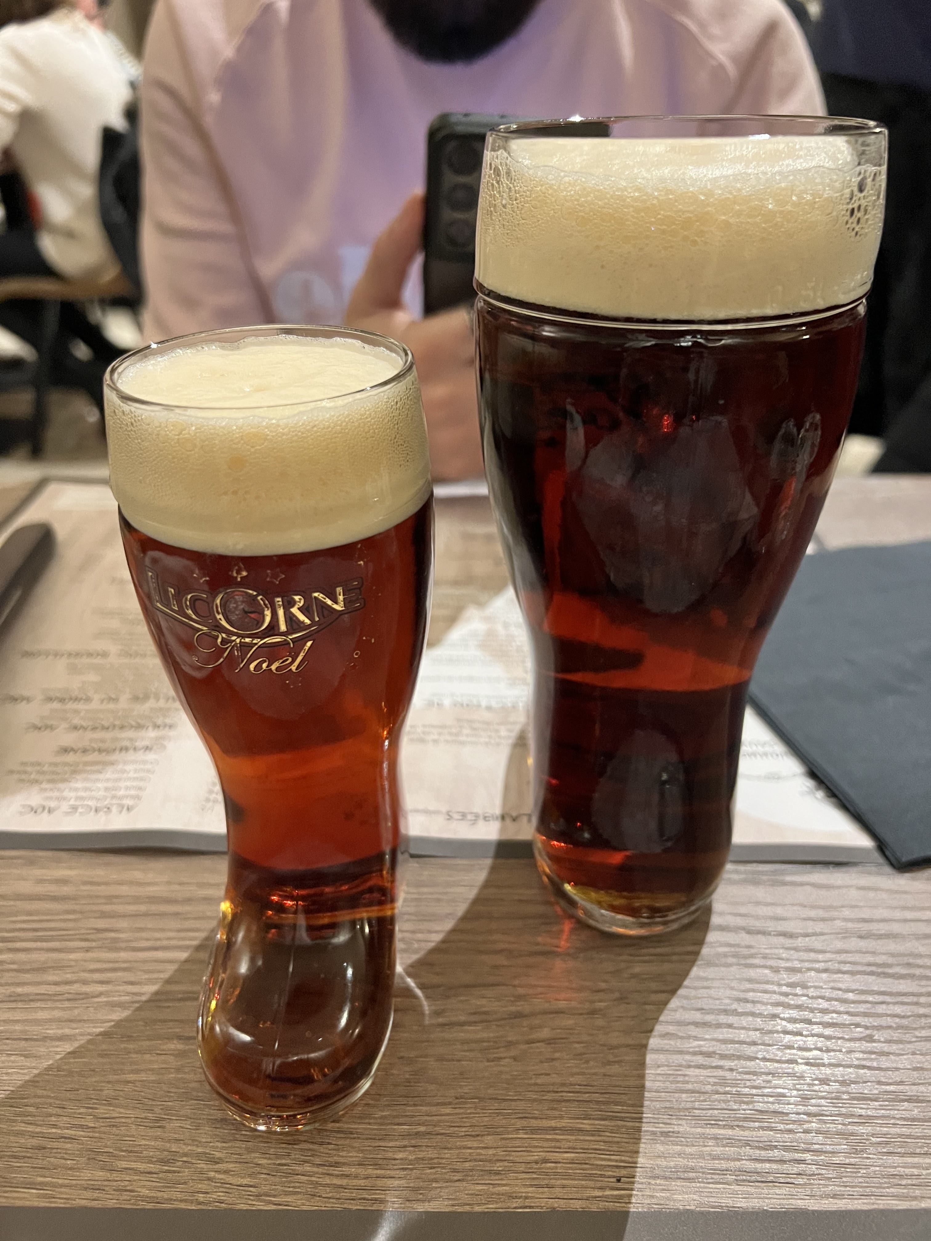 Accueil chaleureux avec des serveurs toujours souriants et sympathiques et des plats vraiment bons et bien généreux. Les tartes flambées sont très bonnes et les Gordon bleu au morbier (suggestions du jour-dans la photo il y a juste la moitié) était incroyablement bon avec un ratio énorme des frites Pas de place pour un dessert!! 25€ plus au moins par tête Je recommande carrément On y retournera 100%