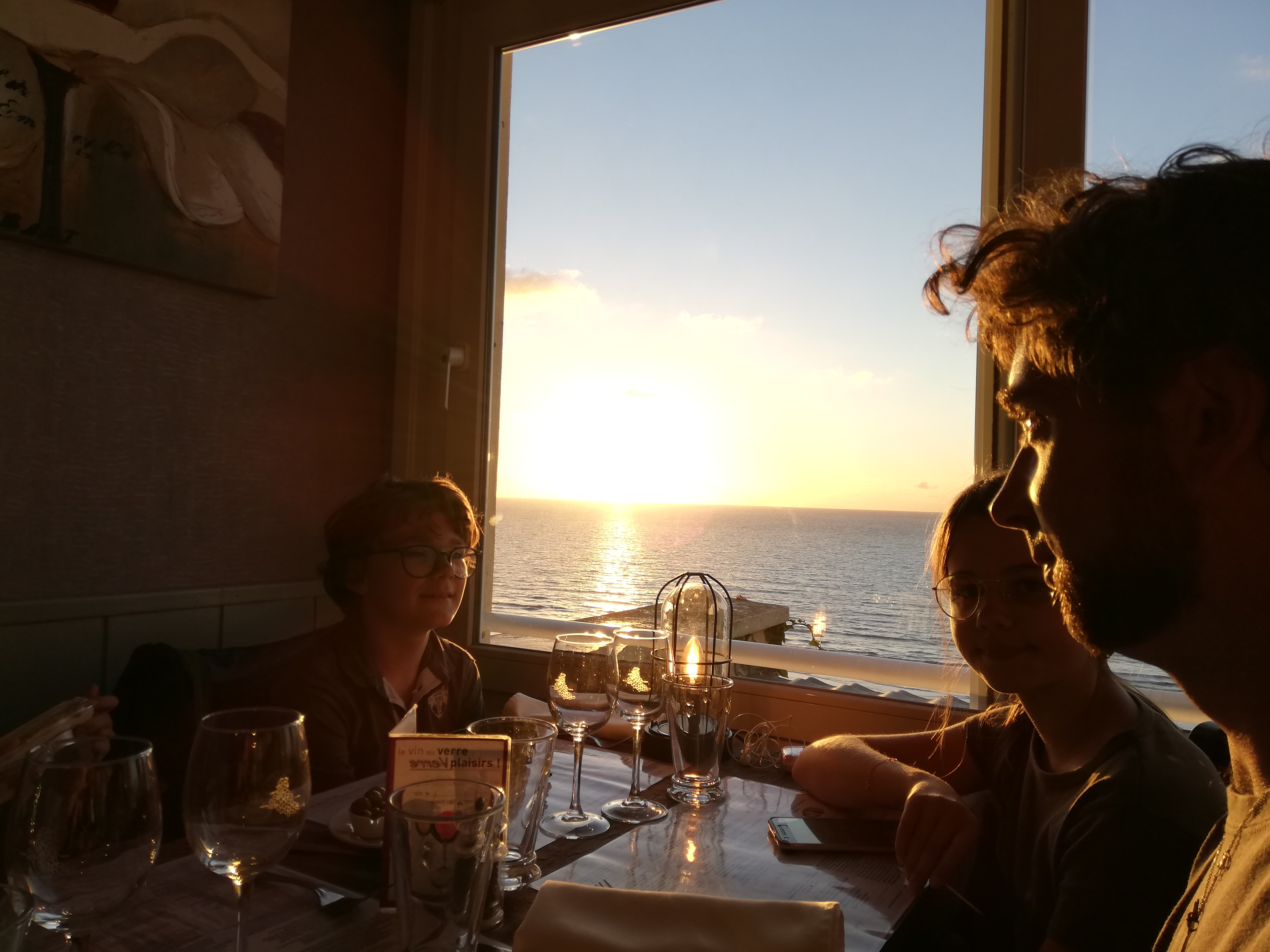 Table réservée côté mer avec nos 3 enfants où nous avons pu profiter d'un magnifique coucher de soleil. Personnel accueillant et sympathique. Les plats choisis nous ont bien convenus, nous reviendrons.