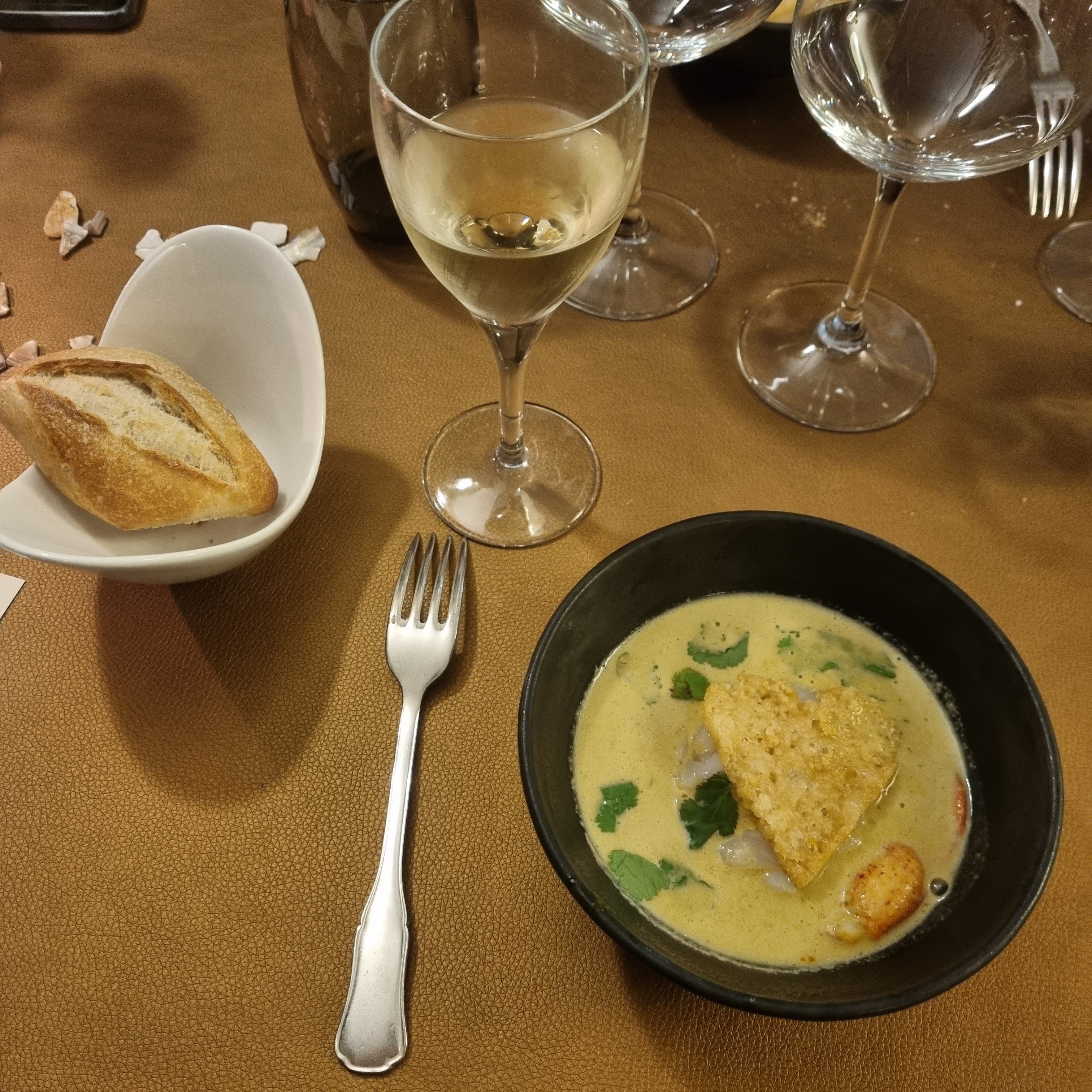 Bien accueillis dans un joli cadre, carte originale proposant des associations surprenantes, délicieuses, un régal pour les yeux et les papilles !! Une jolie cave ( que vous voyez) et une belle proposition de vins. Service parfait, sympathique, discret, hôte ayant à cœur que vous passiez un bon moment. En conclusion: Félicitations car avons effectivement passé un bon moment dans votre établissement, reviendrons très volontier et avec grand plaisir.