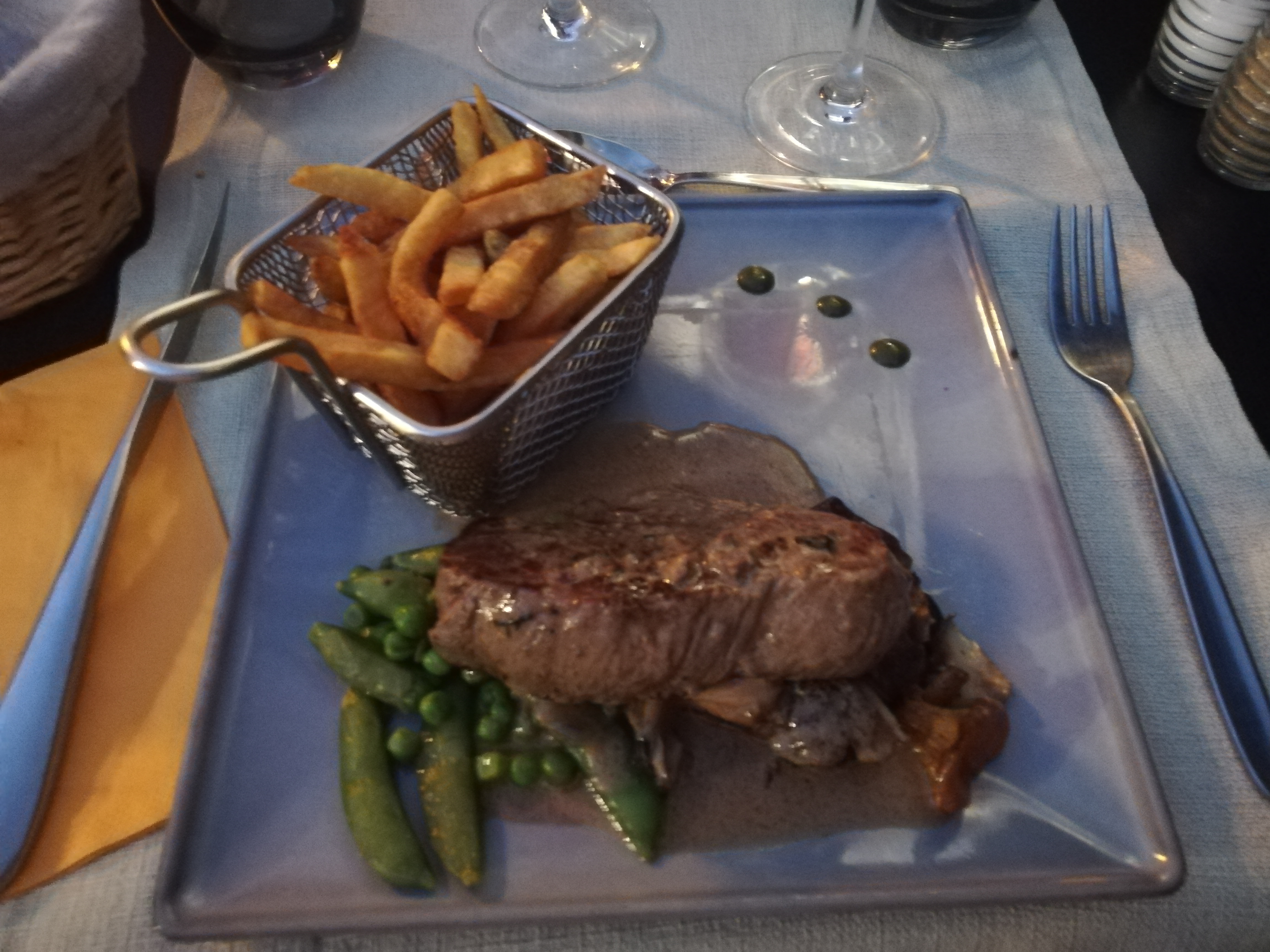 Le repas et le service étaient bons, mon morceau de viande du boucher était un peu dur.