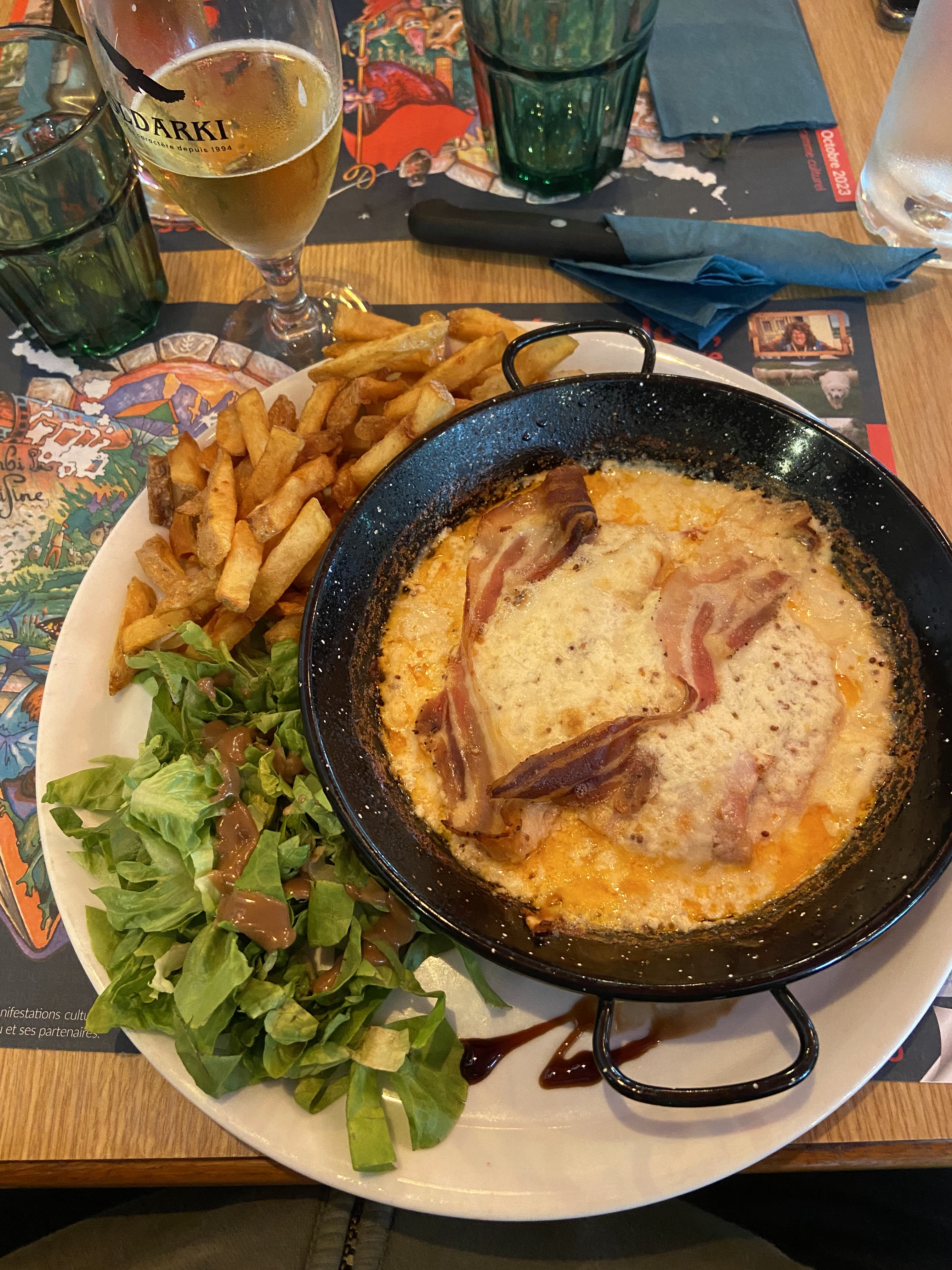 C'est bon mais c'était leg. La faim se fait encore sentir. La bière est bonne et le service très aimable. MISE À JOUR : j'y suis retourné pour me faire un avis, l'attente était longue, mais le burger très bon, plus nourrissant que la tartiflette. La bière toujours bonne, la moitié des frites étaient carbon. Service aimable en revanche.