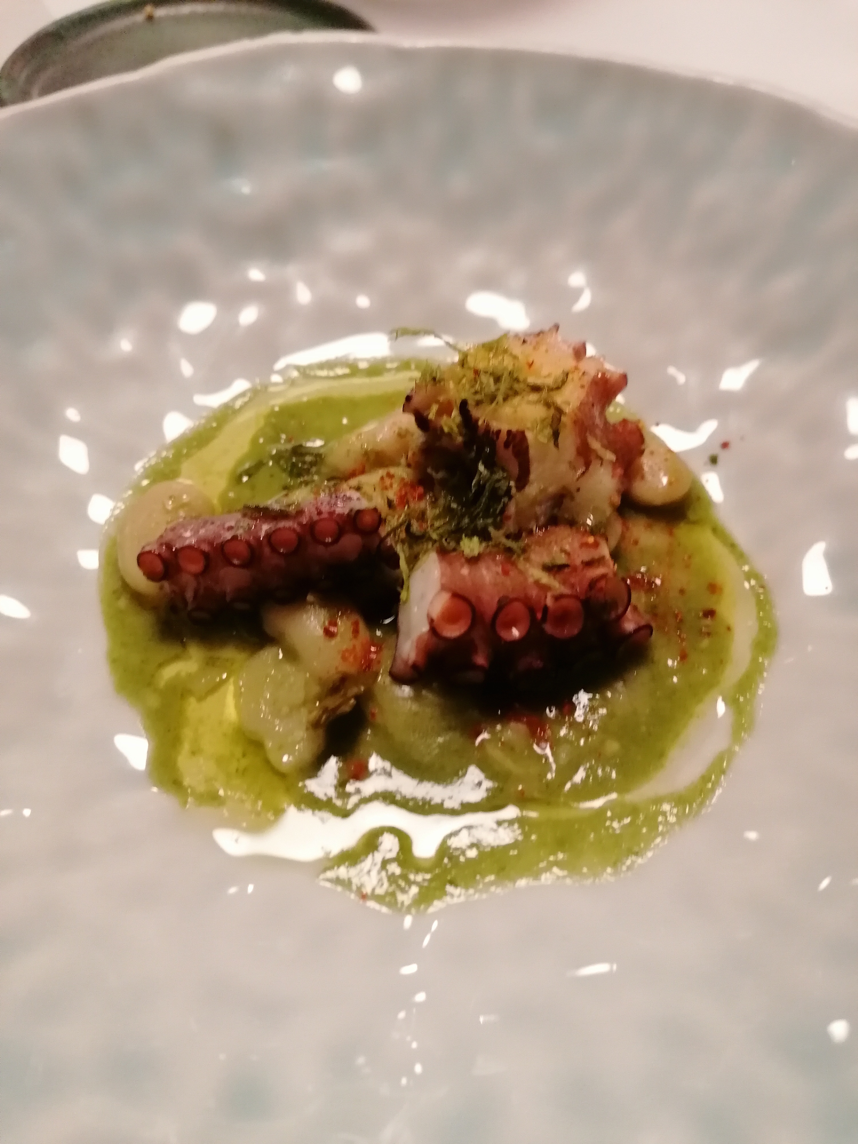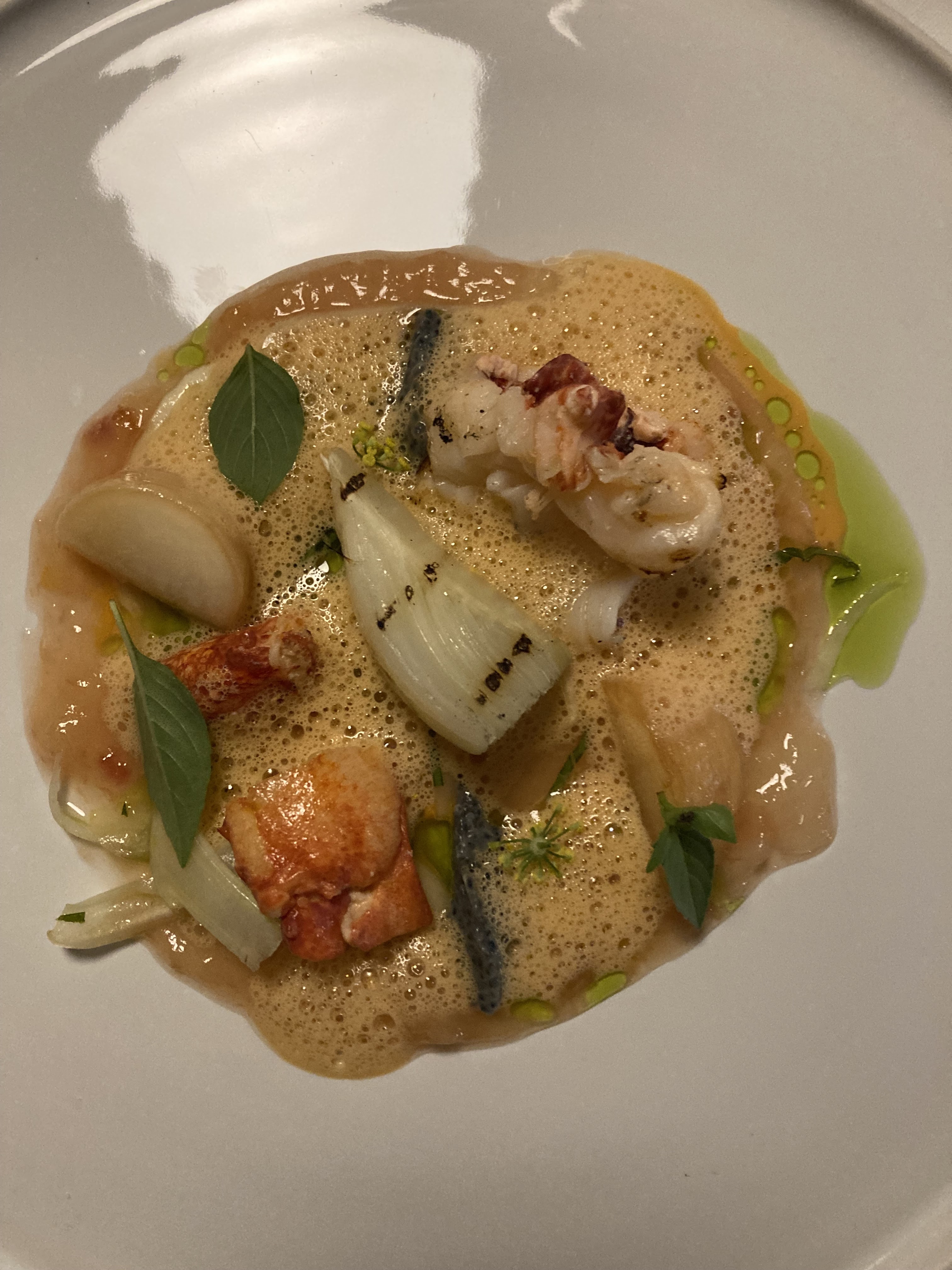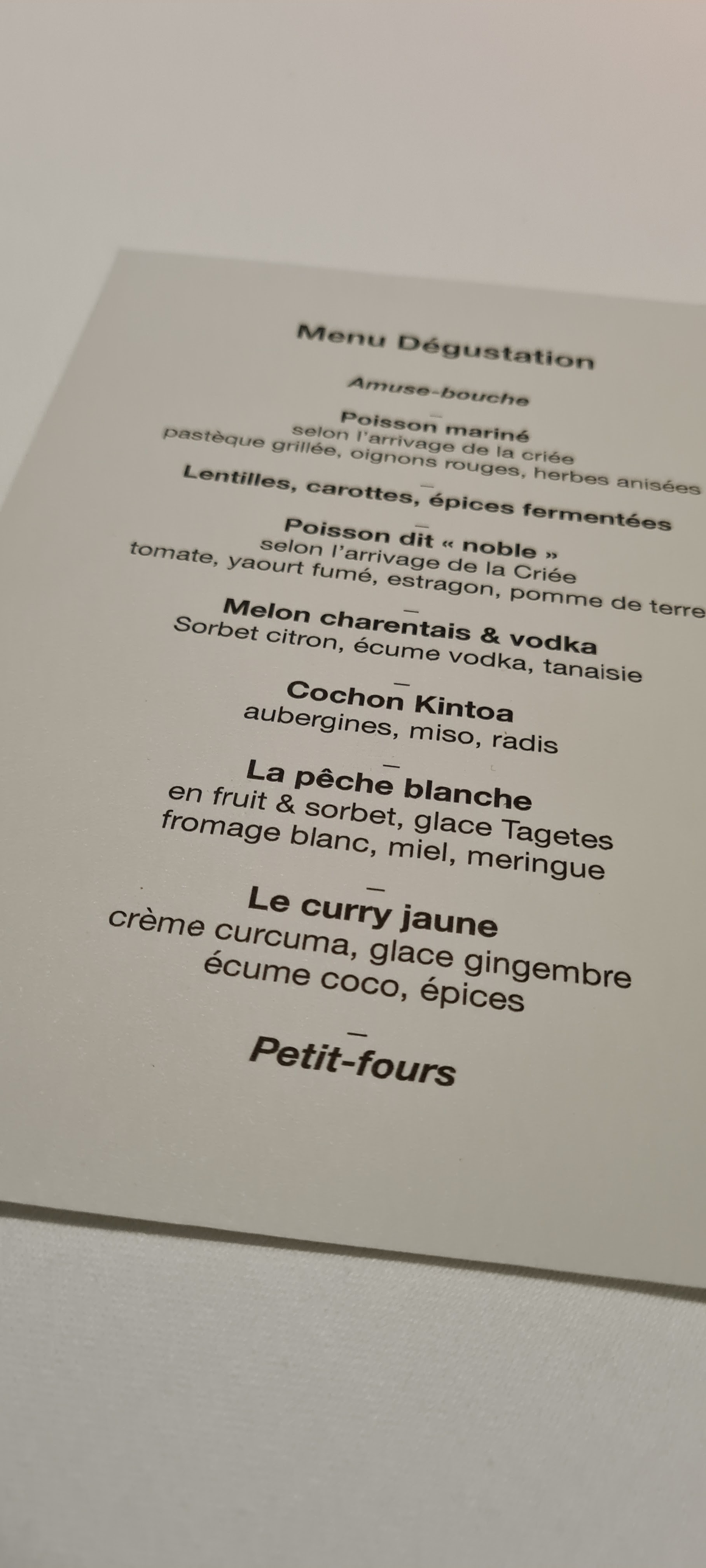 La cuisine est créative. Les associations sont imaginatives, les accords parfois osés : dé de pastèque et fromage de vache ; poulpe grillé, tomates et céleri ; louvine, melon, purée de pommes de terre, oignon fermenté. Les présentations permettent une belle lisibilité et une mise en valeur du produit principal de l'assiette. La particularité de cet établissement se centre donc autour de propositions assumées, aux reliefs étonnants, qui justifient l'escapade gastronomique et lui donnent sens. Les saveurs sont tour à tour surprenantes, parfois insolentes, mais le plaisir reste toujours le point nodal de l'expérience. C'est une gastronomie d'évasion, par moments percutante, qui a pu dérouter sur le dessert, où la pêche semble plus périphérique que centrale, sans que l'expérience de dépaysement gustatif en soit ternie. Le service est parfait, attentionné sans artifices, fluide sans être preste. L'expérience fut donc originale, moderne, permettant une parenthèse à la mesure des tarifs proposés. Les vins sont délicats et offrent un prolongement appréciable des ambitions de l'assiette. Essayez donc,, pour la surprise et l'originalité, pour vivre un moment gastronomique qui se remarque et restera en mémoire.