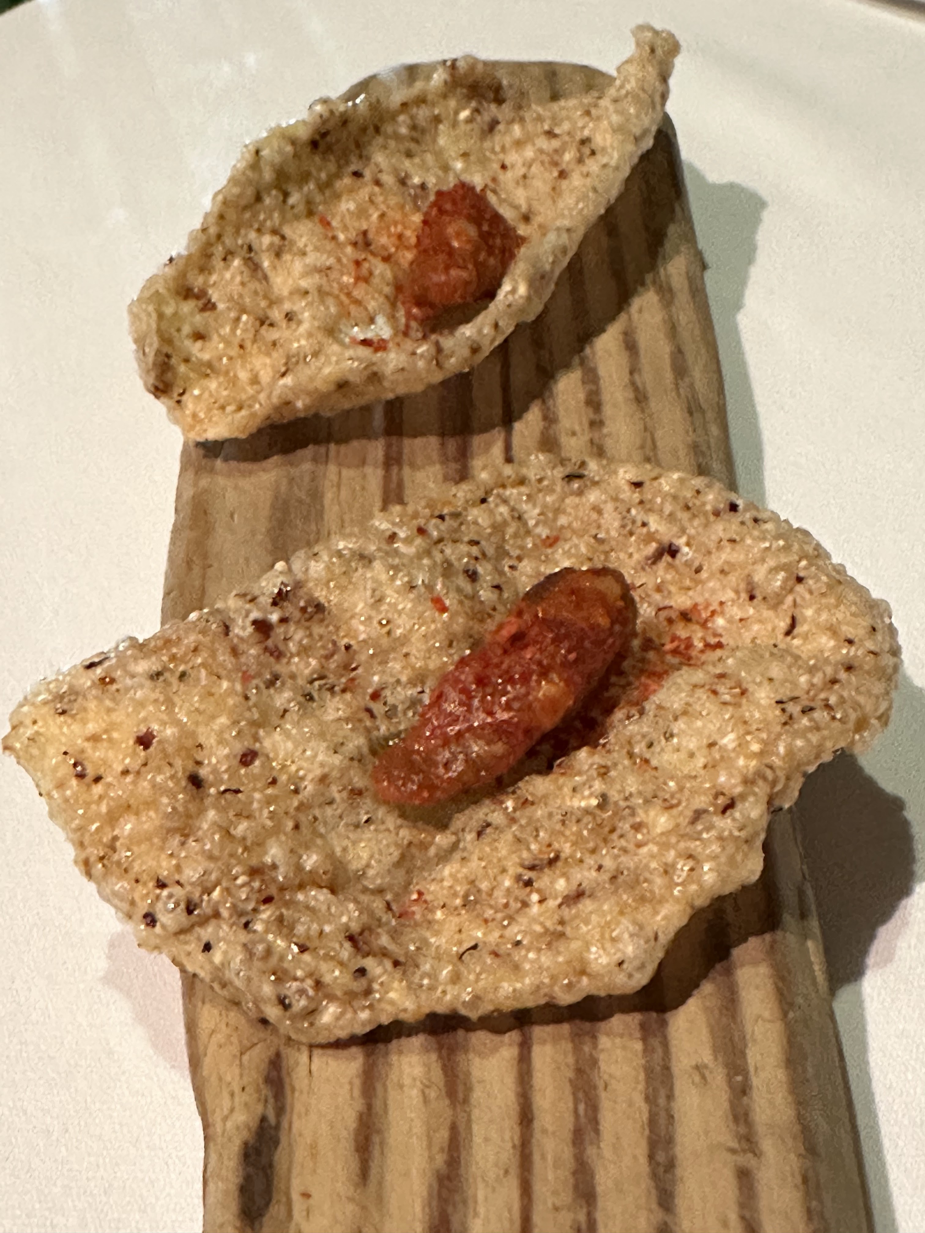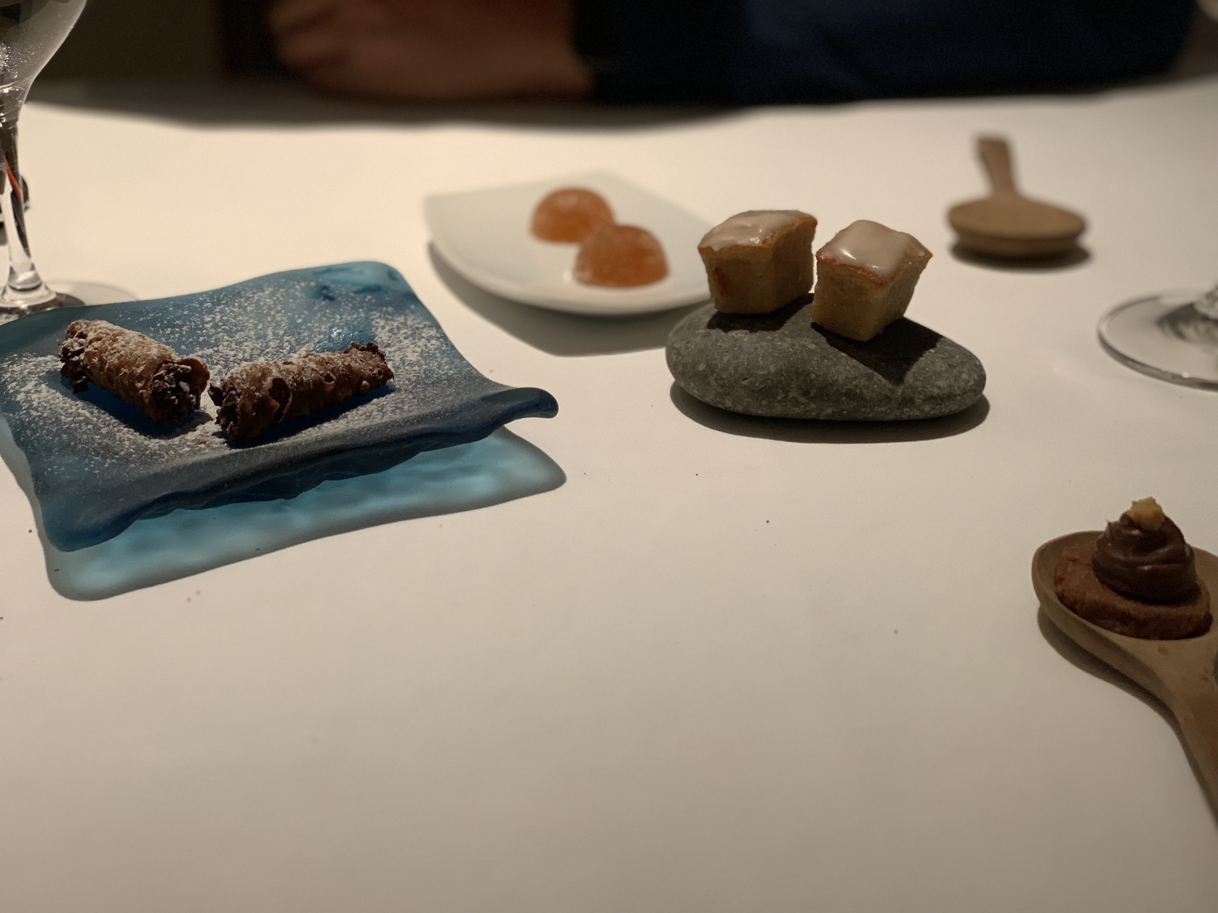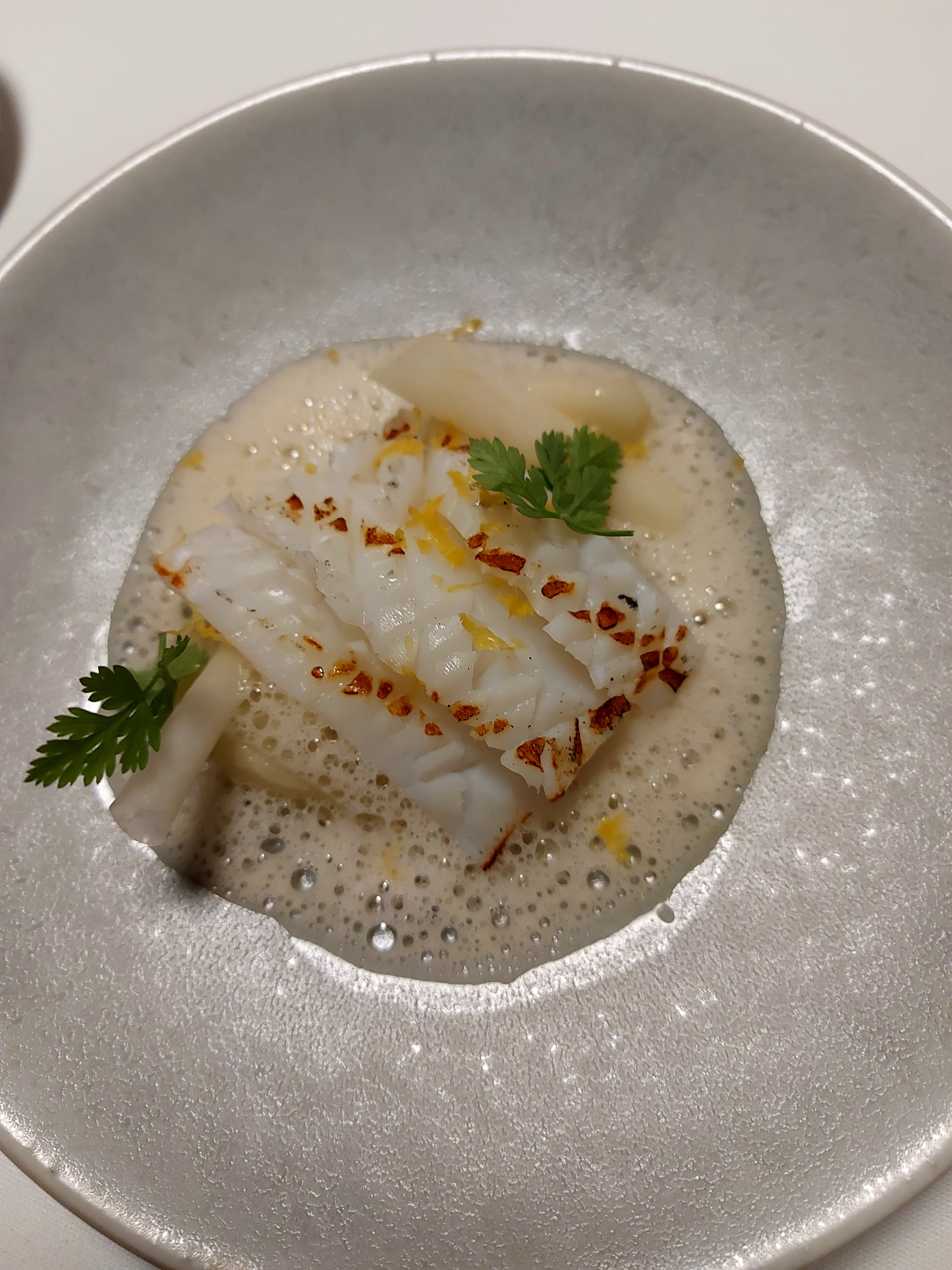 La cuisine est créative. Les associations sont imaginatives, les accords parfois osés : dé de pastèque et fromage de vache ; poulpe grillé, tomates et céleri ; louvine, melon, purée de pommes de terre, oignon fermenté. Les présentations permettent une belle lisibilité et une mise en valeur du produit principal de l'assiette. La particularité de cet établissement se centre donc autour de propositions assumées, aux reliefs étonnants, qui justifient l'escapade gastronomique et lui donnent sens. Les saveurs sont tour à tour surprenantes, parfois insolentes, mais le plaisir reste toujours le point nodal de l'expérience. C'est une gastronomie d'évasion, par moments percutante, qui a pu dérouter sur le dessert, où la pêche semble plus périphérique que centrale, sans que l'expérience de dépaysement gustatif en soit ternie. Le service est parfait, attentionné sans artifices, fluide sans être preste. L'expérience fut donc originale, moderne, permettant une parenthèse à la mesure des tarifs proposés. Les vins sont délicats et offrent un prolongement appréciable des ambitions de l'assiette. Essayez donc,, pour la surprise et l'originalité, pour vivre un moment gastronomique qui se remarque et restera en mémoire.