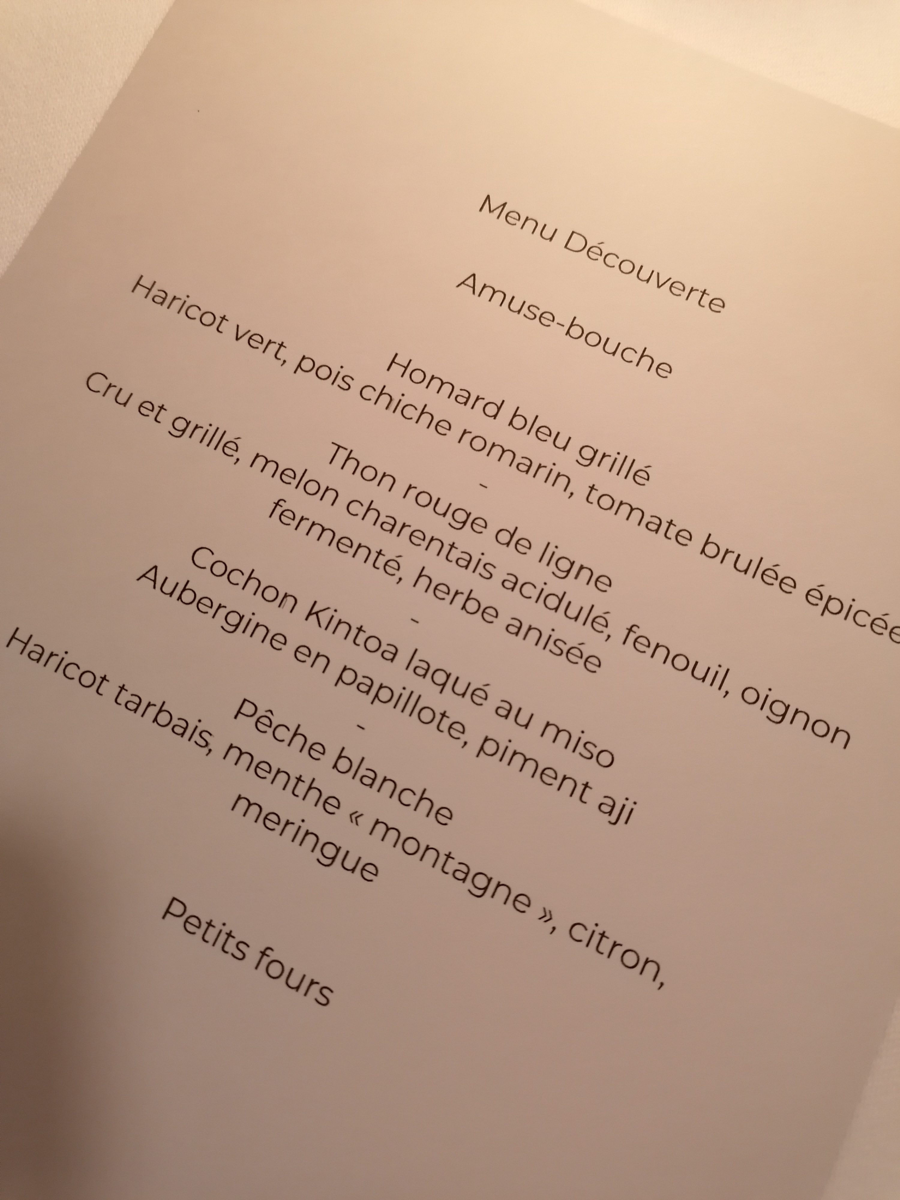 Très bon menu découverte : des produits excellents, des associations originales et beaucoup de surprises, nous avons été ravis de notre repas depuis l'amuse bouche jusqu'à la dernière mignardise ! Merci au chef et à son équipe pour ce bon et beau moment, nous reviendrons pour sûr !