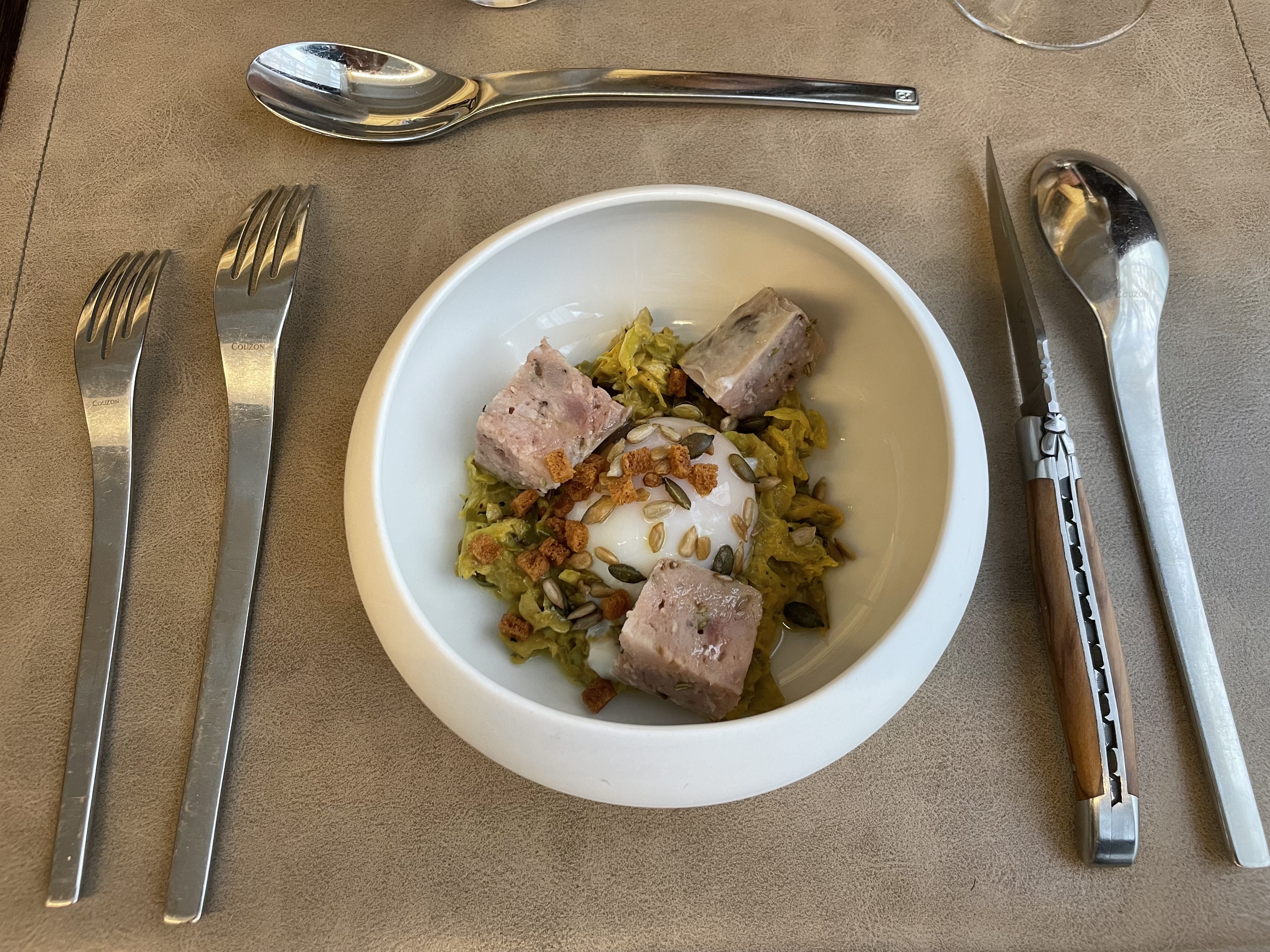 Un très bon moment, beaucoup de bienveillance, des plats surprenants, de beaux ingrédients de la région, beaucoup de goûts et de très bons conseils sur les vins !! un léger bémol sur la température des plats chauds (parfois tièdes) un gros plus pour le petit cadeau du vendredi soir pour le petit déjeuner du lendemain matin !! 😉