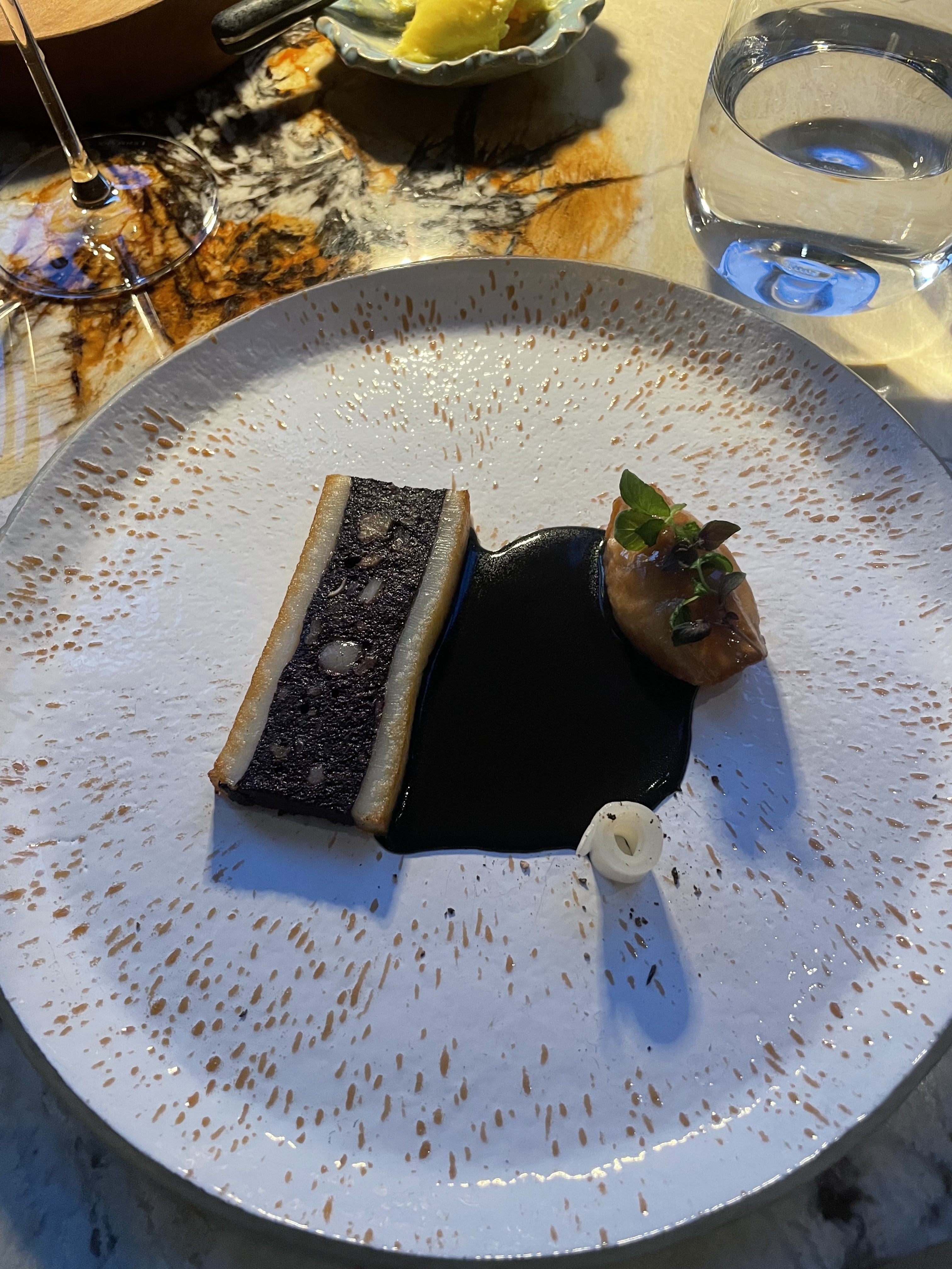Agréable soirée dans ce domaine récemment rénové. La décoration du restaurant est sympa même si les plantes sont un peu trop présentes à mon goût et les suspensions un peu en deçà…du reste de la déco.. L’ambiance cosy, un petit fond musical pourrait être sympa. Tables, assises , vaisselle très bien. Concernant les menus on est sur des prix d’un étoilé même si ce n’est pas le cas pour le moment. Mises en bouches (mitigé) Le plat a base d’araignée très bien Le boudin et pomme, bien avec une très bonne sauce,mais sans grande surprise. Le pigeon très bon et très bien cuit, toutefois la sauce manquait de peps et l’accompagnement très juste… Pré dessert très bien Dessert très bon mais assez simple. Petite remarque, pour un des vins pris au verre qui nous a été servi sans nous le faire goûter (Mais qui était bon). Service pro et très sympa…