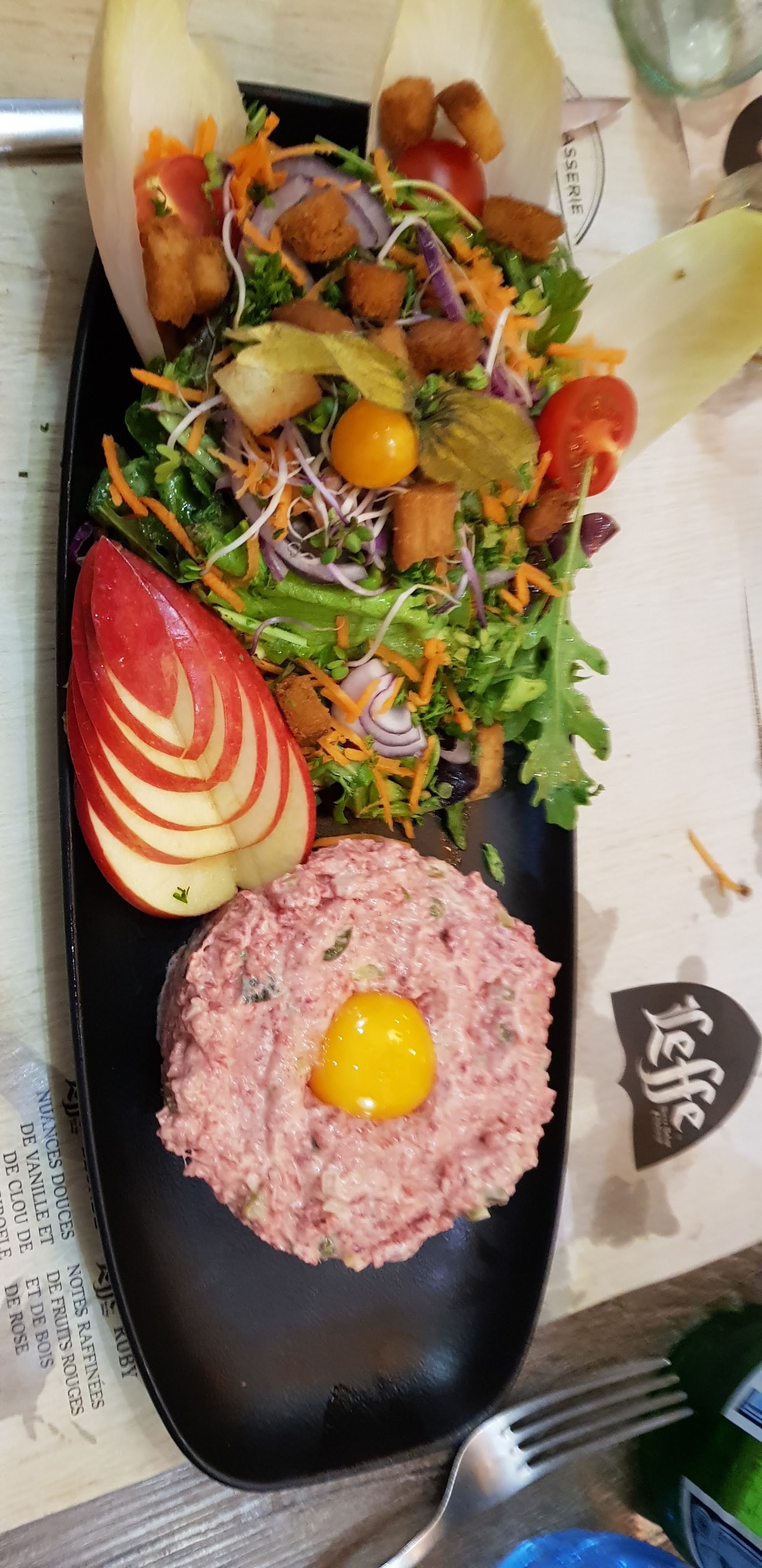 Excellent ! Plat très bon, bien présenté. De plus, original : Tartare avec des quartiers de pomme. Délicieux ! Personnel dynamique et sympathique ! Au top !