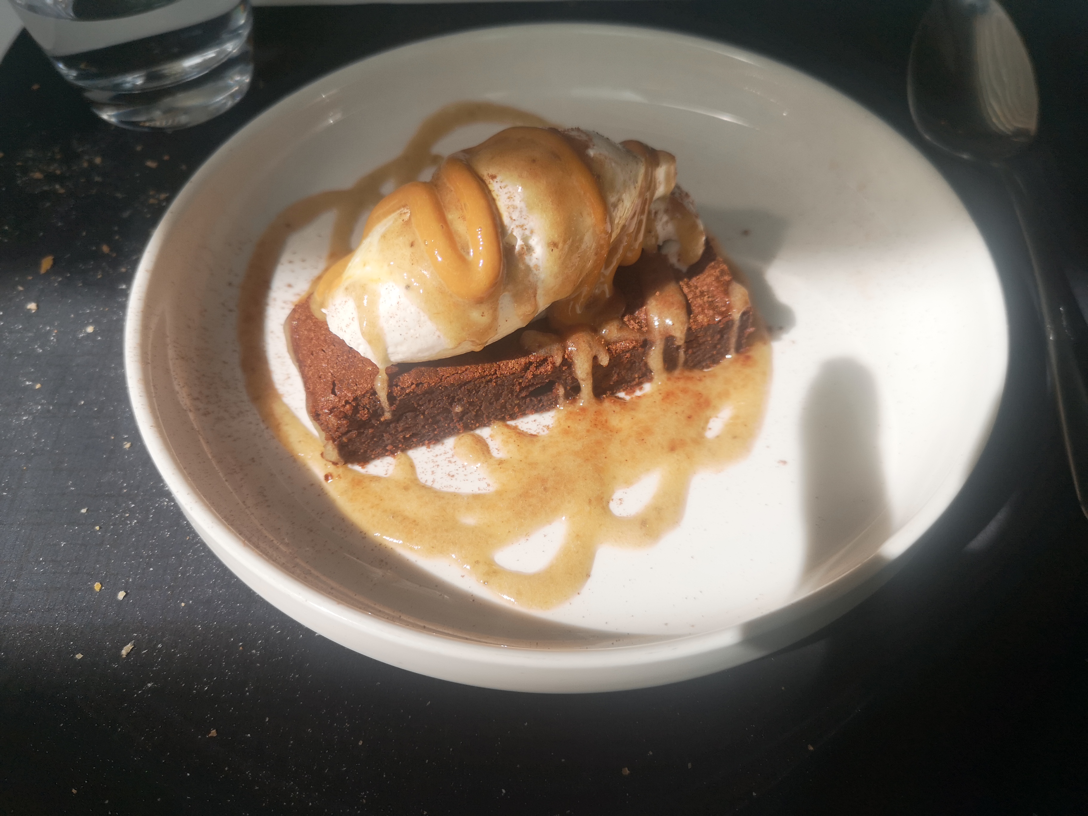 C'est vraiment pas fou. Je peux faire aussi bien à la maison sans être cuisto. Le seul avantage c'est qu'il n'y a pas de vaisselle à faire... Mais vu le prix, je préfère lancer mon lave-vaisselle 😂. Je sais que c'est la crise mais un rôti de porc avec de la purée, c'est limite... De plus, ça manque en quantité ; j'avais encore faim en sortant. Cela dit, le dessert était maigre mais très bon (fondant au chocolat).