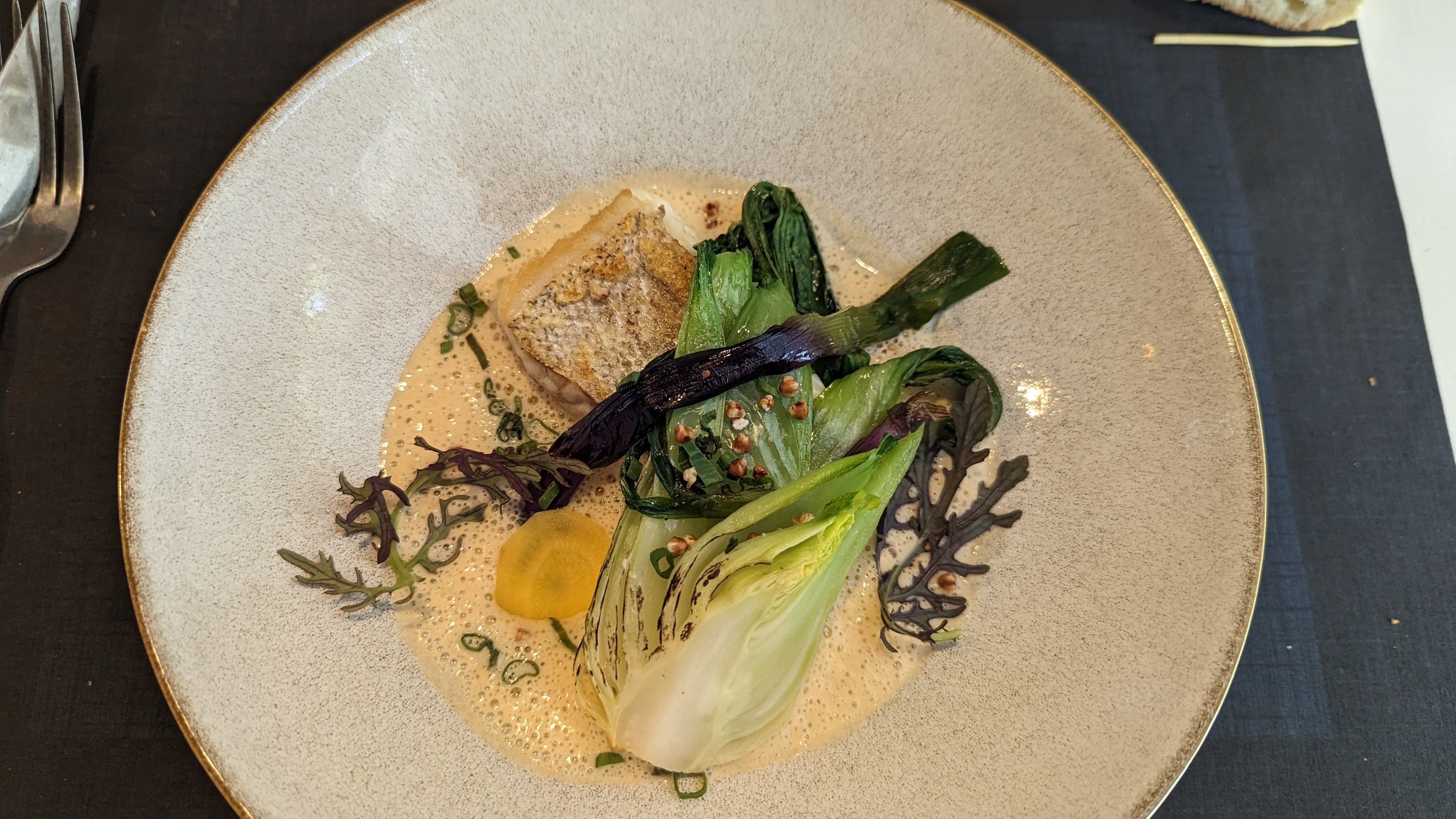 Encore de très belles découvertes ce soir. Le maigre est cuisiné avec raffinement. Le dessert au thé est juste divin. Beau visuel. Régal en bouche. Personnel très agréable, à l'écoute des clients. Continuez ainsi !