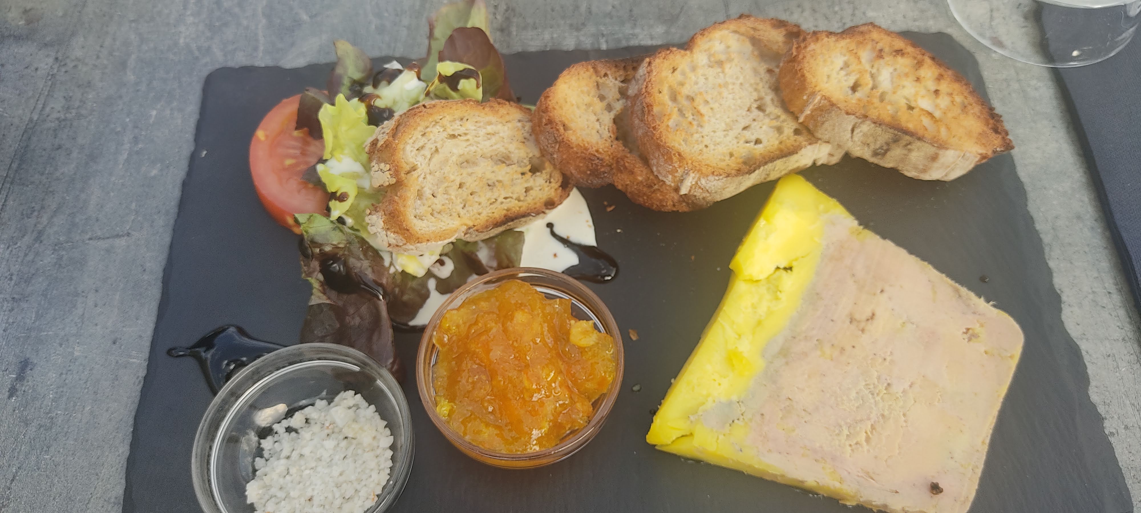 Très bon et copieux. Du fait maison et produits frais. Le foie gras est excellent (par contre il se déguste plus avec du poivre goûtu qu'avec du sel et de la confiture). La cuisson de la souris d'agneau était parfaite ainsi que sa sauce au thym. Généralement on fait un seul type de tiramisu car plus simple et rapide, ici c'est un trio de tiramisu qui montre bien la passion de cuisiner et de ne pas faire dans le basique. Service rapide et attentionné. Prix correcte par rapport à la qualité. Conseillé le midi à l'emporter.