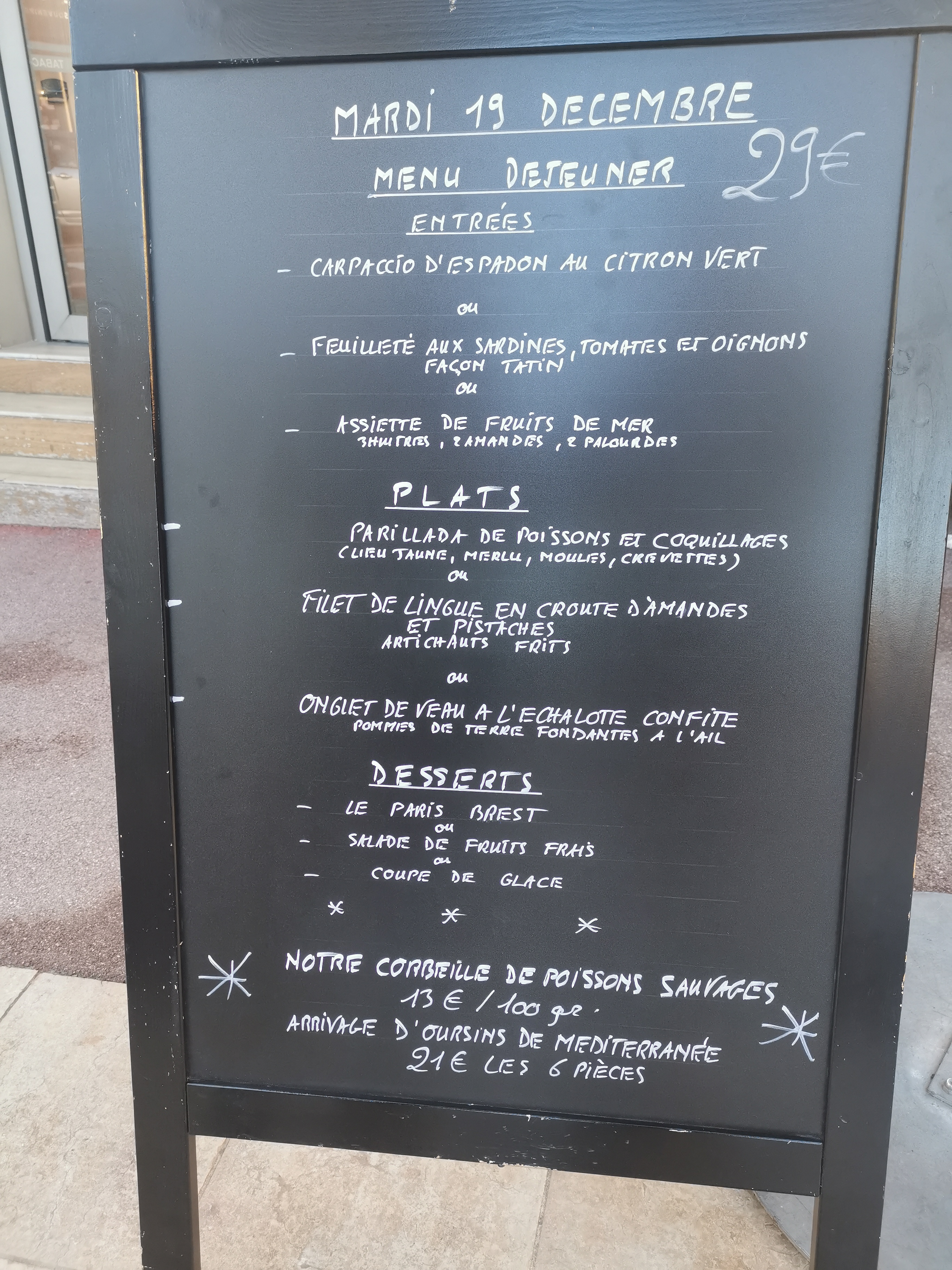 Un menu du jour très agréable et un prix correct. Le bruit de la route est un dommage pour un cadre charmant et avec la brise de mer qui aide. A visiter