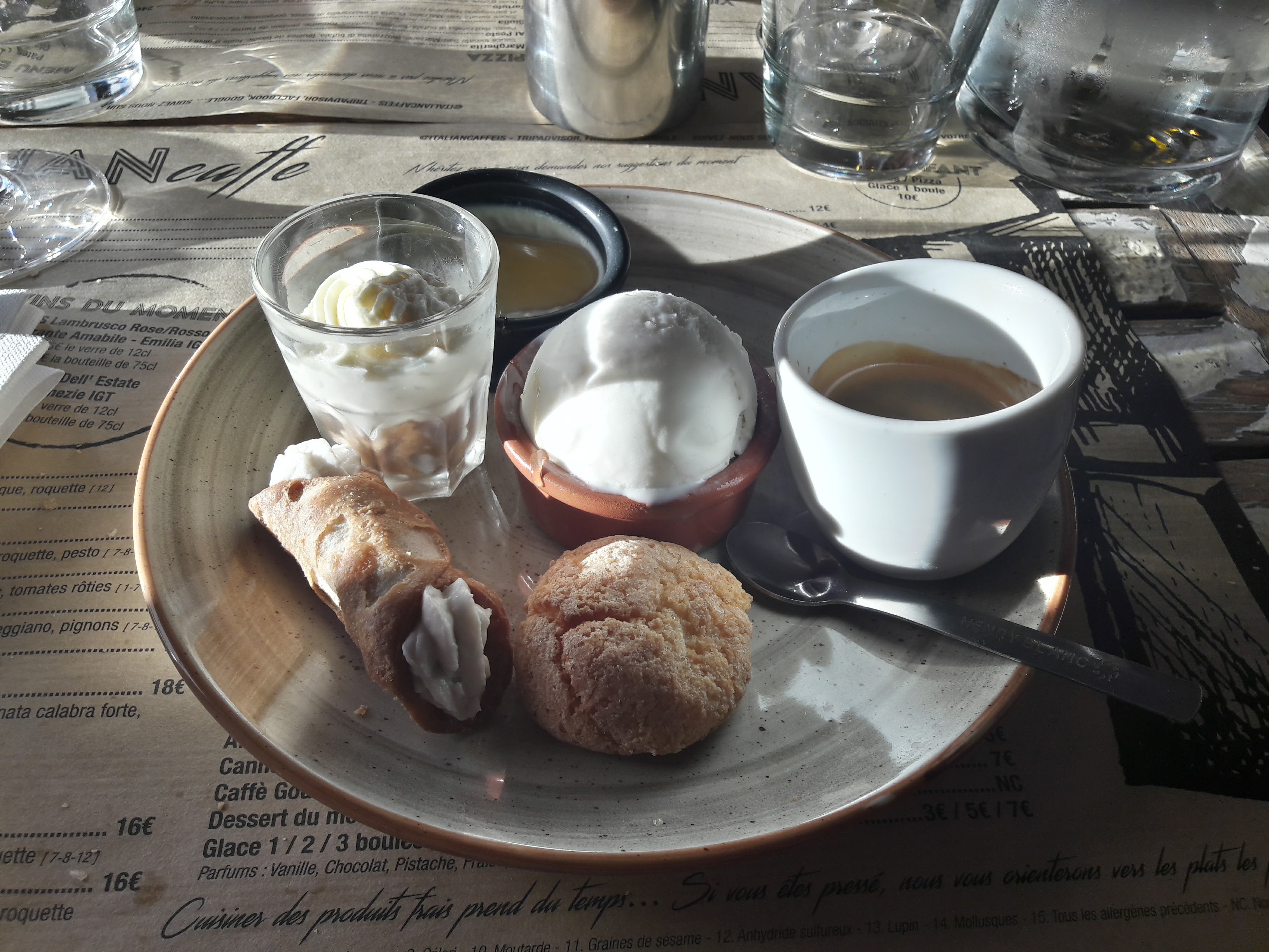 Nous avons choisi l'Italian Caffè car nous avons été attiré par l'originalité de la carte, et nous n'avons pas été déçu ! Nous avons extrêmement bien mangé : plats copieux et délicieux ; le service était extra : Audrey ne nous a pas seulement expliqué la carte, elle nous l'a raconté ; et nous sommes repartis avec des produits d'épicerie :) Nous vous recommandons ce restaurant les yeux fermés !