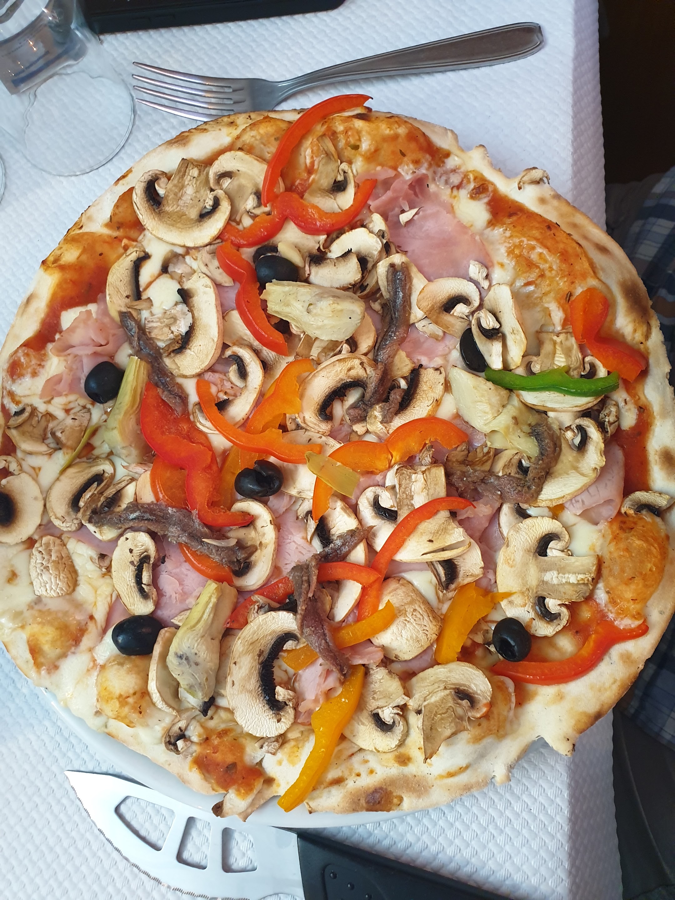 Une pâte à pizza au top. Des assiettes trop petites surtout si vous prenez les grandes pizzas. Un service au top avec Christine. Et un chef toujours aussi sympa avec ses clients comme avec son personnel. Merci.