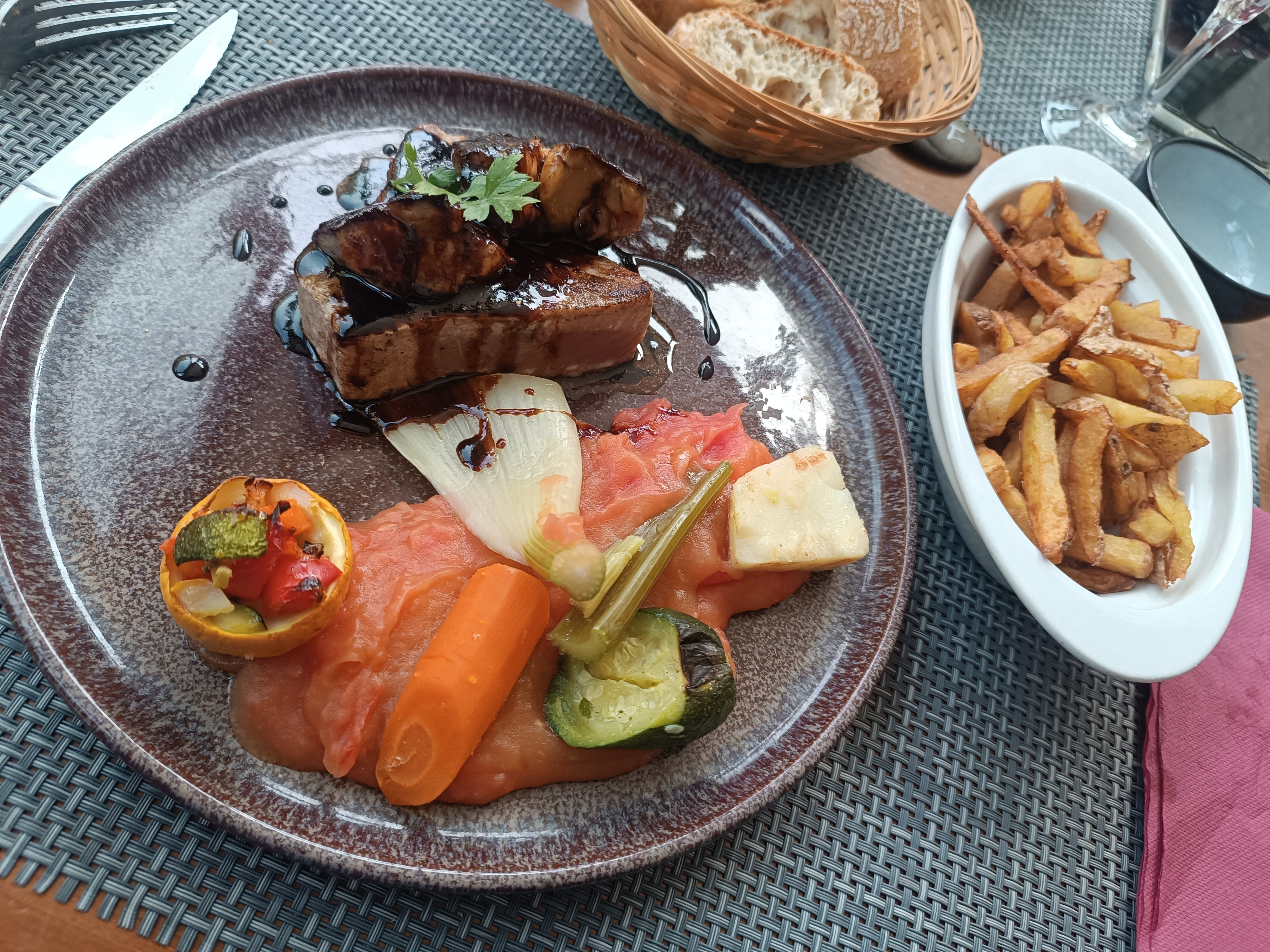 Une cuisine triste , et fade ...une pseudo purée pommes de terre betterave.. élastique.. ni goût ni grâce . dommage une ardoise alléchante .. mais cela s'arrête là !