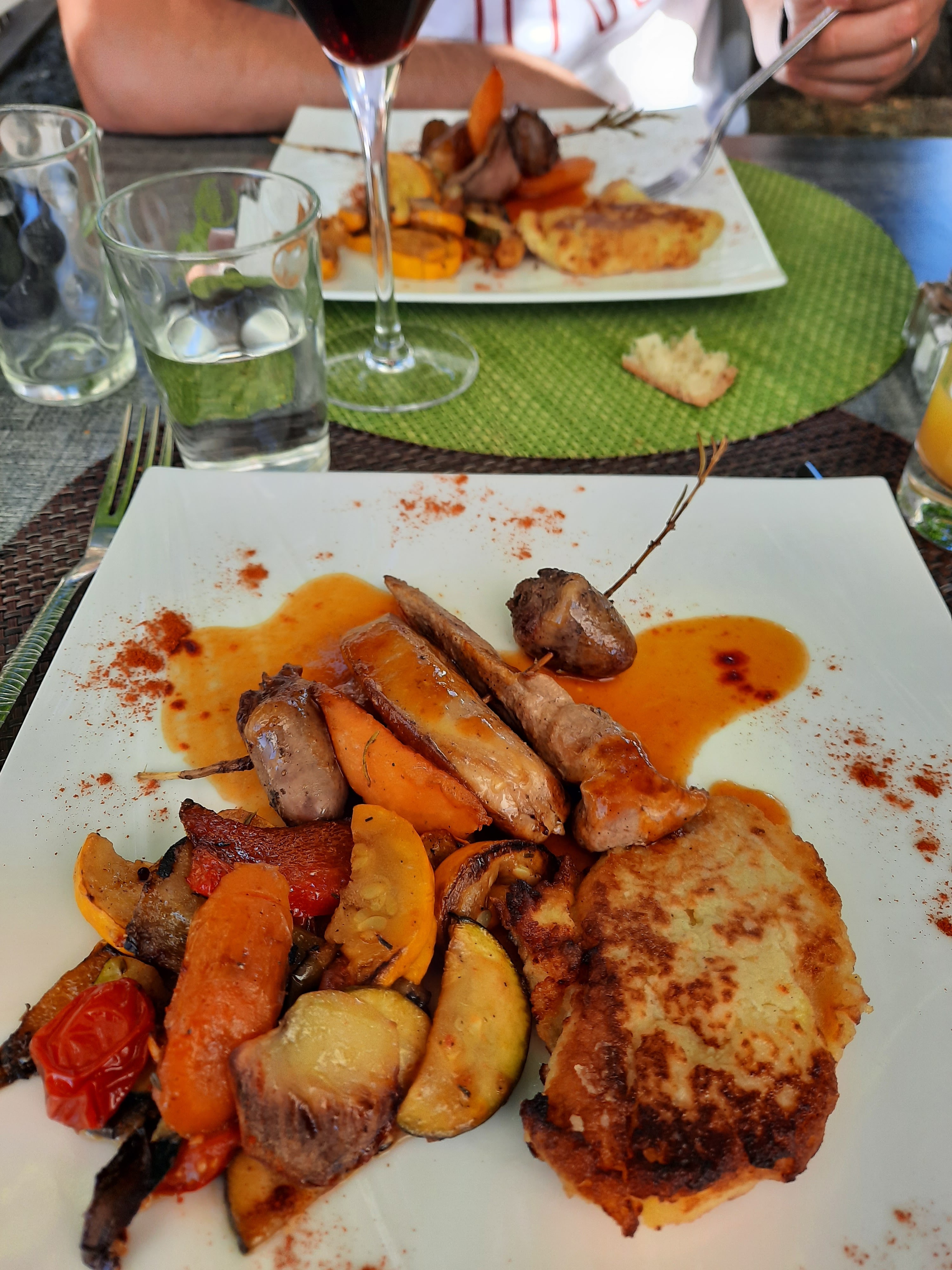 Cuisine excellente avec une belle présentation repas à l ombre des arbres très apprécié