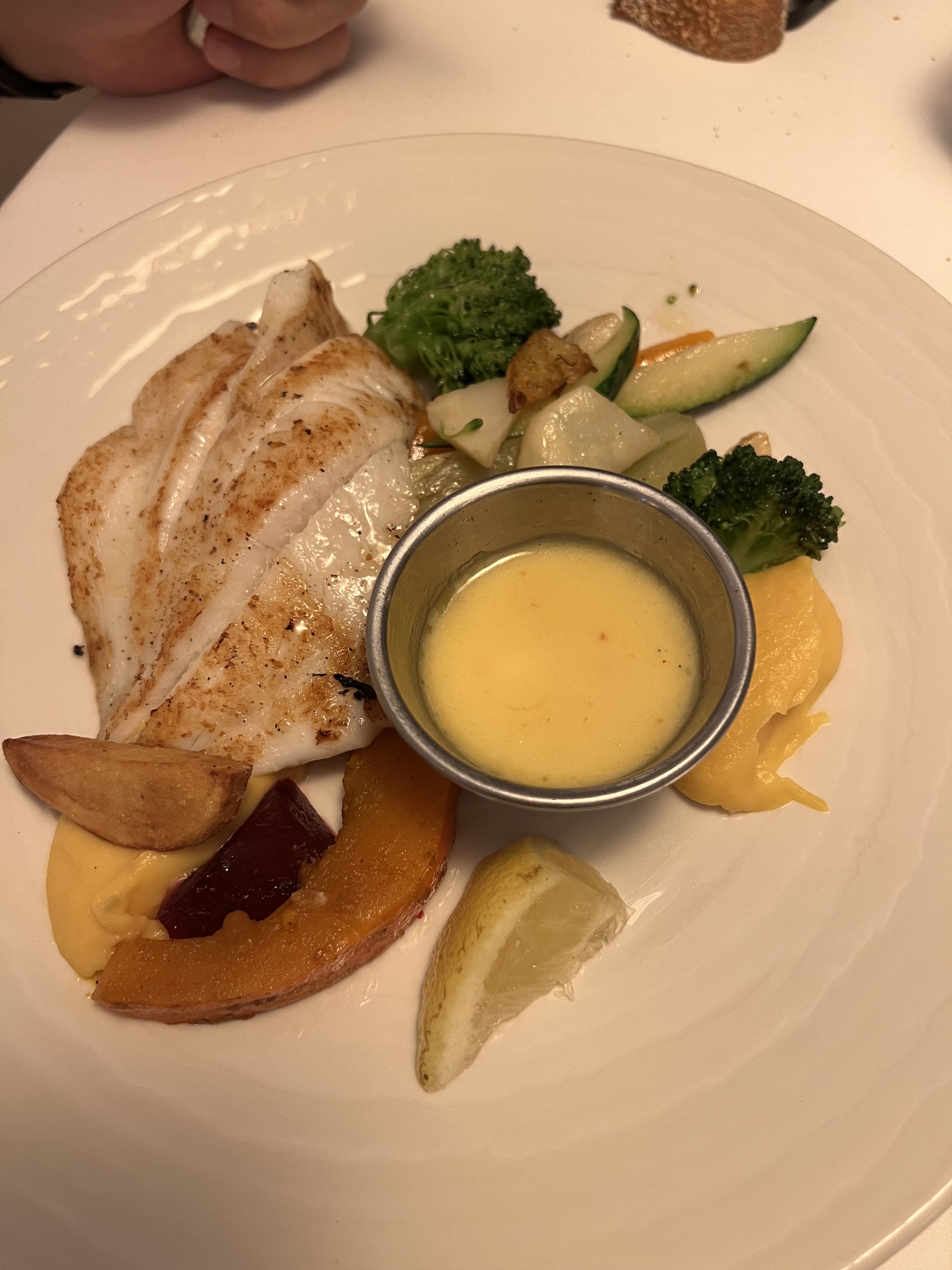 Plats excellent tout en finesse et très goûteux. Accompagnement de petits légumes frais délicieux. Le service est irréprochable avec un personnel très pro et à l’écoute. Nous avons passé un très bon moment