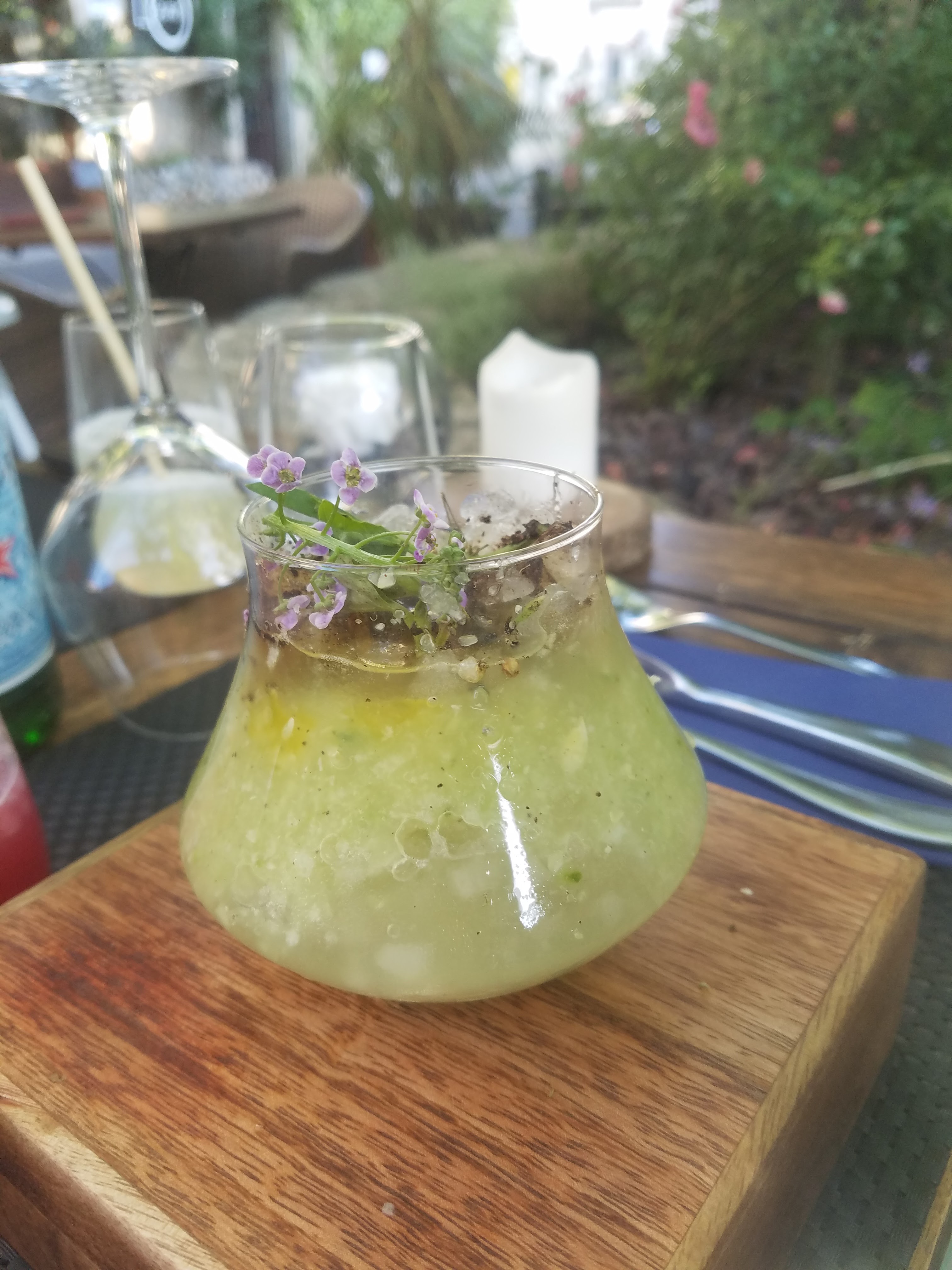 Découverte inattendue d un lieu sympathique, d un cadre unique sous l ormeau, d un accueil et service formidables, avec surtout les plats raffinés pleins de saveurs inconnues et délicieuses avec une présentation originale NOUS AVONS eu la visite de la Cheffe Precillia que nous avons complimentee. Nous retournerons. Poursuivez votre passion.
