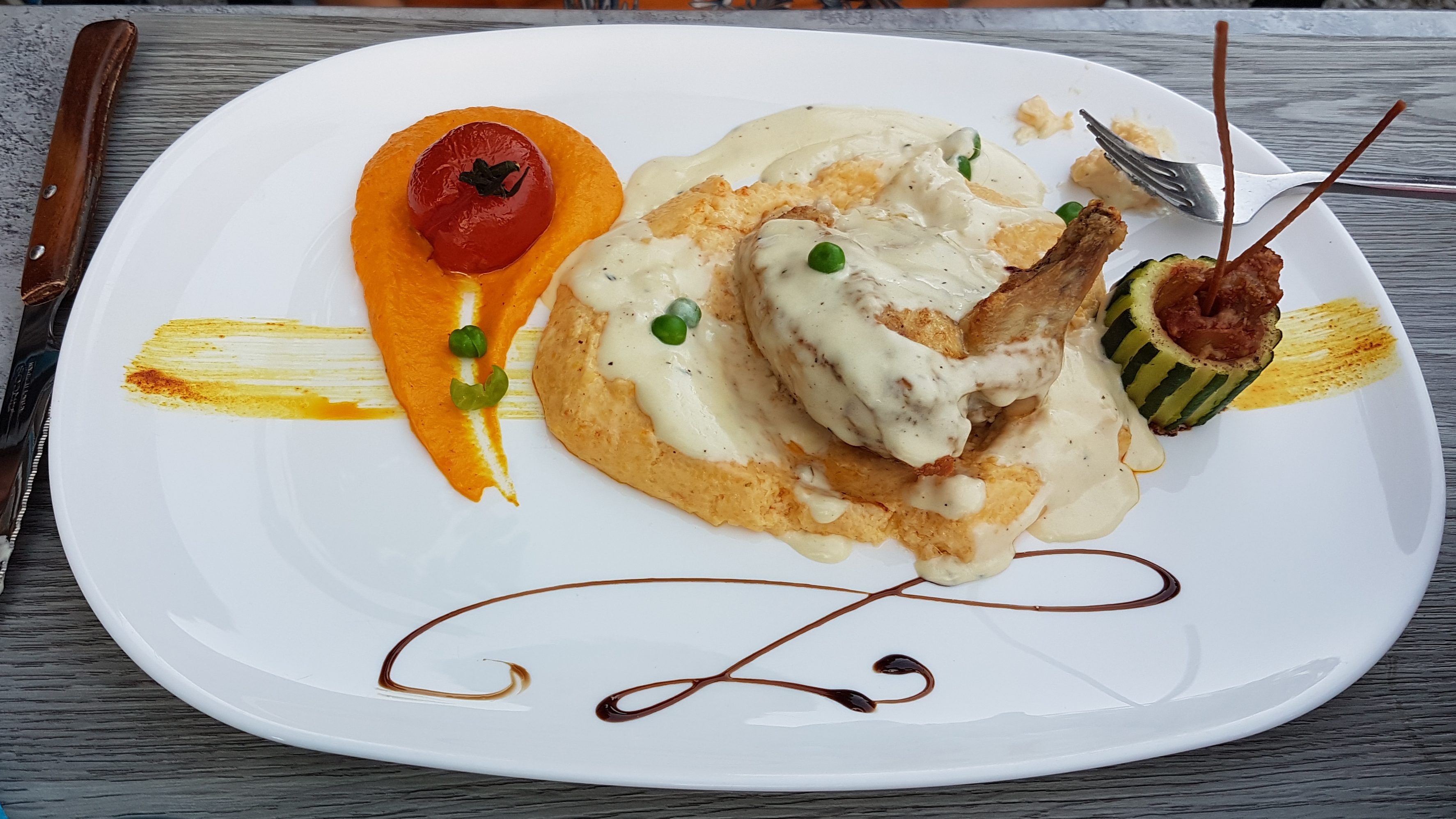 Excellente cuisine traditionnelle, déjeuner servi sur la petite terrasse dominant le jardin...très belle décoration assiette, serveur très sympa et efficace 👍