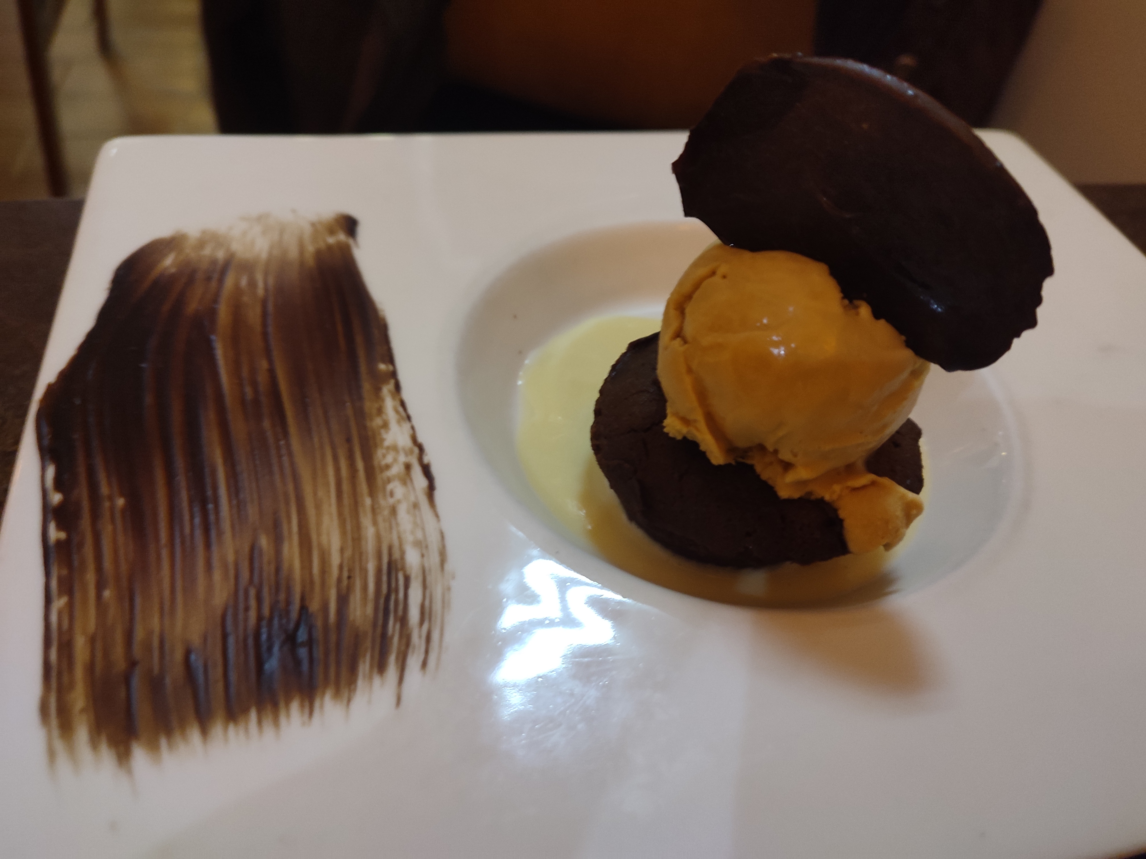 Nous avons mangé sur une petite table sur la place, le service était rapide, agréable, et les plats très bons ! Mention spéciale au dessert ! Nous avons trouvé assez bizarre les avis très négatifs, nous avons failli passer notre chemin après les avoir lus, mais heureusement nous avons tenté, et n'avons pas été déçus !