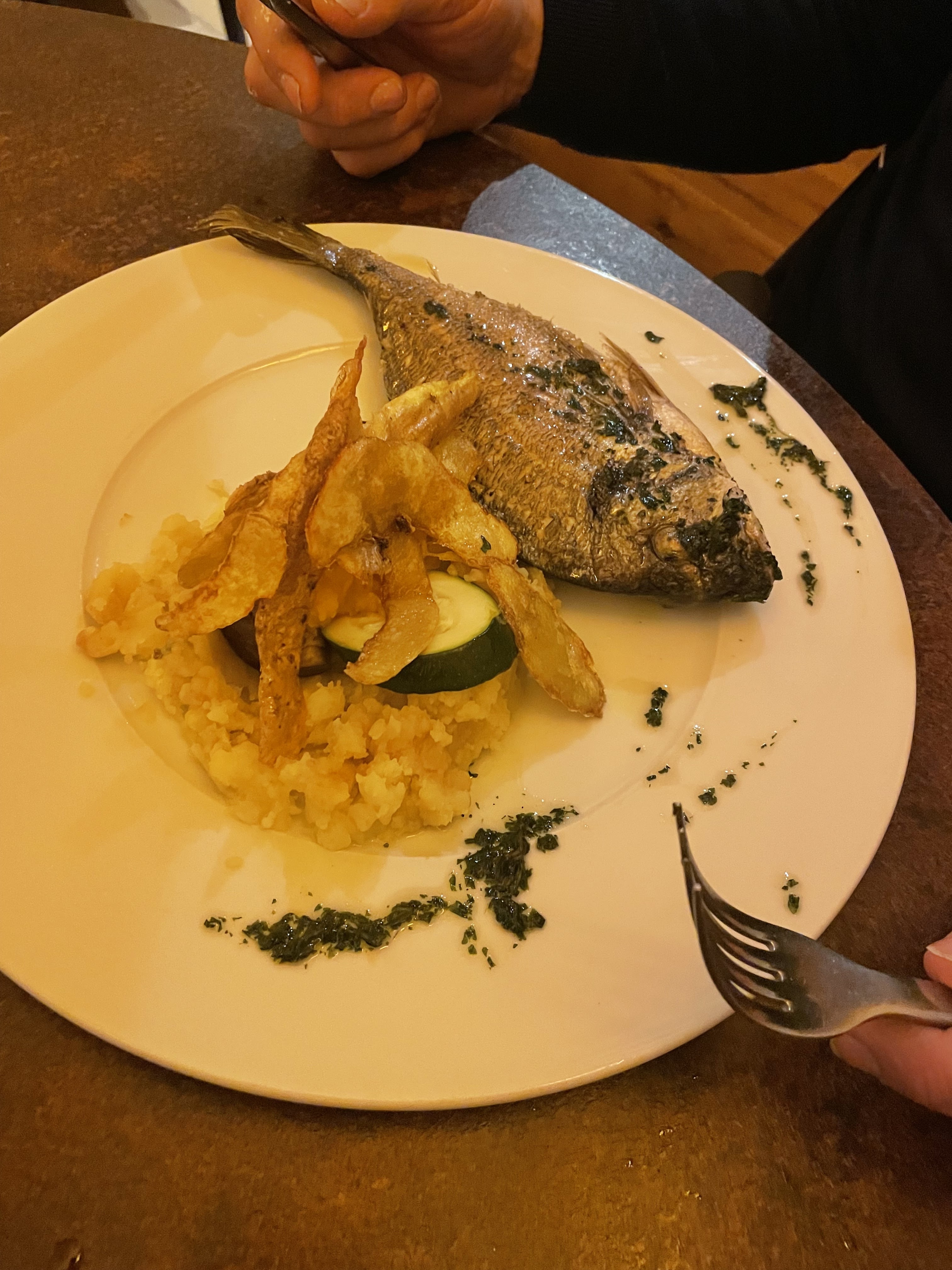 Avis mitigé sur la cuisine de ce restaurant mais le personnel est très sympathique. L’entrée nous a enchantée, ce ne fut pas le cas du plat. Le veau était accompagné de pâtes en proportion dérisoire et la dorade d’une purée qui baignait dans l’huile. Les desserts ont bien rattrapé le tout.