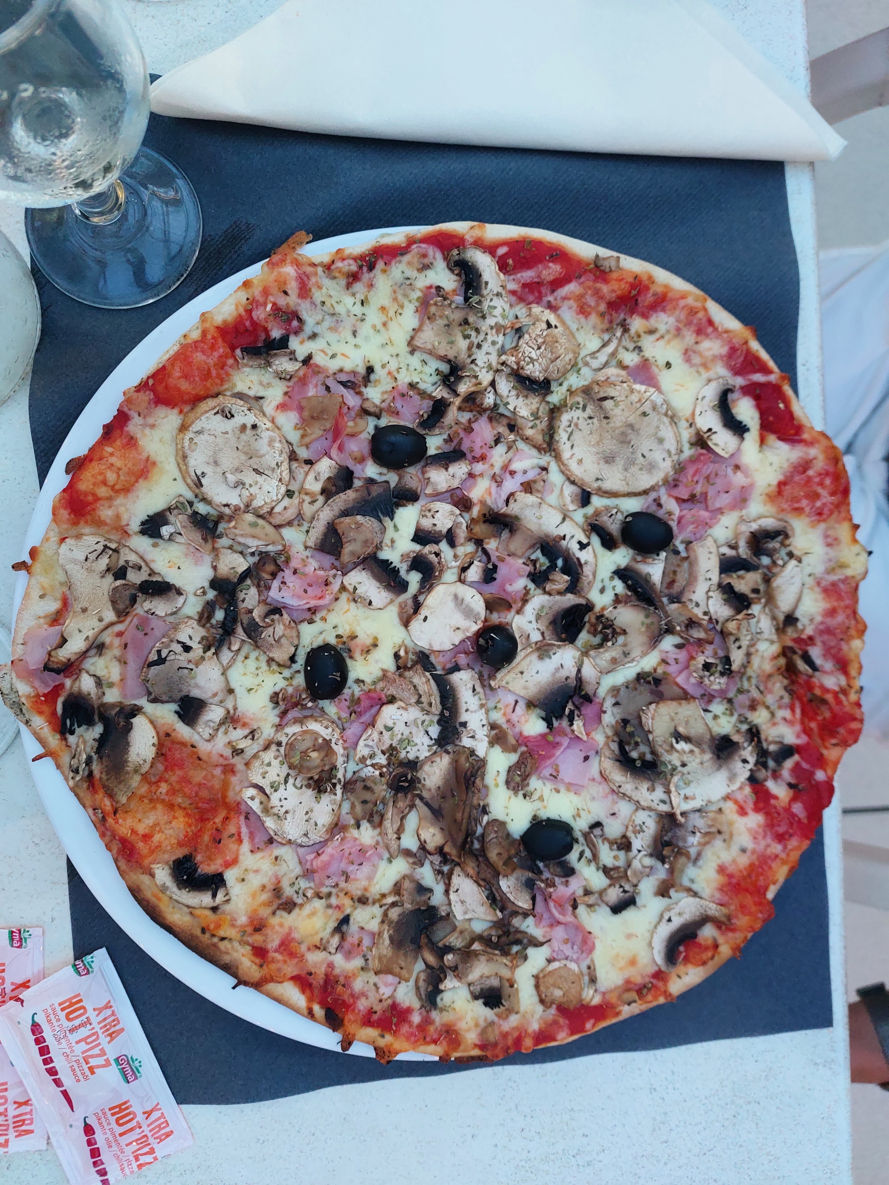 Délicieuse pizza très bien garnie - base fine, bord croustillant - absolument recommandée !