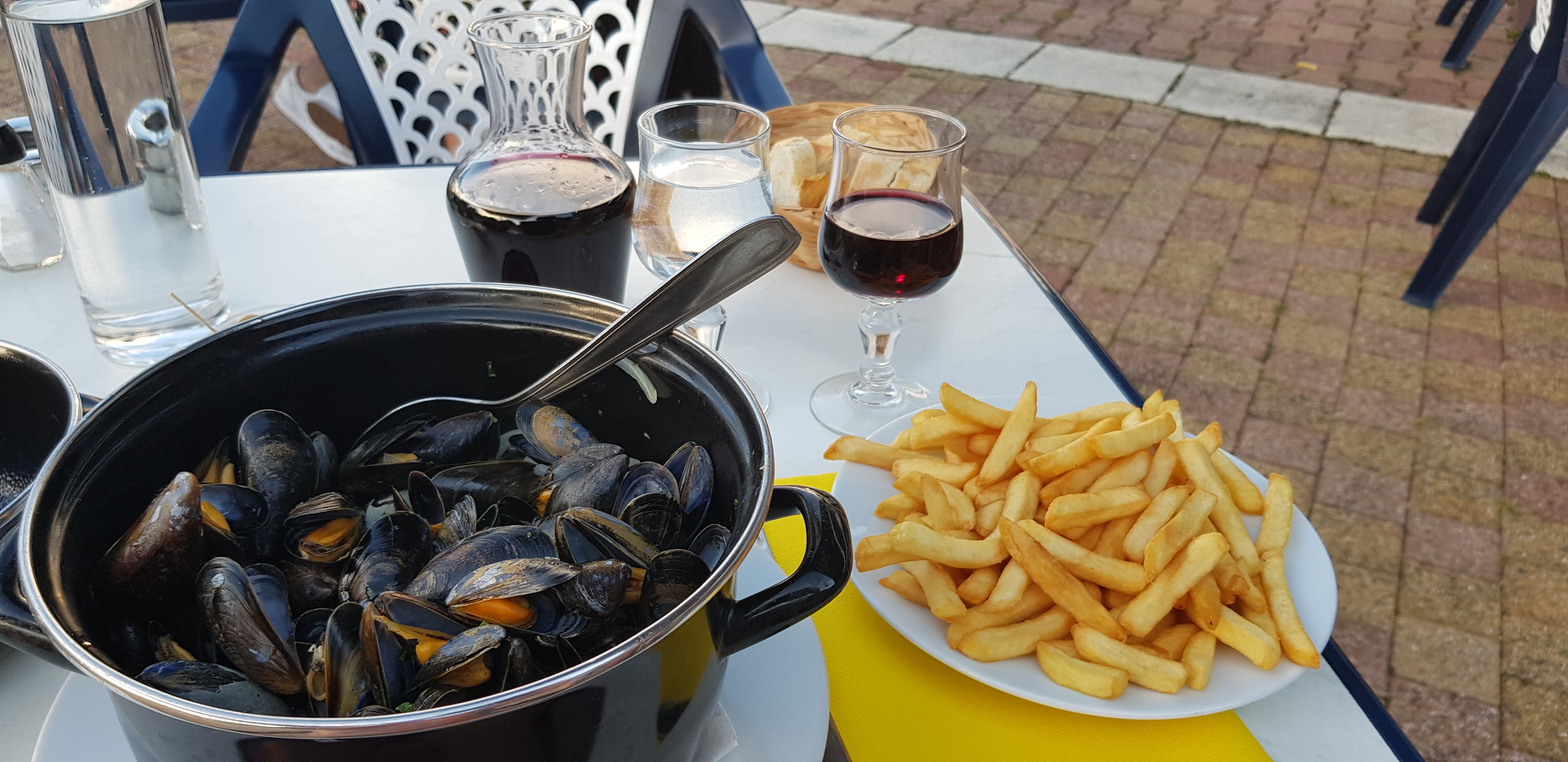 Plats servis en même temps que l'apéritif, du sable dans les moules marinières, une demi pizza qui part à la poubelle alors qu'on devait l'emporter, bavettes à l'échalote minuscules avec échalotes crues... Bref pas terrible.