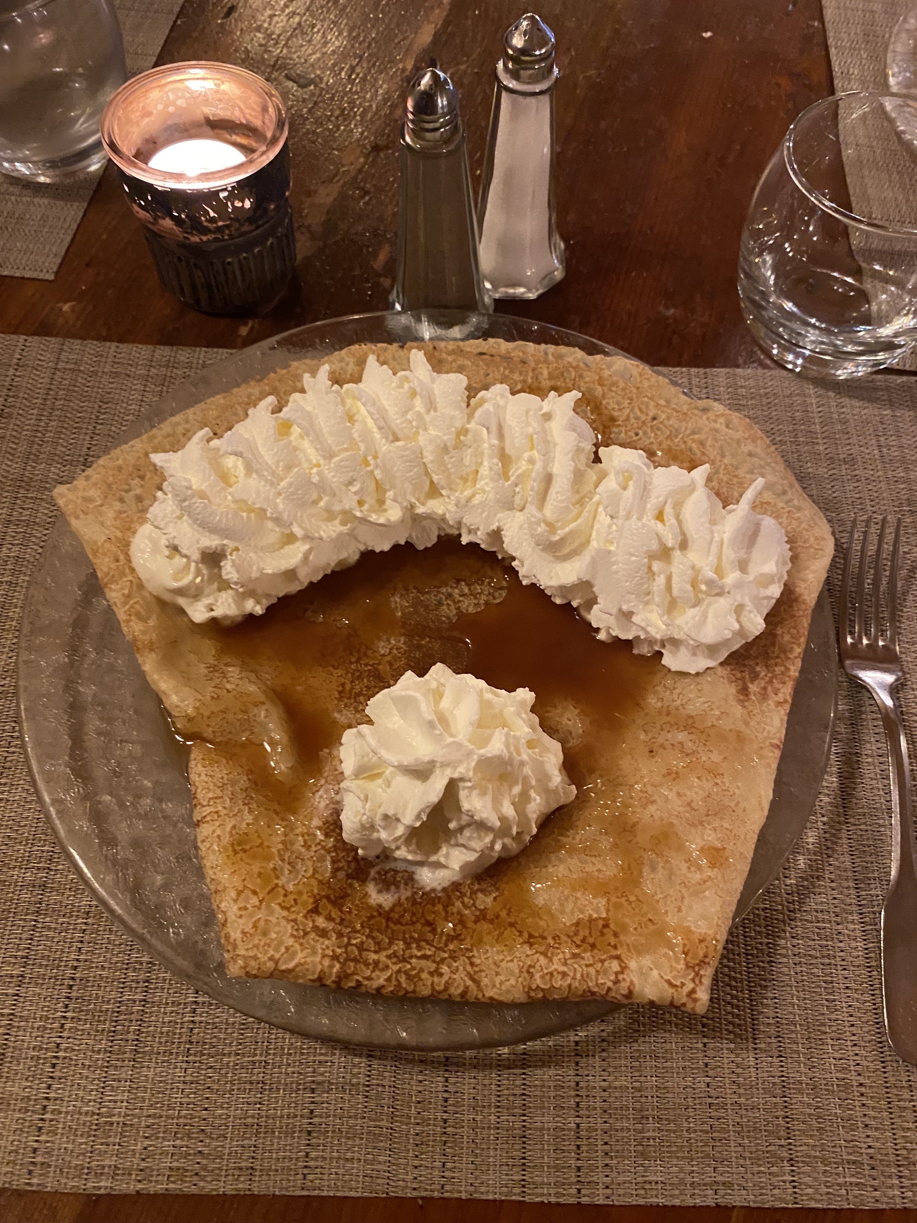 Restauration que je recommande, cuisine Généreuse, avec tout ça service sympathique . nous avons pri la potence un vrai régal ,puis une crêpe sucré chantilly et crêpe flambée ,Excellente également. Nous avons passé une agréable soirée, nous reviendrons.