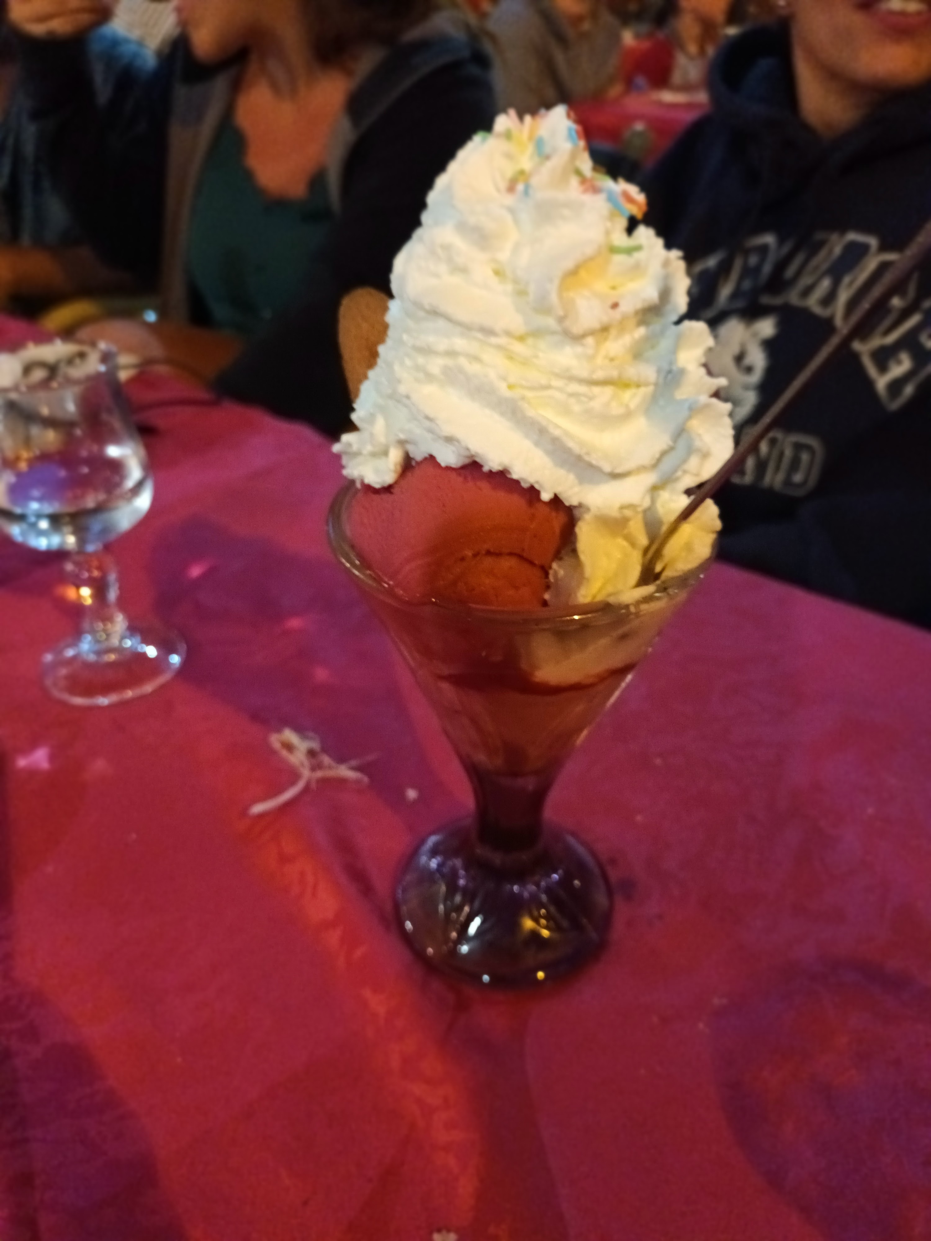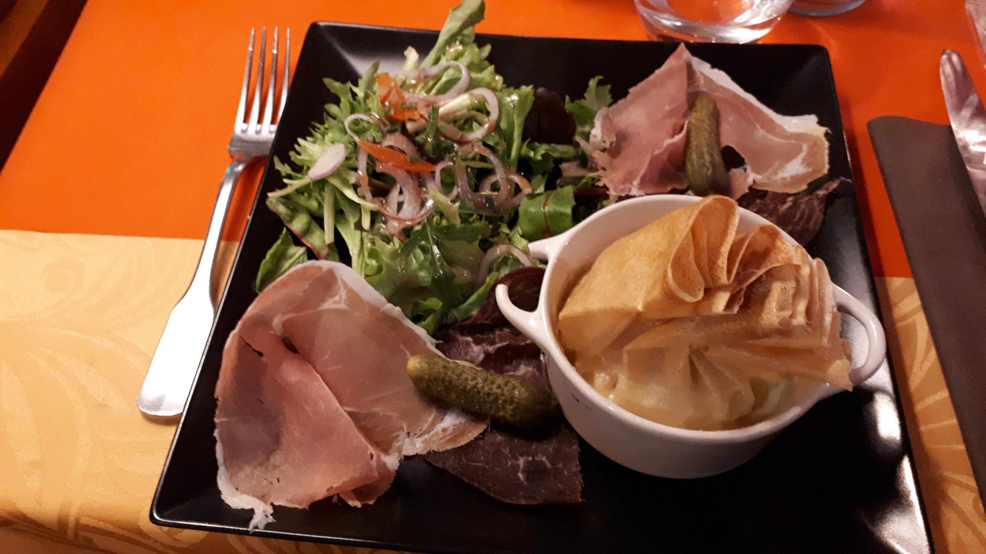Nous y sommes allés 2 fois . Une première avec une fondue , un peu décevante niveau goût assez acide 2 ème fois j'ai pris un st Marcellin aux amandes et on me vend une salade copieuse type repas et je me retrouve avec une aumônière de st Marcellin, un peu de salade verte à côté et 3 tranches de jambon cru. Je n'appelle pas cela une salade et franchement très déçue. Nous ne sommes pas certains d'y retourner lors de notre prochain séjour.