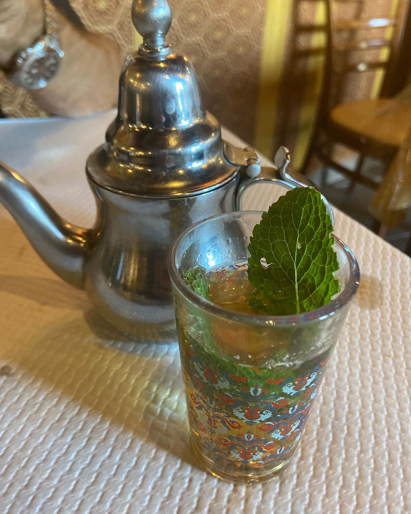 Super restaurant on se croirait au maroc ambiance vaisselle décoration et la cuisine un régal nous recommandons à 100%