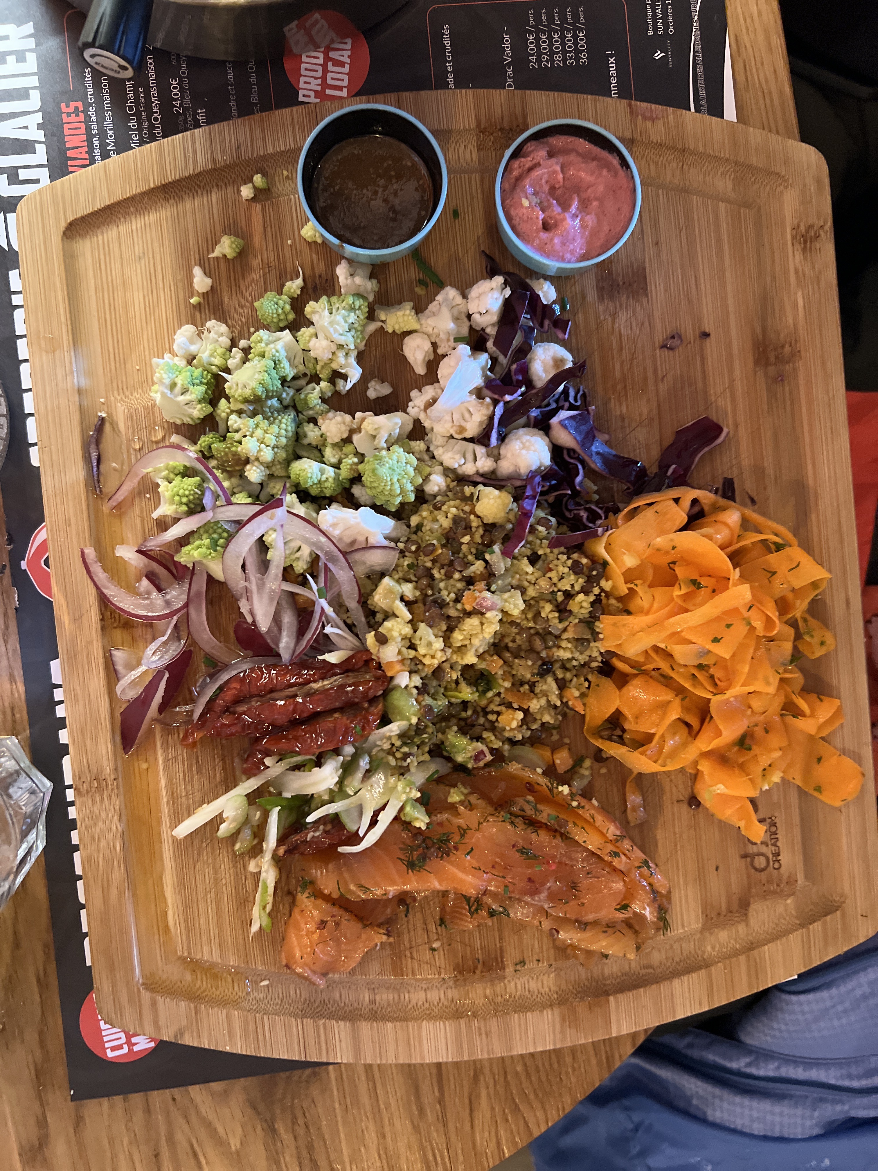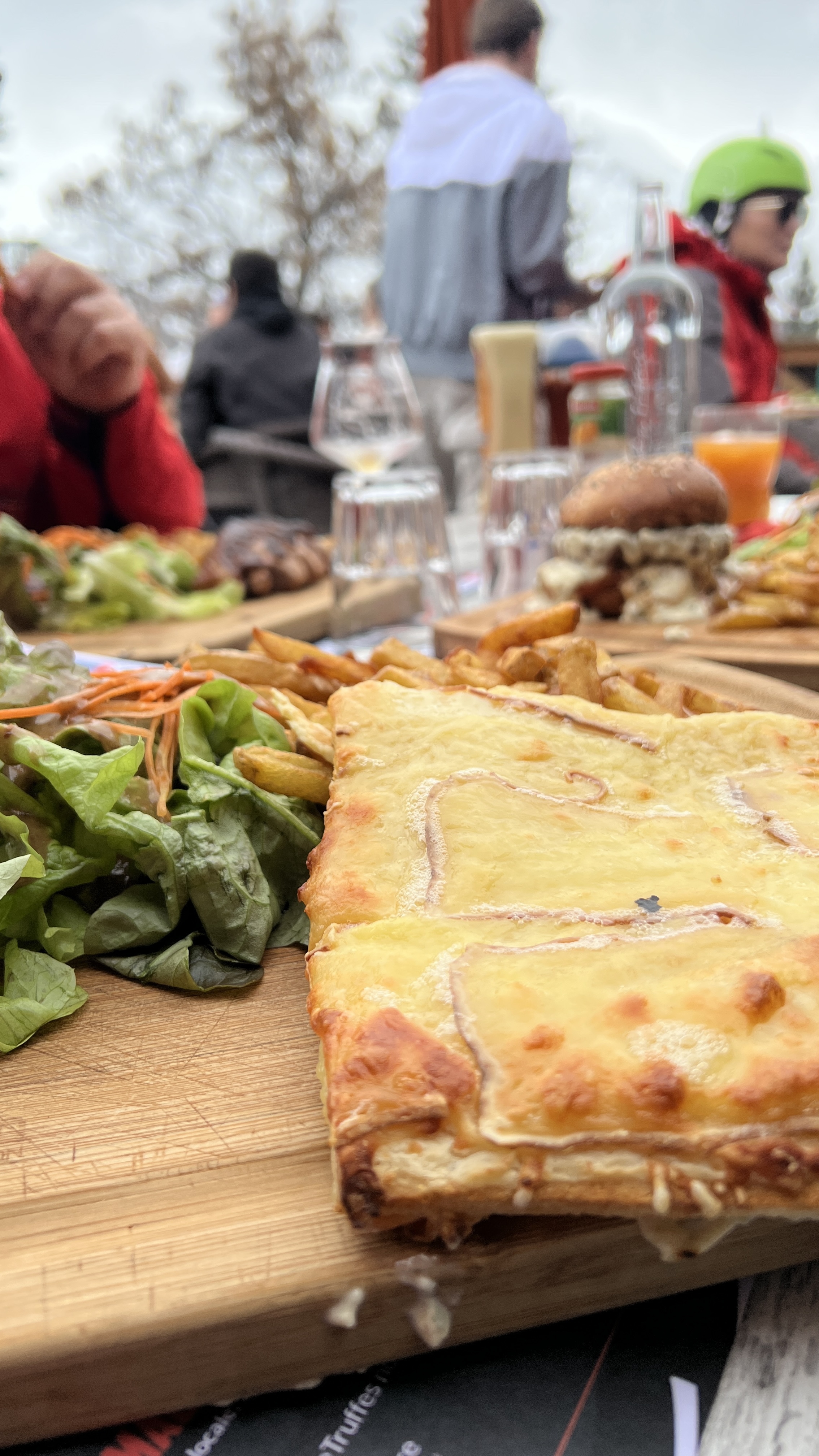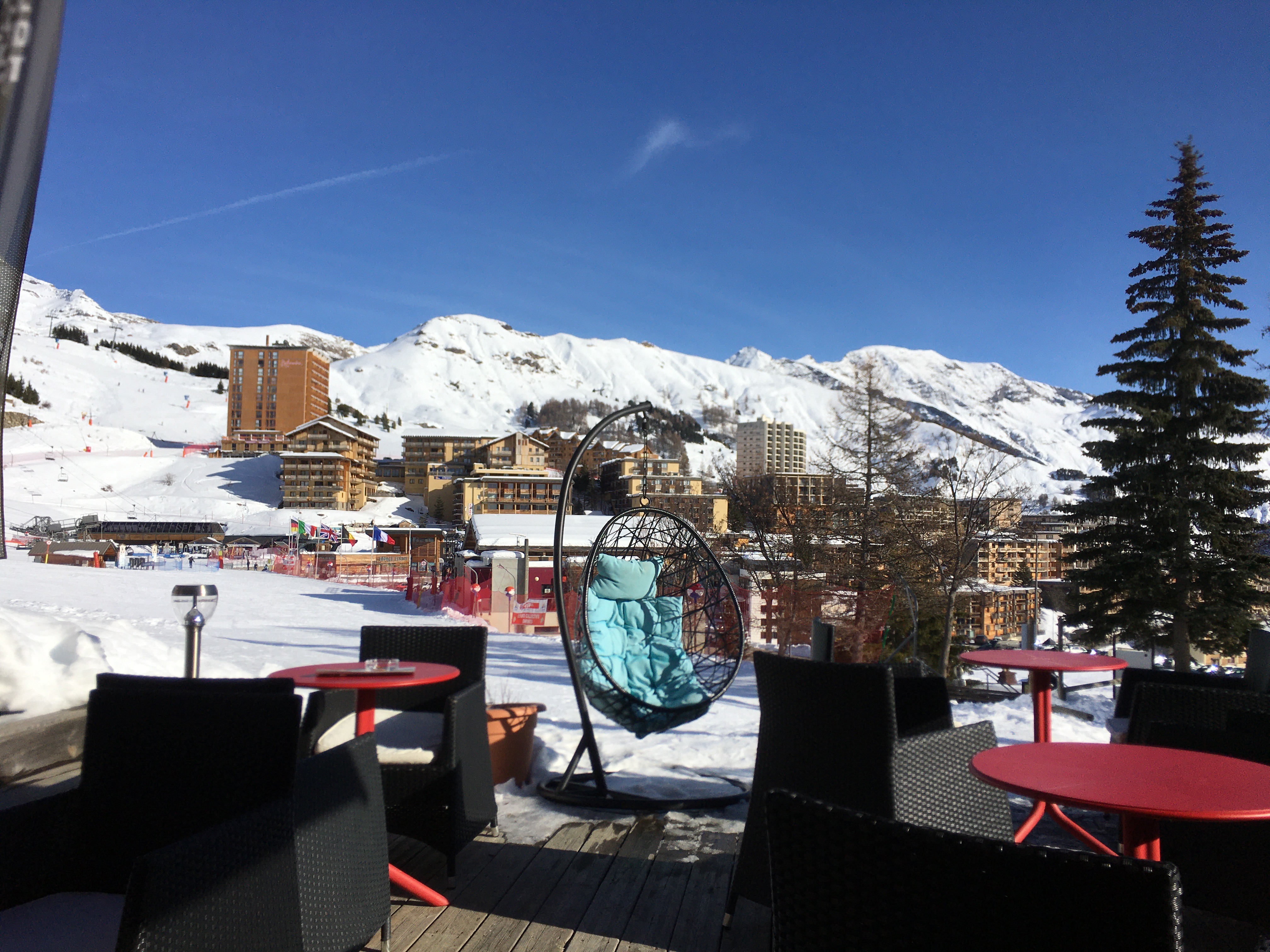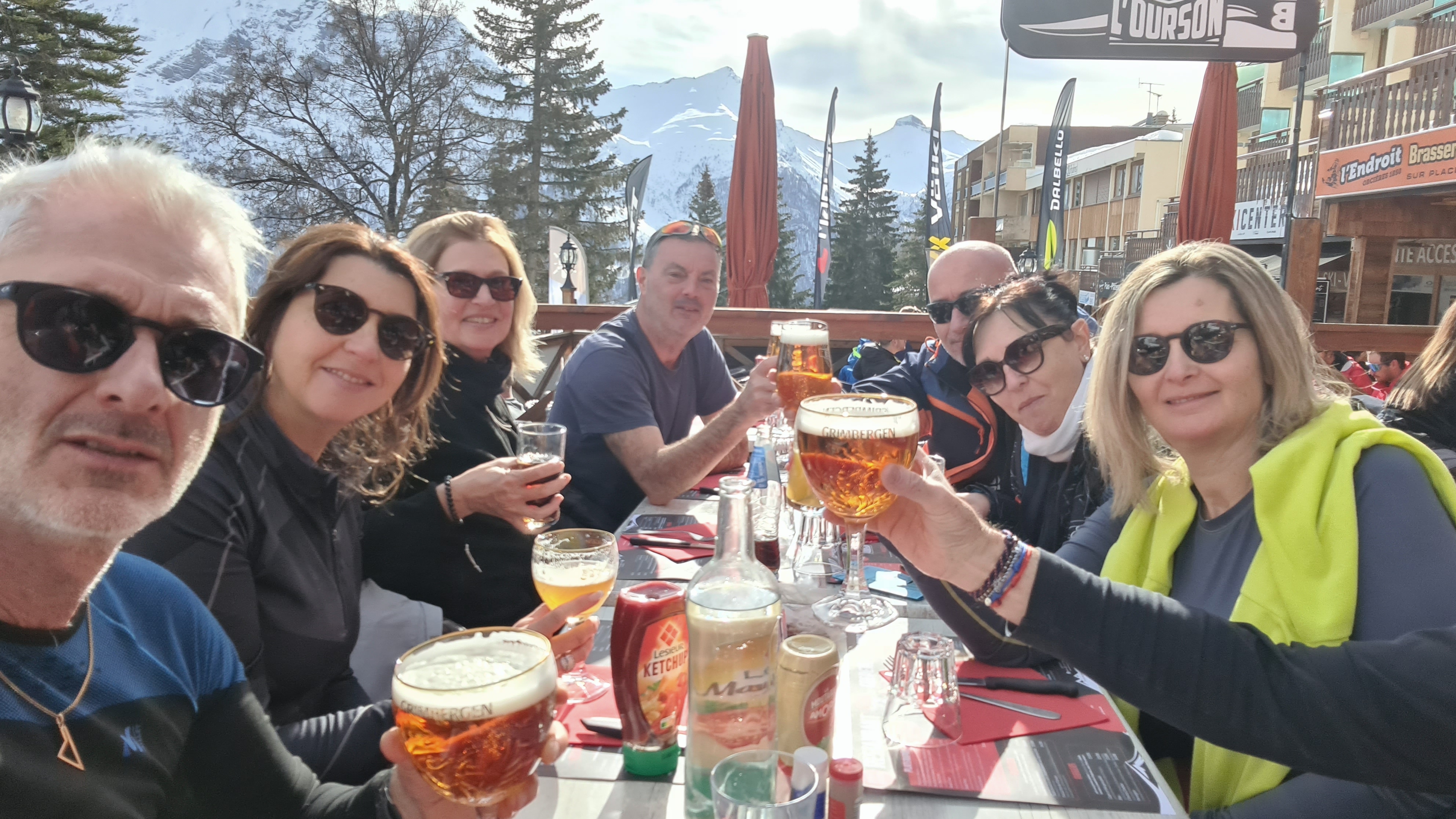 12h05 : « on t’attends à l’Ourson ! » Encore ivre de la veille, je me dirige vers l’ESF pensant qu’on allait me remettre un ourson après mon double cork back flip. Que nenni, c’est une belle terrasse ensoleillée qui m’attendant pour m’enfiler en 10s la meilleure pinte de mon séjour ! Les plats sont très bons, variés ; on nous annonce que le personnel est en sous effectif… AÏE ! Je me dis que la neige aura fondu entre l’entrée et le dessert mais à en juger par les performances des cuissots/serveurs…on est littéralement sur une terrasse de super héros ! Tant par l’efficience que la jovialité, chaque repas était attendu avec hâte. Un énorme merci à Cédric qui par sa bonne humeur, son humour, repartie nous aura fait passer d’excellents moments durant notre séjour ;) L’ourson mérite au moins 5 étoiles si ce n’est une belle flèche d’or !