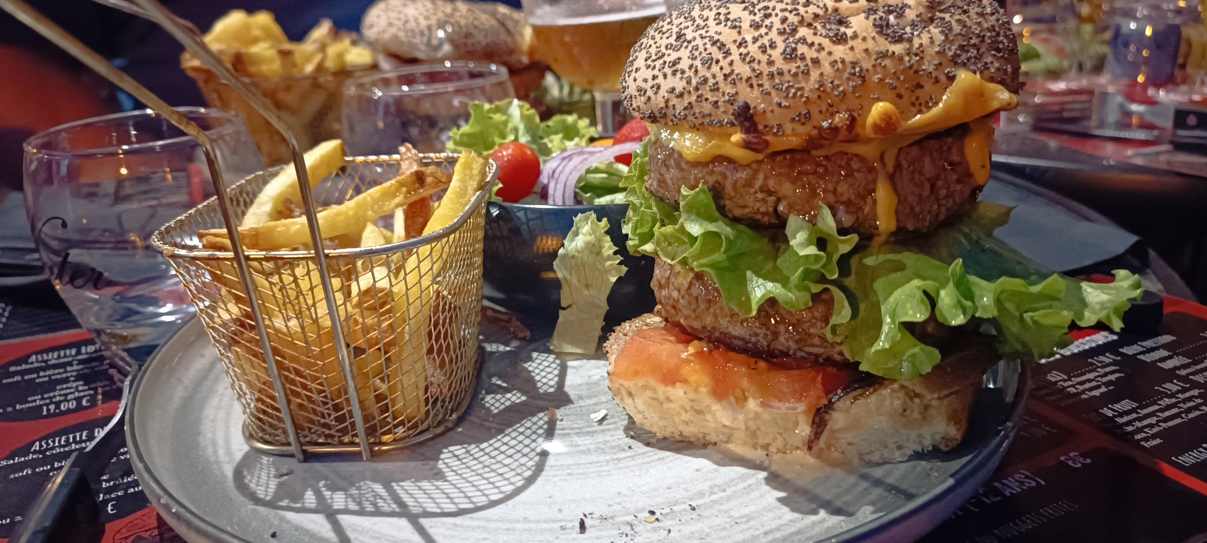 Un cadre agréable, un accueil chaleureux, une ambiance sympa, des double burgers , avec des steaks hachés, des vrais!!! 2 à 3 cms d'epaisseur pièce , type cuisine à l'ancienne , des frites maison, des tacos excellents, tout est copieux , le patron et la patronne super sympa, Allez y !! Vous passerez une bonne soirée !!!!!
