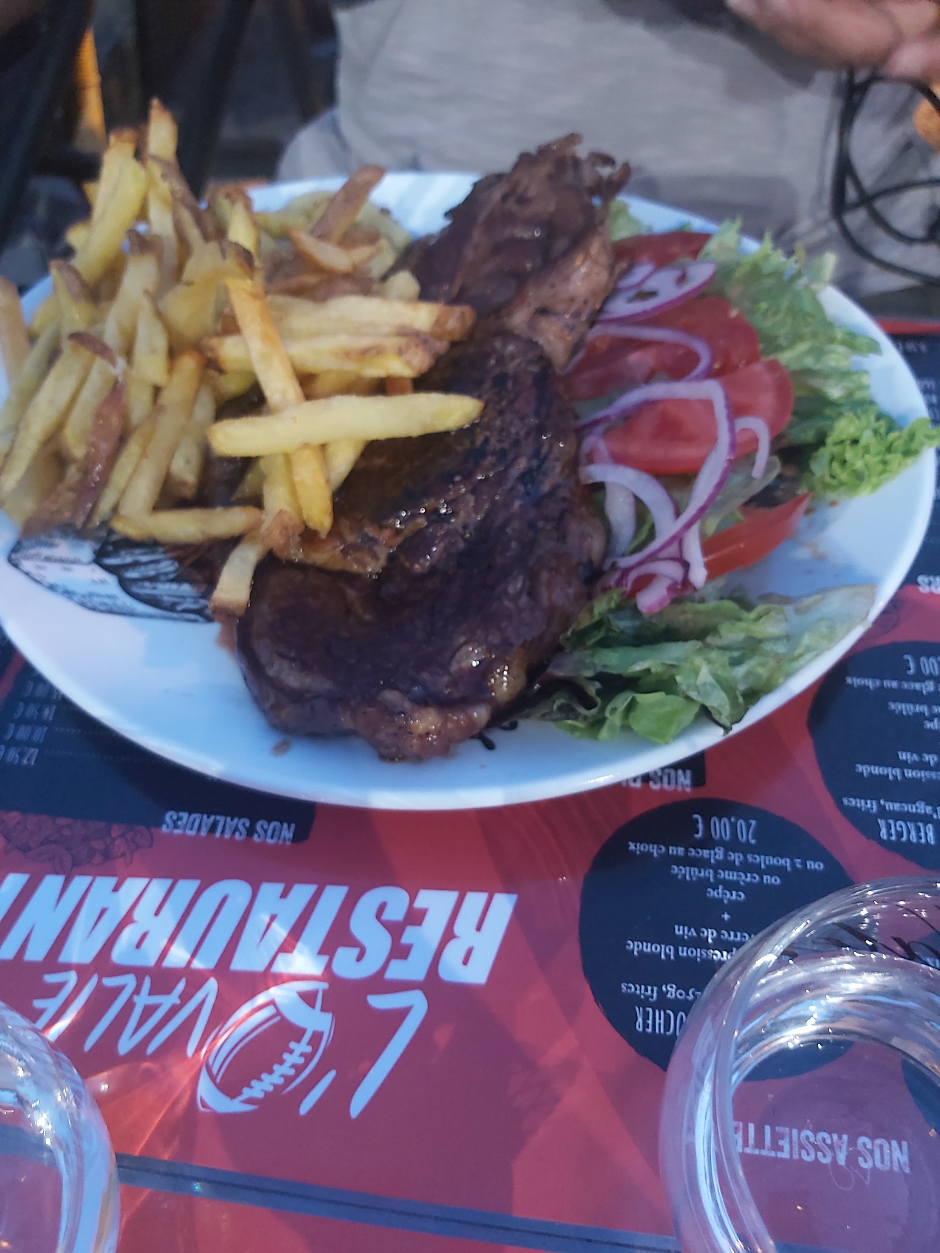 Très bonne première expérience ! Accueil et équipe très sympathique dans une très bonne ambiance , serviable arrangeant. Menu à 20 € ( tout compris même la boisson le soir ) une vraie entrecôte généreuse et goûteuse ! Je recommande pour l'ensemble des points cités. Merci à vous et ne changez rien.